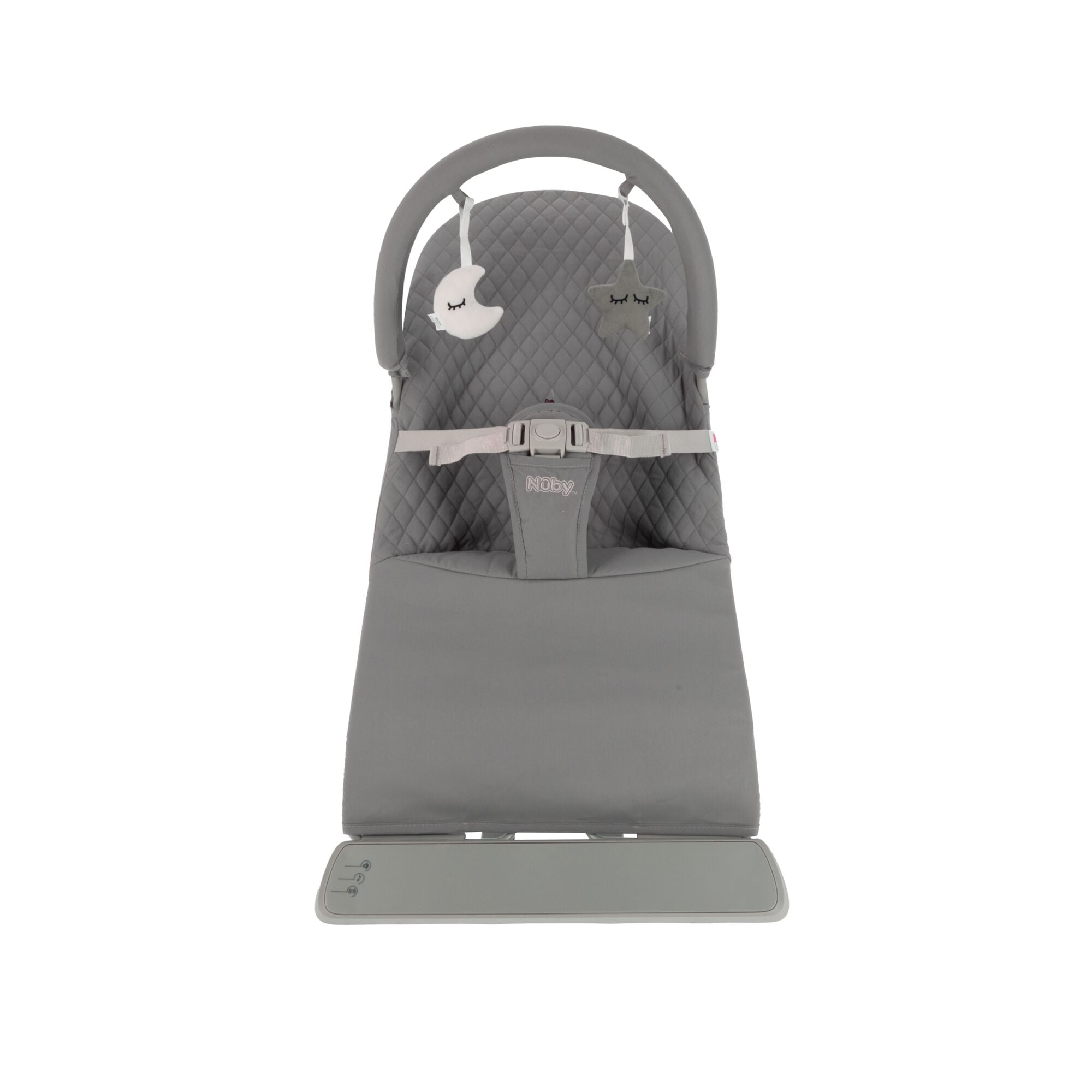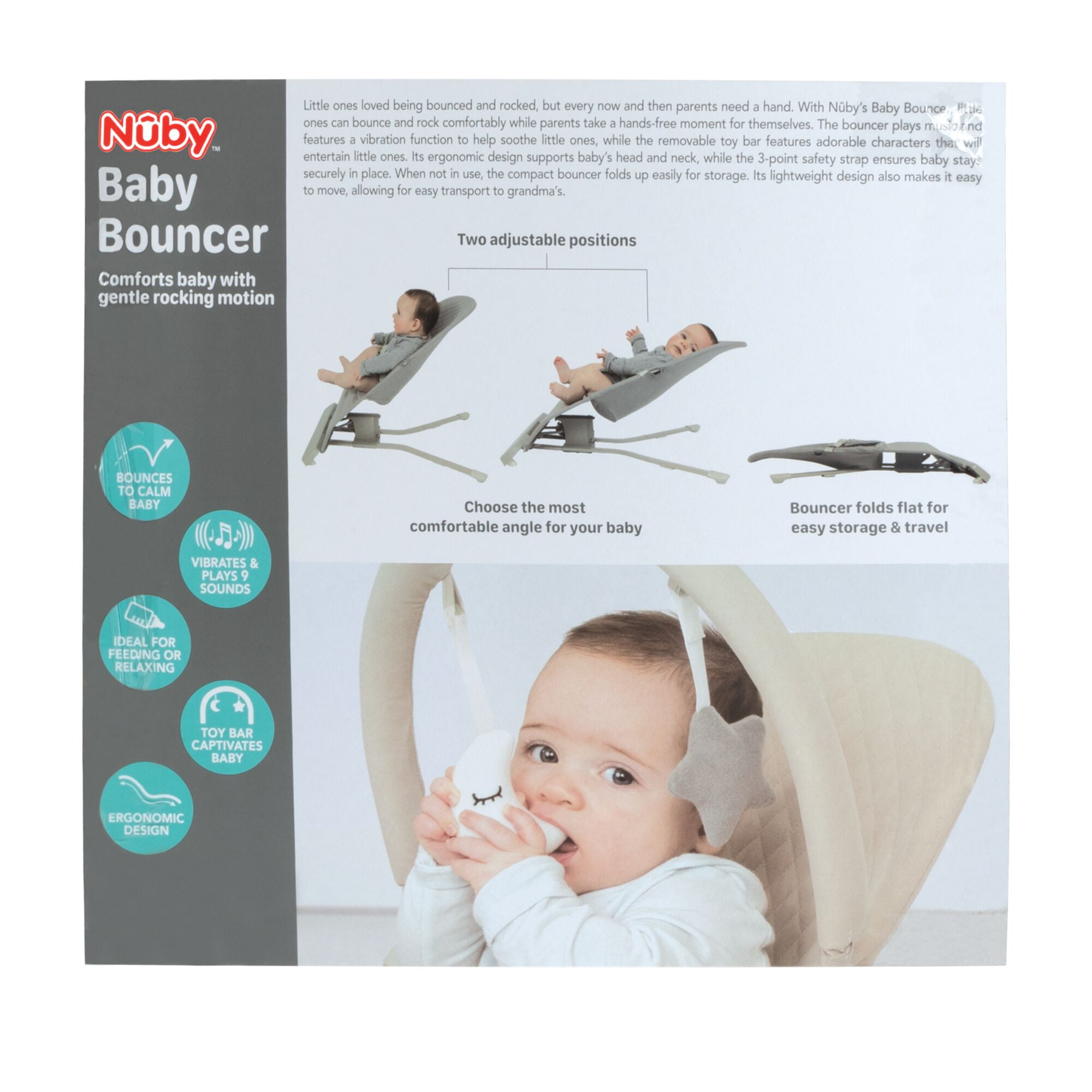 Nuby Portable Baby Bouncer Seat with Sounds and 3-Point Harness, Gray