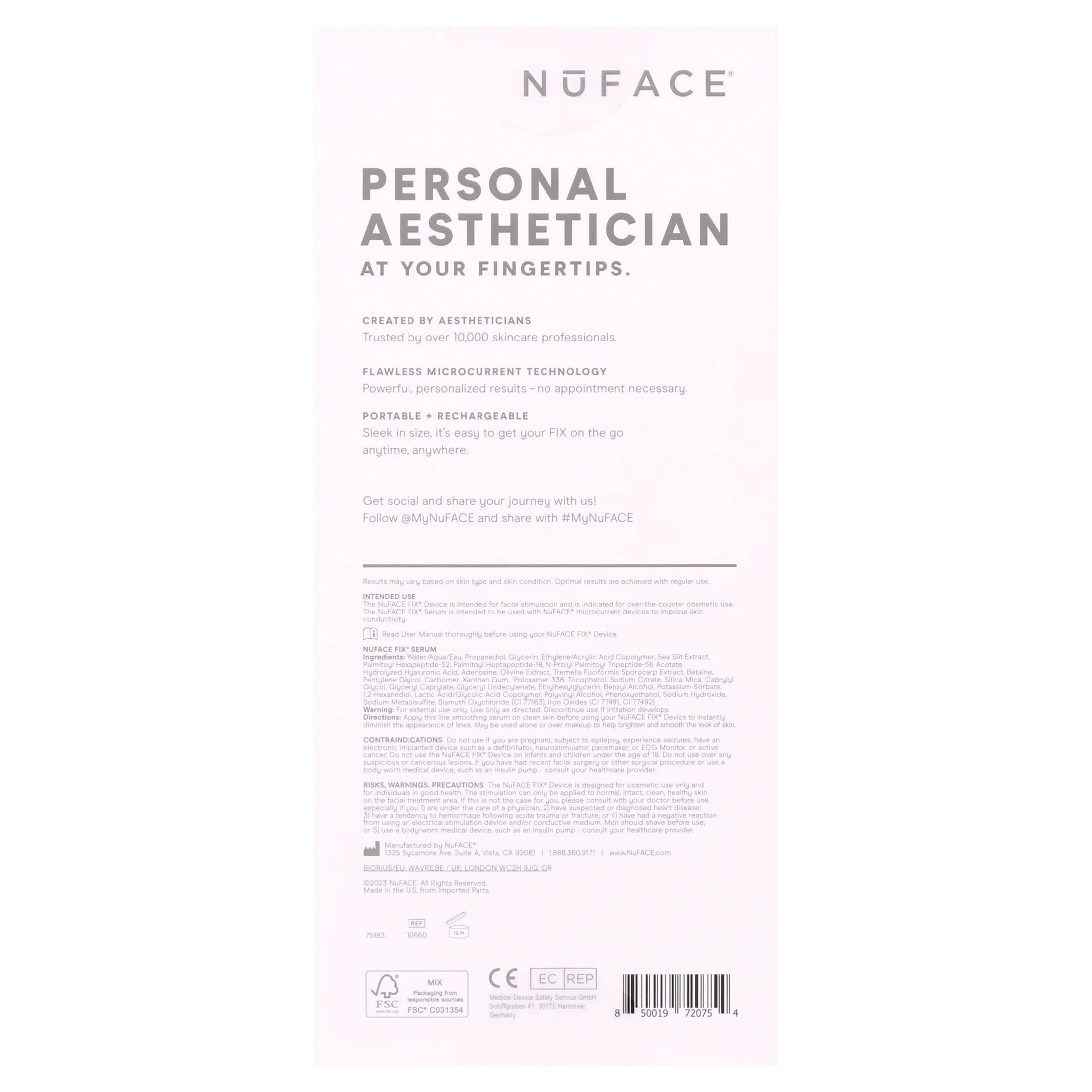 INSTANT RESULTS -97% of users saw instantly tighter skin around eyes* -92% of users saw instantly firmer skin* SMOOTH SKIN & PLUMPER-LOOKING LIPS -The versatile FIX Device feathers away fine lines around the eyes, lips & forehead and enhances the appearance of lip fullness FIX ON-THE-GO -The portable FIX device is ideal for travel treatments – slip into your bag for an instantly flawless finish anytime, anywhere NuFACE® SMART APP -Follow along with step-by-step treatment tutorials -Selfie Tracker allows you to see progress and celebrate your achievements -Custom reminders to help you stay on track *Results from a single-center, non-randomized, single arm trial to evaluate the performance of FIX for the treatment of mild to moderate fine lines and wrinkles around the eyes, mouth and forehead.