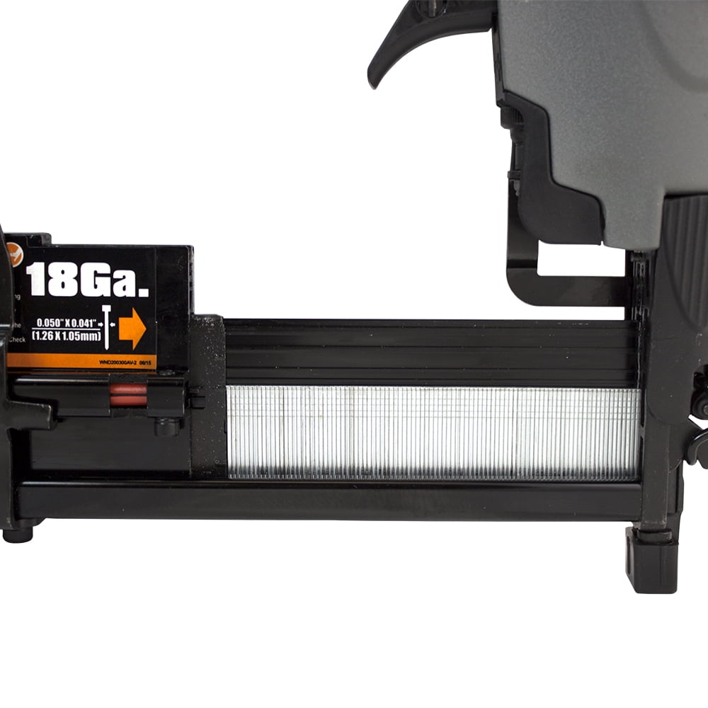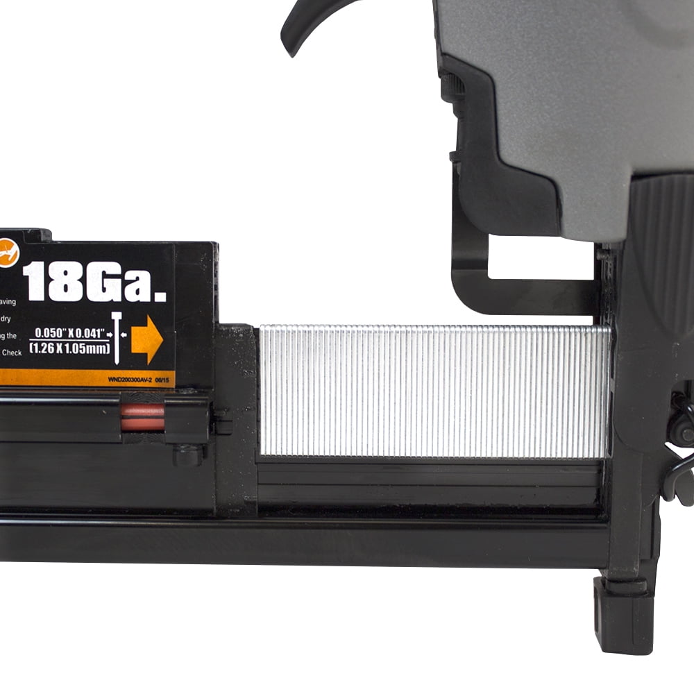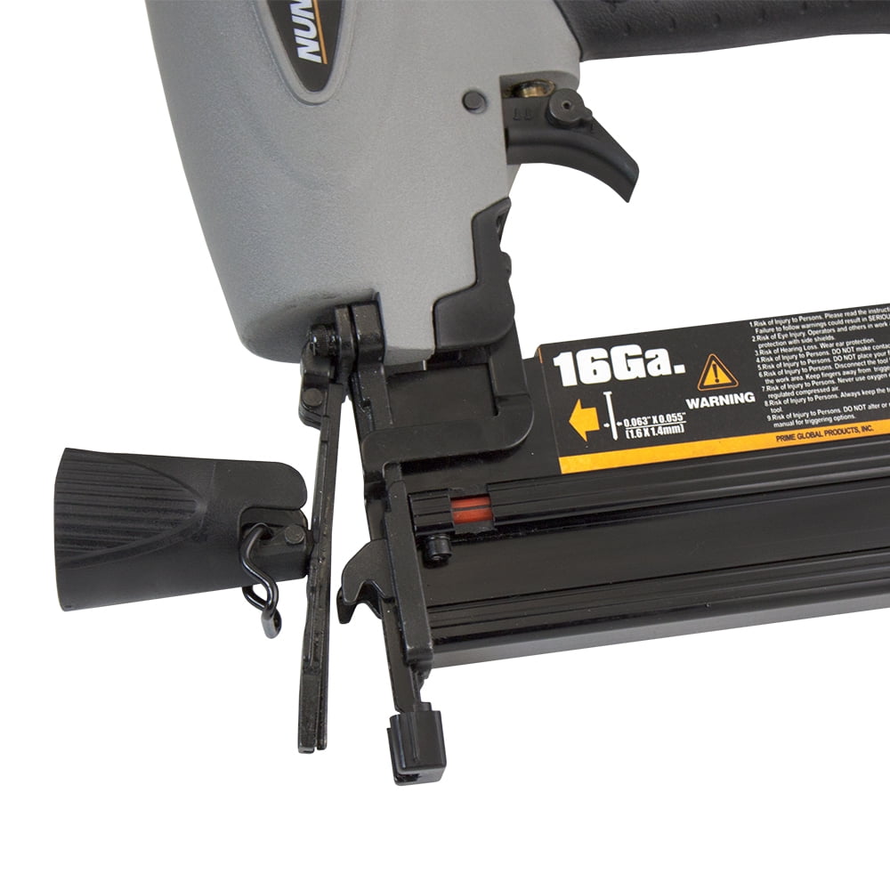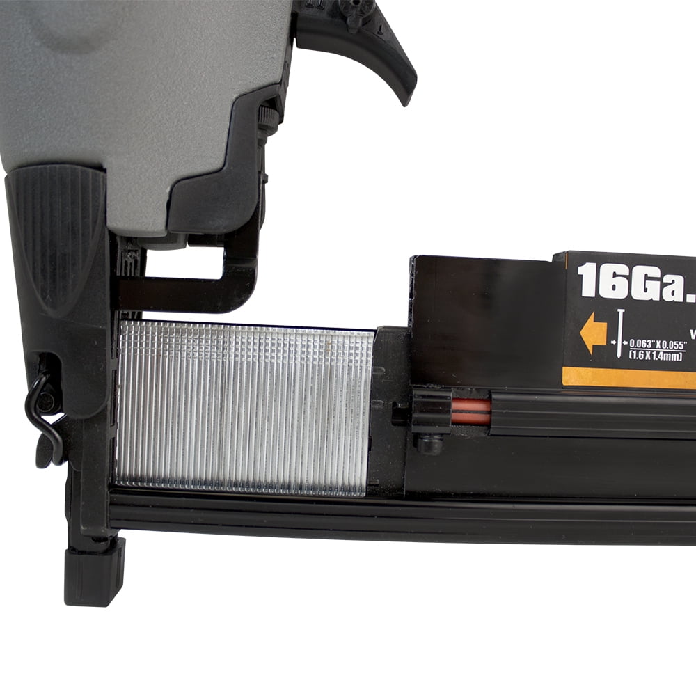 Designed for home improvement applications such as cabinetry, crown moulding, and furniture, and is also great for hobbies and crafts Compatible with 16 gauge straight finish nails from 3/4″ to 2-1/2″, 18 gauge brad nails from 5/8″ to 2″, and 18 gauge 1/4″ narrow crown staples from 5/8″ to 1-5/8″ Quick jam release allows for easy access clearing in the event of a jammed fastener Tool-free finger depth adjust for various applications No mar tip eliminates damage to work surface Aluminum cylinder and magazine for lightweight and long lasting durability Reload indicator to view remaining nails 360 degree adjustable exhaust to direct air away from face and debris