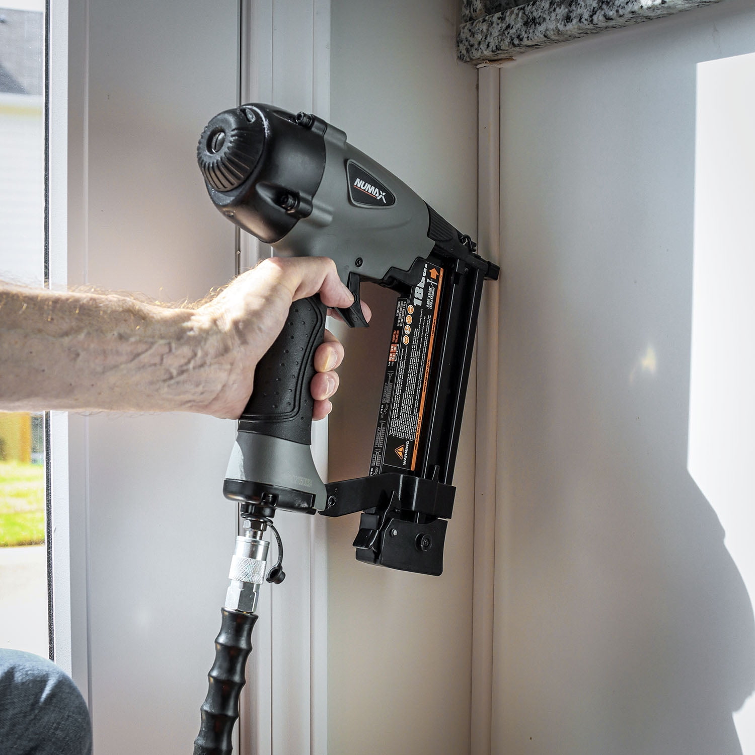 The NuMax SXL31 Pneumatic 3-in-1 16-Gauge and 18-Gauge 2-1/2″ Nailer / Stapler is designed for home improvement applications such as cabinetry, crown moulding, and furniture, and is also great for hobbies and crafts. This versatile air powered tool is compatible with 16 gauge straight finish nails from 3/4″ to 2-1/2″, 18 gauge brad nails from 5/8″ to 2″, and 18 gauge 1/4″ narrow crown staples from 5/8″ to 1-5/8″. A quick jam release provides easy access clearing in the event of a jammed fastener, and a tool-free finger depth adjust for various applications also helps save time and increase productivity. Other features of this finishing nail gun and stapler combo include a no mar tip to protect your work surface, an aluminum cylinder and magazine for lightweight and long lasting durability, a reload indicator to view remaining nails, and a 360 degree adjustable exhaust to direct air away from your face and debris. The NuMax SXL31 Pneumatic 3-in-1 16-Gauge and 18-Gauge 2-1/2″ Nailer / Stapler will make finish work fast and easy for DIYers taking on home improvement and repair projects as well as professional contractors at the job site, and is covered by NuMax’s 1 Year Limited Warranty and 30 Day Wearable Parts Warranty.