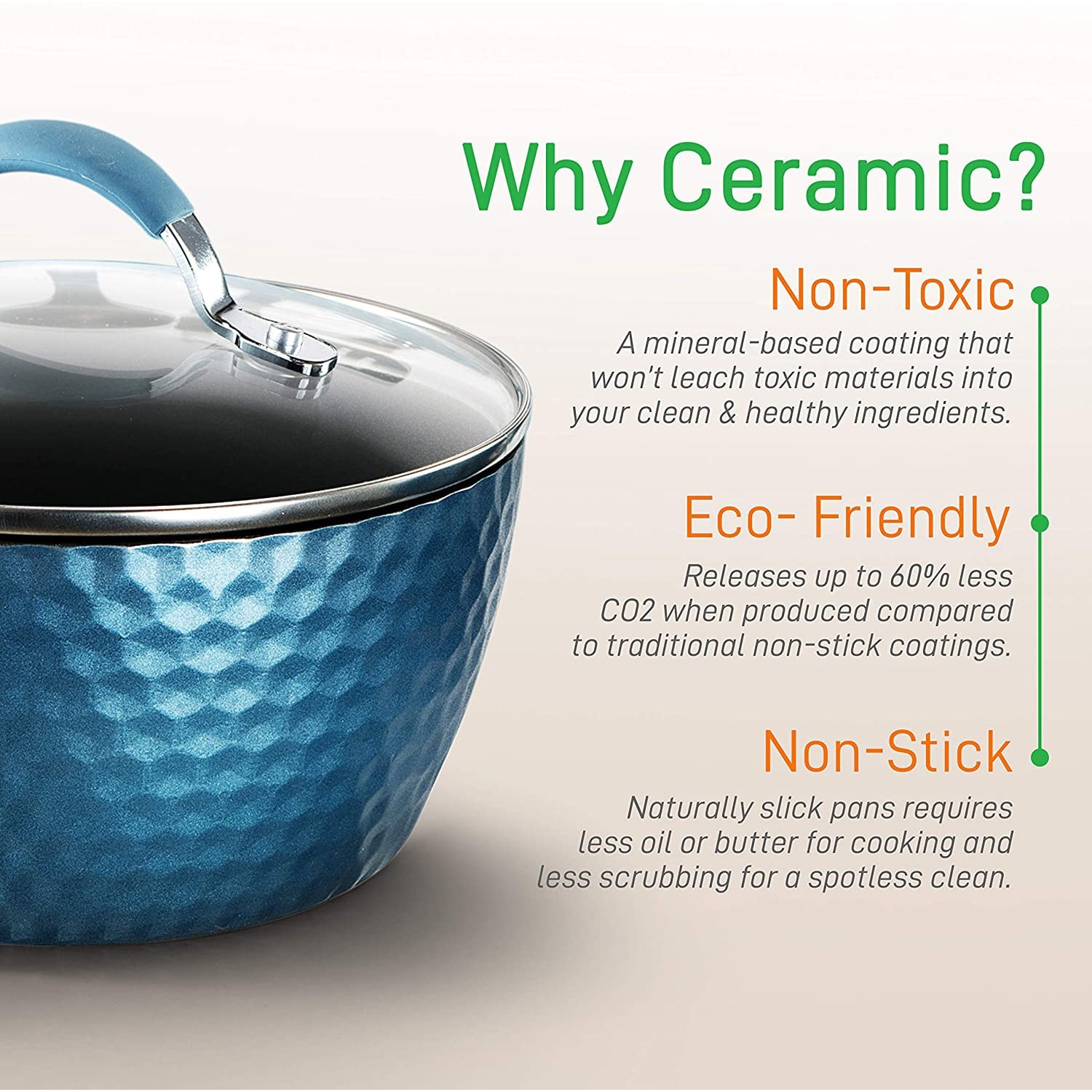 Anyone can be a sous chef with the help of NutriChef 11 Piece Nonstick Kitchen Cookware Pots and Pan Set. This 11-piece non-stick kitchenware set features a stylish modern cookware design and elegant lines pattern to match any kitchen. The set includes a 1.7-quart saucepan pot with lid, a 3.6-quart Dutch oven pot with lid, a 2.1-quart cooking pot with lid, an 11-inch large fry pan, an 8-inch small fry pan, soup ladle, pasta fork, and spatula. With cool-touch and form-fitting handle grips, you can handle the pots and pans comfortably. The cookware set effectively distributes and retains heat so your food will be evenly cooked all-around. The see-through tempered glass lids are great for keeping an eye on your food and the vent holes allow steam to escape. Cook up a storm on your gas, electric, ceramic, or induction counter cooktop with the NutriChef 11 Piece Nonstick Kitchen Cookware Pots and Pan Set.