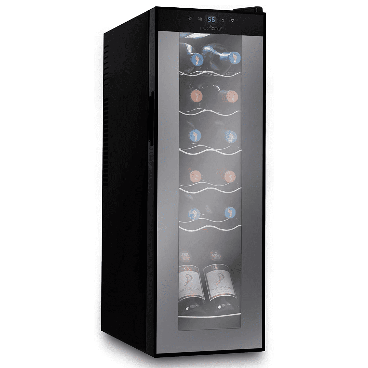 NutriChef Digital Electric 12 Bottle Thermoelectric Wine Chiller Cooler, Black