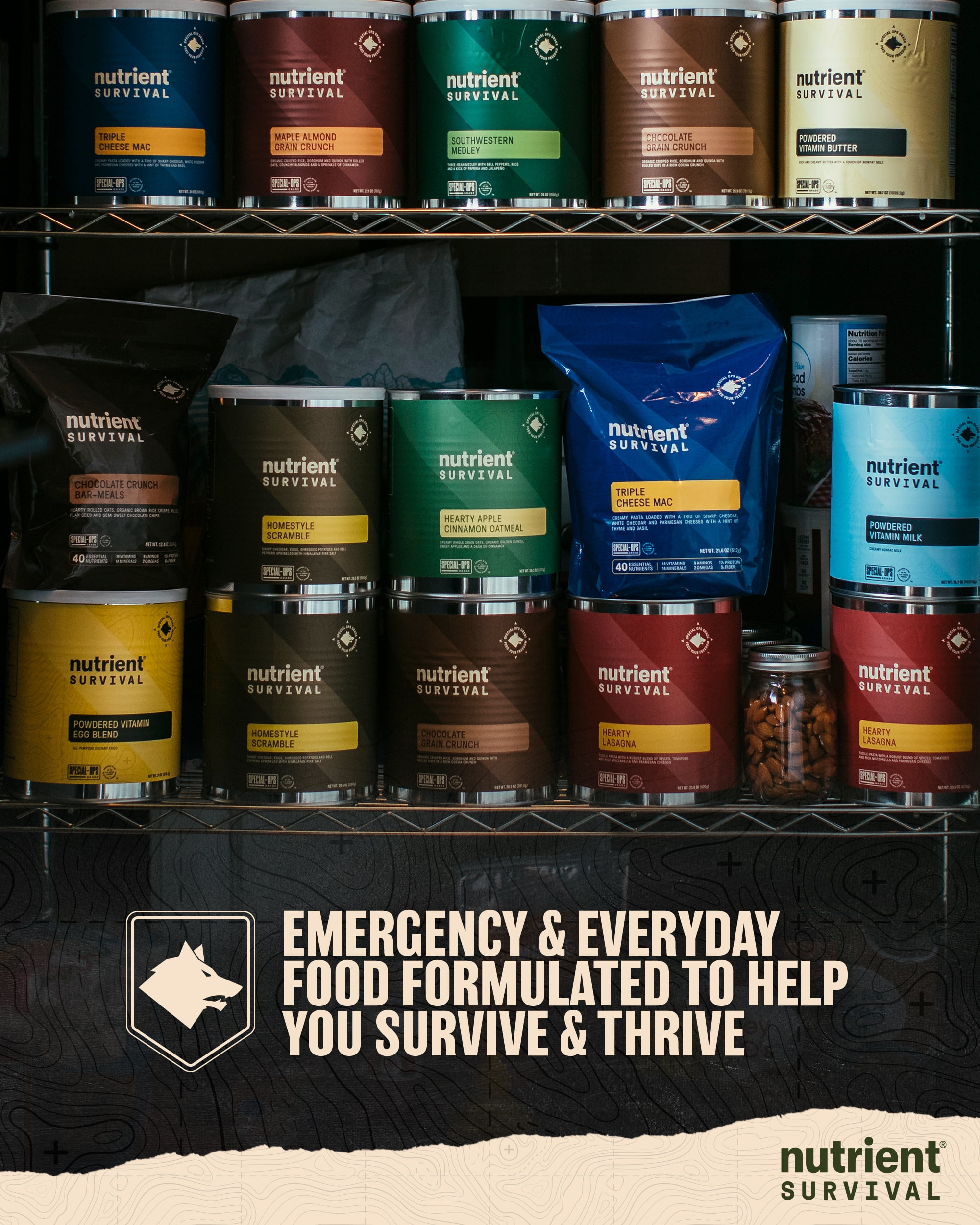DELICIOUS TASTE: Made with real ingredients and the best nutrition anywhere. Hands down the best tasting emergency food you can buy, SPECIAL OPS GRADE NUTRITION: Designed to the nutritional standards of the US military*, but intended for people like us. Protein plus 14 essential vitamins and 7 essential minerals including biotin, folate and riboflavin, calcium, phosphorus and selenium NO ARTIFICIAL COLORS, FLAVORS, OR PRESERVATIVES, 15-YEAR SHELF LIFE: Taste d. Great for emergency food storage,Contains 72 servings for calories and grams of protein ( calories and 75 grams of protein a day). MADE IN THE USA: Hand-crafted in small batches with real ingredients, right here in the USA