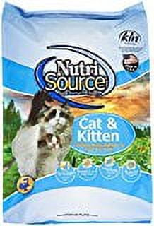 NutriSource Cat & Kitten Chicken Meal Salmon & Liver Dry Cat FoodFamily-owned-and-operated NutriSource Super Premium Pet Foods has been manufacturing high quality pet foods for more than 50 years. NutriSource Cat & Kitten Chicken Meal, Salmon & Liver Formula uses the company’s Good 4 Life System of natural elements for optimum health and well being.NutriSource Cat & Kitten Chicken Meal, Salmon & Liver Formula’s first ingredient is chicken meal, a high quality source of protein for strong muscles. This delicious easy-to-digest kibble also contains brown rice, peas, salmon, chicken livers, vitamins, minerals, prebiotics, probiotics and omega fatty acids with DHA.Ingredients: Chicken meal, brown rice, peas, salmon, chicken livers, chicken fat (preserved with mixed tocopherols and citric acid), flaxseed, salmon oil, dried egg product, fish meal, natural flavor, yeast extract, beet pulp-dried, oat groats, dried tomato pomace, dried brewers yeast, phosphoric acid, sunflower oil, potassium chloride, salt, DL methionine, minerals (iron proteinate, zinc proteinate, copper proteinate, manganese proteinate, cobalt proteinate), cranberry powder, vitamins (vitamin A acetate, vitamin D3 supplement, vitamin E supplement, niacin, d-calcium pantothenate, thiamine mononitrate, riboflavin supplement, pyridoxine hydrochloride, folic acid, biotin, vitamin B12 supplement), taurine, chicory extract, lactic acid, L-ascorbyl-2-polyphosphate, choline chloride, inositol, yucca schidigera extract, ascorbic acid (source of vitamin C), calcium iodate, sodium selenite, rosemary extract, yeast culture (Saccharomyces cerevisiae), dried Lactobacillus acidophilus fermentation product, dried Enterococcus faecium fermentation product, dried Aspergillus niger fermentation extract, dried Trichoderma longibrachiatum fermentation extract, dried Bacillus subtilis fermentation extract.Guaranteed Analysis: Crude Protein (Min.) 32.0% 320 g/kg Crude Fat (Min.) 19.0% 190 g/kg Crude Fiber (Max.) 5.0% 50 g/kg Moisture (Max.) 10.0% 100 g/kg Magnesium (Min.) 0.08 mg/kg 0.8 mg/kg Iron (Min.) 220 mg/kg 220 mg/kg Copper (Min.) 25 mg/kg 25 mg/kg Manganese (Min.) 15 mg/kg 15 mg/kg Zinc (Min.) 135 mg/kg 135 mg/kg Vitamin E (Min.) 205 IU/kg 205 IU/kg Taurine (Min.) 0.15% 1.5 g/kg *Omega ? 6 Fatty Acids (Min.) 2.7% 27 g/kg *Omega ? 3 Fatty Acids (Min.) 0.6% 6 g/kg *L-Ascorbyl-2-Polyphosphate (source of Vitamin C) (Min.) 100 mg/kg *Cobalt (Min.) 1.0 mg/kg * Total Microorganisms (Min.) 100 million CFU/lb **
