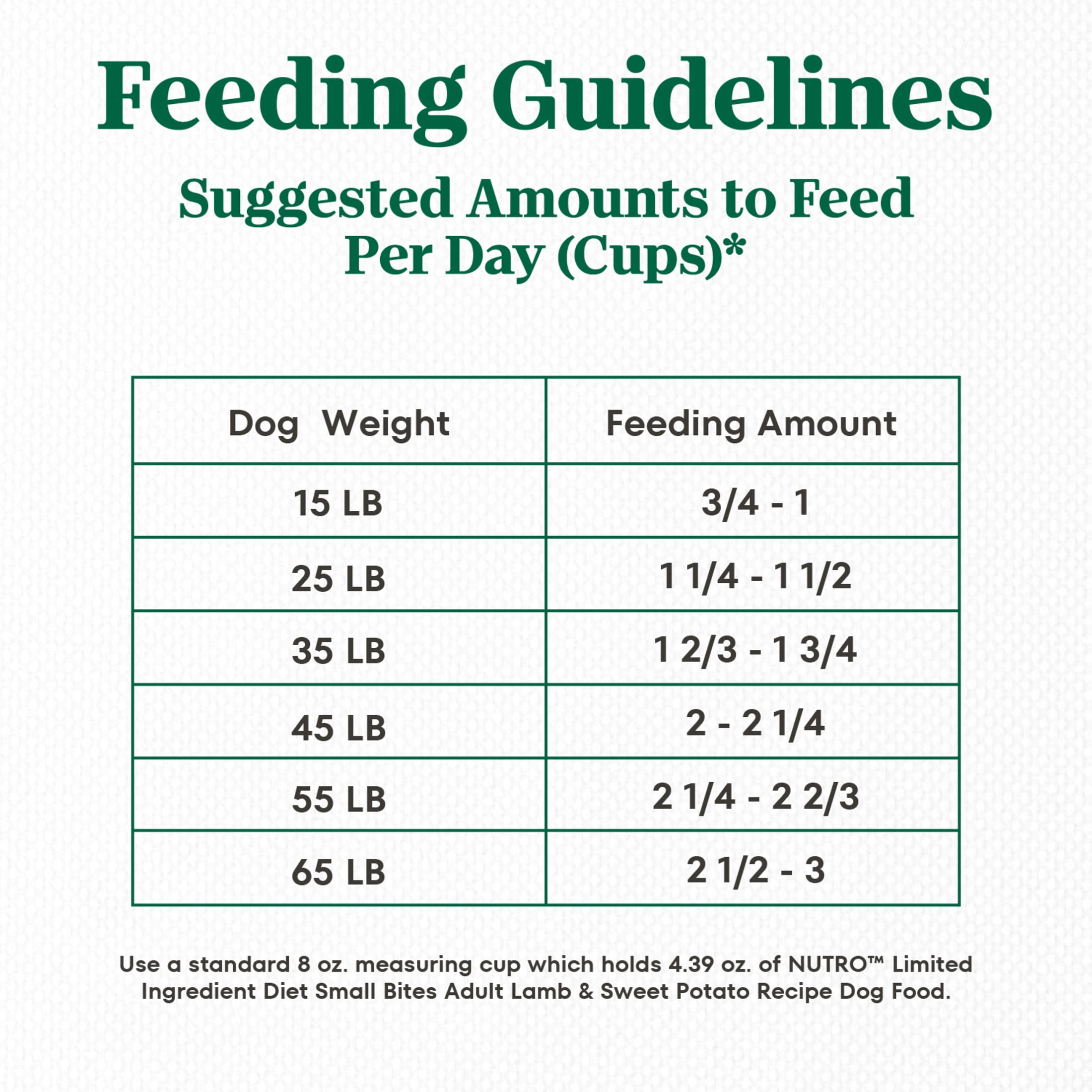 The Nutro Limited Ingredient Diet is specially crafted with your dog’s sensitivities in mind. Everything we include and leave out is done with intention. Nutro Limited Ingredient Diet Small Bites Adult Dry Dog Food, Lamb & Sweet Potato Recipe is always made with 10 key ingredients or less. You can feel confident you’re giving your dog a quality recipe that’s made with non-GMO ingredients and has no chicken by-product meal, corn, wheat, or soy. This dry dog food recipe is made with lamb as the #1 ingredient and is designed with Omega 3 & 6 Fatty Acids to promote healthy skin and a soft, shiny coat. Formulated for dogs that prefer smaller kibble, this dry dog food recipe contains natural fiber to promote healthy digestion and has essential antioxidants like Vitamin E and Selenium to support your dog’s immunity. Nutro understands your pet’s health and vitality begins with what they eat; that’s why they serve quality recipes, tasty flavors, and wholesome ingredients.