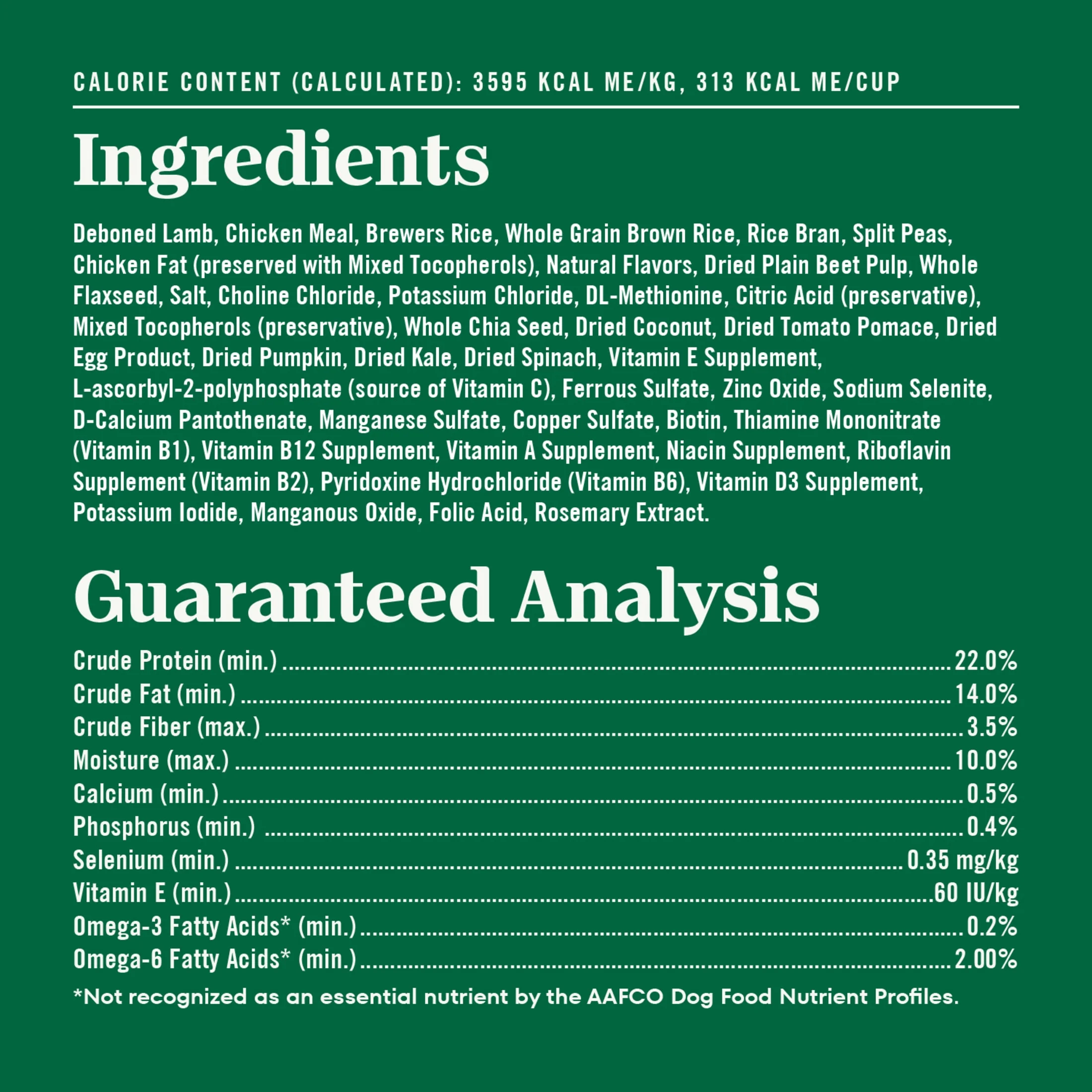 Made with real lamb as the #1 ingredient in this protein-rich recipe. Made with non-GMO ingredients; no chicken by-product meal, corn, wheat, or soy. Promotes healthy vitality by supporting healthy skin & coat, digestion, and immunity. Supports healthy energy, strong bones, and strong muscles. Made with the finest ingredients from around the world.