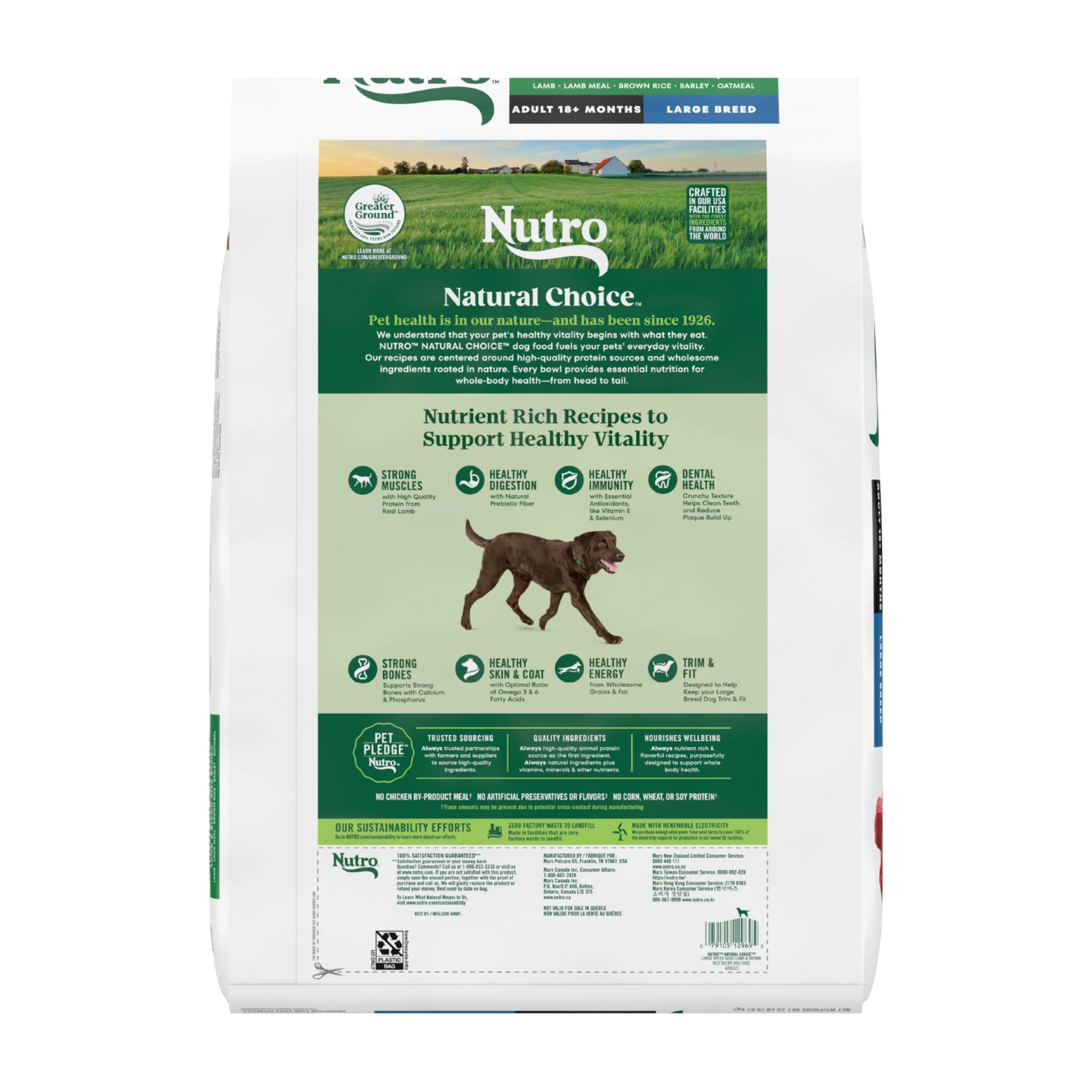 We understand that pet owners want the best for their dogs. That’s why Nutro has a partnership with trusted farmers and suppliers to source high-quality ingredients, giving your dog quality nutrition both you and your pet will appreciate. Made with lamb as the #1 ingredient, and crafted with vitamins, minerals, and other nutrients, Nutro Natural Choice Adult Large Breed Dry Dog Food, Lamb & Brown Rice Recipe brings real, recognizable ingredients to every mealtime. Crafted with natural sources of Glucosamine and Chondroitin, this dry dog food supports healthy joints in your large breed dog. Plus, it’s made with non-GMO ingredients and has no chicken by-product meal, corn, wheat, or soy. With ingredients that promote healthy skin and coat, digestion, and immunity, this large breed dry dog food recipe also supports your dog’s vitality. Packed with delicious flavor, high quality ingredients, and supportive benefits, serve your furry loved one something they will love with Nutro Natural Choice Dry Dog Food Recipes.
