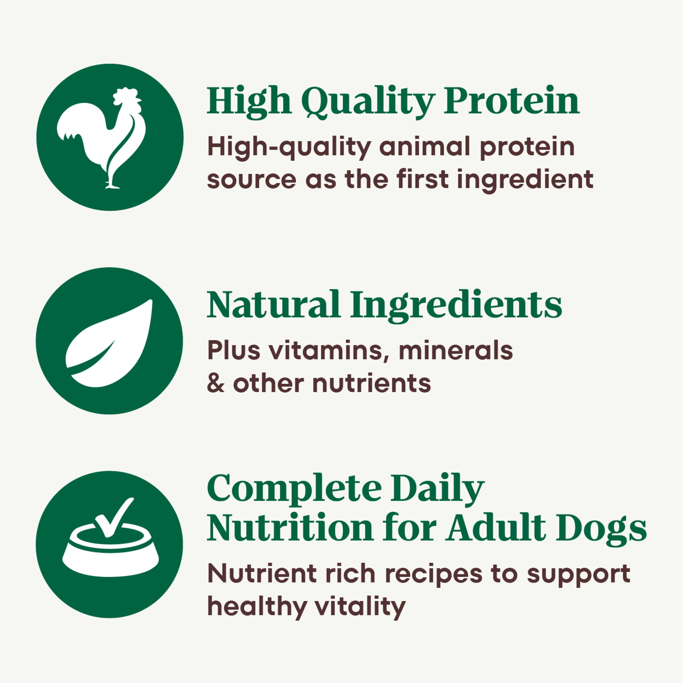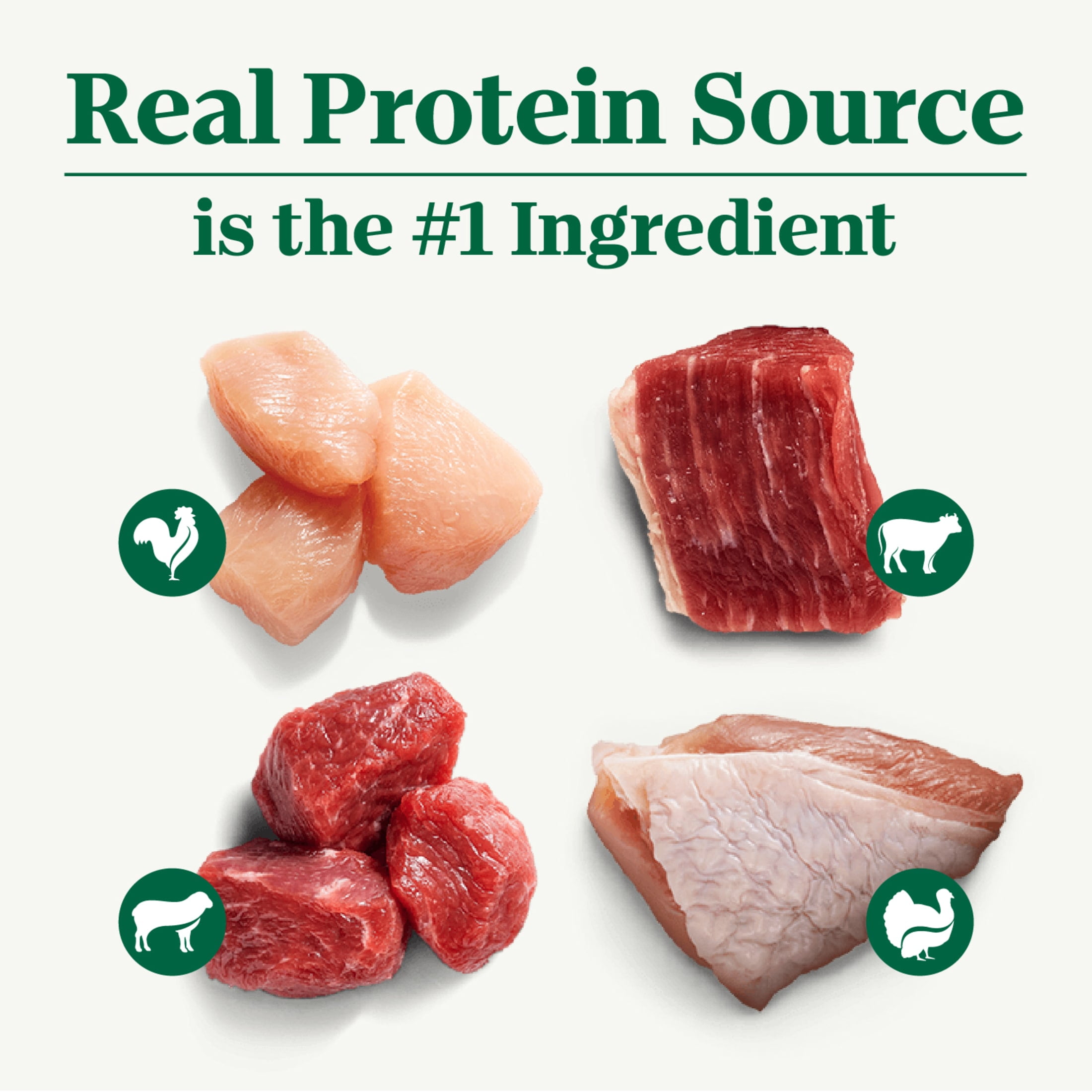 Made with real chicken, beef, lamb, or turkey as the #1 ingredient. This wet dog food is formulated without grains. Made in facilities with zero factory waste to landfill and uses 100% renewable electricity. Formulated without chicken by-product meal, corn, wheat, or soy. Premium natural dog food plus vitamins, minerals, and other nutrients.