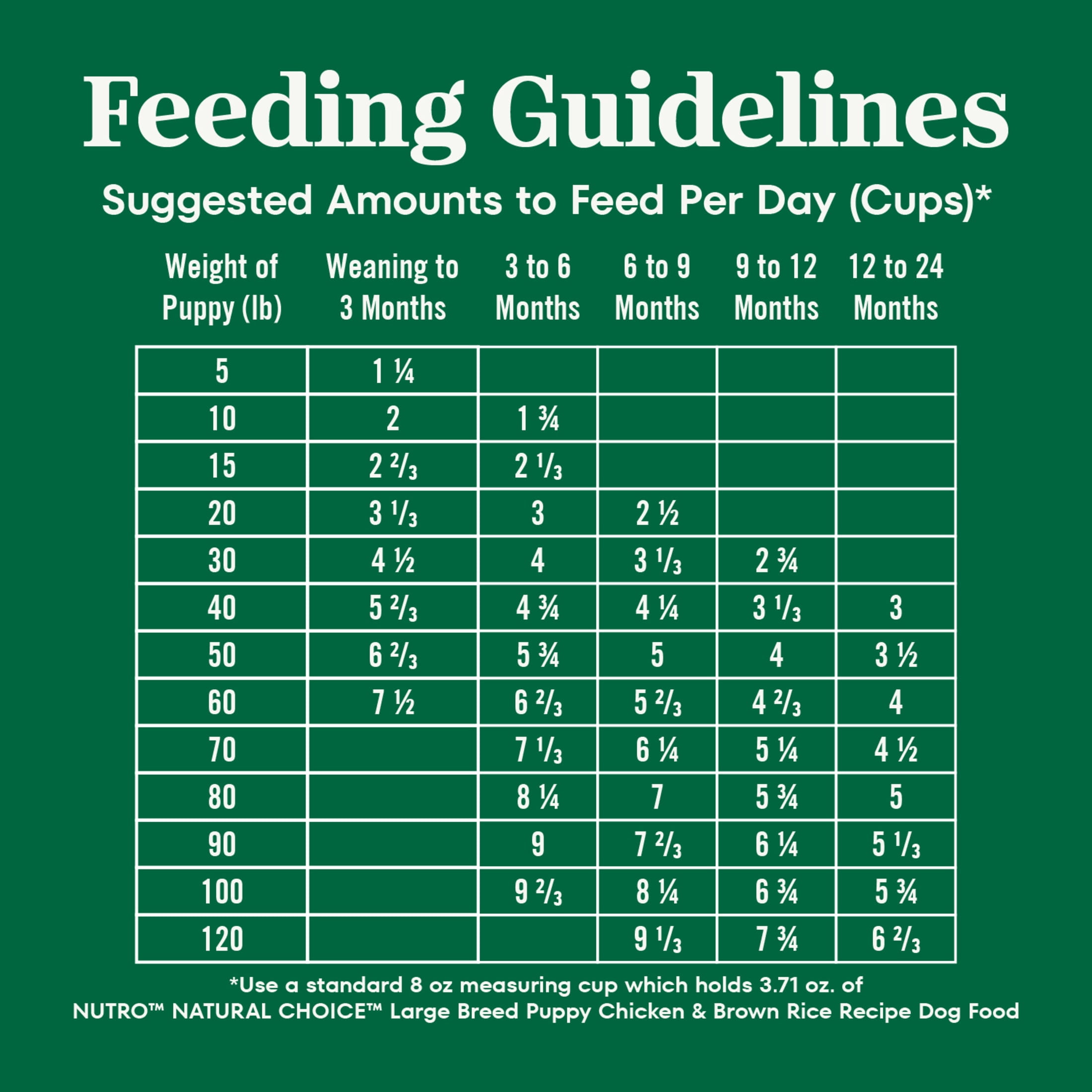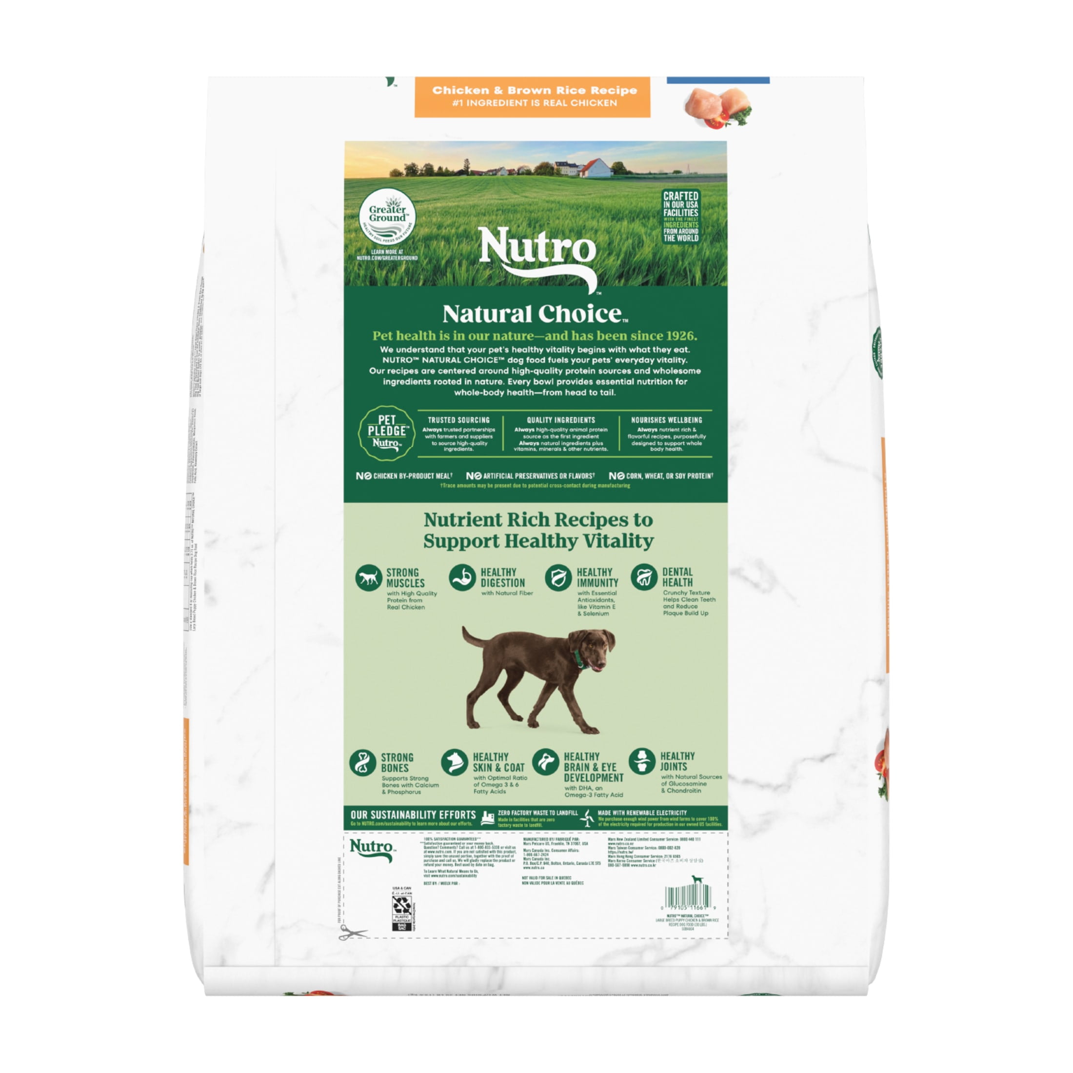 We understand that pet owners want the best for their dogs. That’s why Nutro has a partnership with trusted farmers and suppliers to source high-quality ingredients, giving your dog quality nutrition both you and your pet will appreciate. Made with chicken as the #1 ingredient, and crafted with vitamins, minerals, and other nutrients, Nutro Natural Choice Large Breed Puppy Dry Dog Food, Chicken and Brown Rice Recipe brings real, recognizable ingredients to every mealtime. Crafted with DHA, an Omega-3 Fatty Acid, this dry dog food supports healthy brain and eye development in puppies. Plus, it’s made with non-GMO ingredients and has no chicken by-product meal, corn, wheat, or soy. With ingredients that promote healthy skin and coat, digestion, and immunity, this large breed puppy dry dog food recipe also supports your puppy’s vitality. Packed with delicious flavor, high quality ingredients, and supportive benefits, serve your furry loved one something they will love with Nutro Natural Choice Dry Dog Food Recipes.