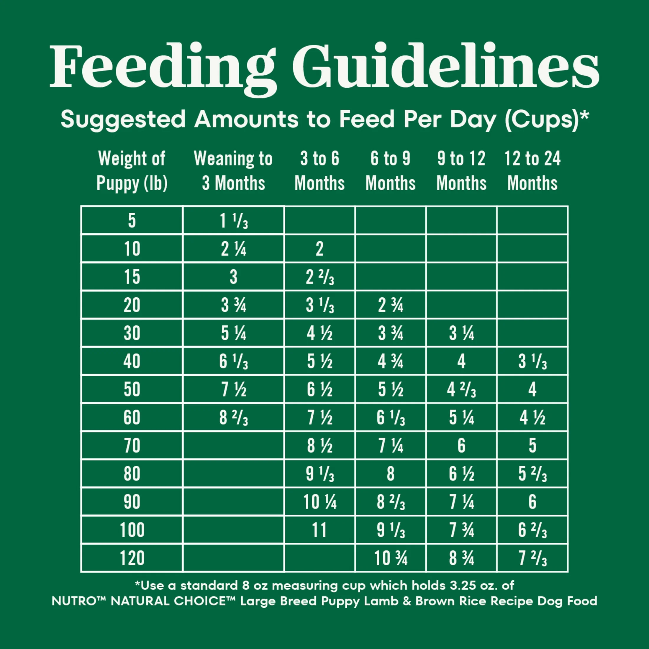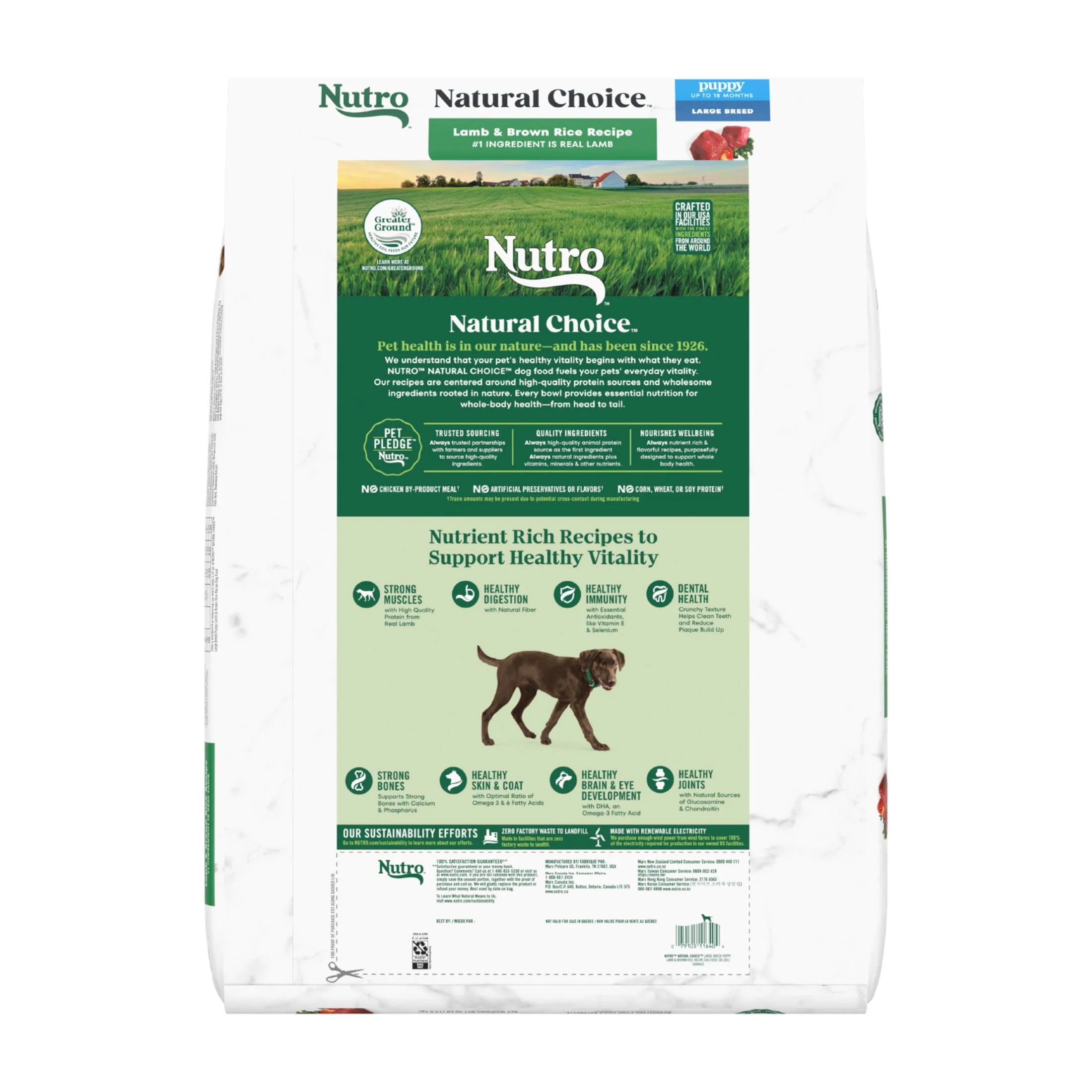 We understand that pet owners want the best for their dogs. That’s why Nutro has a partnership with trusted farmers and suppliers to source high-quality ingredients, giving your dog quality nutrition both you and your pet will appreciate. Made with lamb as the #1 ingredient, and crafted with vitamins, minerals, and other nutrients, Nutro Natural Choice Large Breed Puppy Dry Dog Food, Lamb and Brown Rice Recipe brings real, recognizable ingredients to every mealtime. Crafted with DHA, an Omega-3 Fatty Acid, this large breed puppy dry dog food supports healthy brain and eye development in puppies. Plus, it’s made with non-GMO ingredients and has no chicken by-product meal, corn, wheat, or soy. With ingredients that promote healthy skin and coat, digestion, and immunity, this large breed puppy dry dog food recipe also supports your puppy’s vitality. Packed with delicious flavor, high quality ingredients, and supportive benefits, serve your furry loved one something they will love with Nutro Natural Choice Dry Dog Food Recipes.