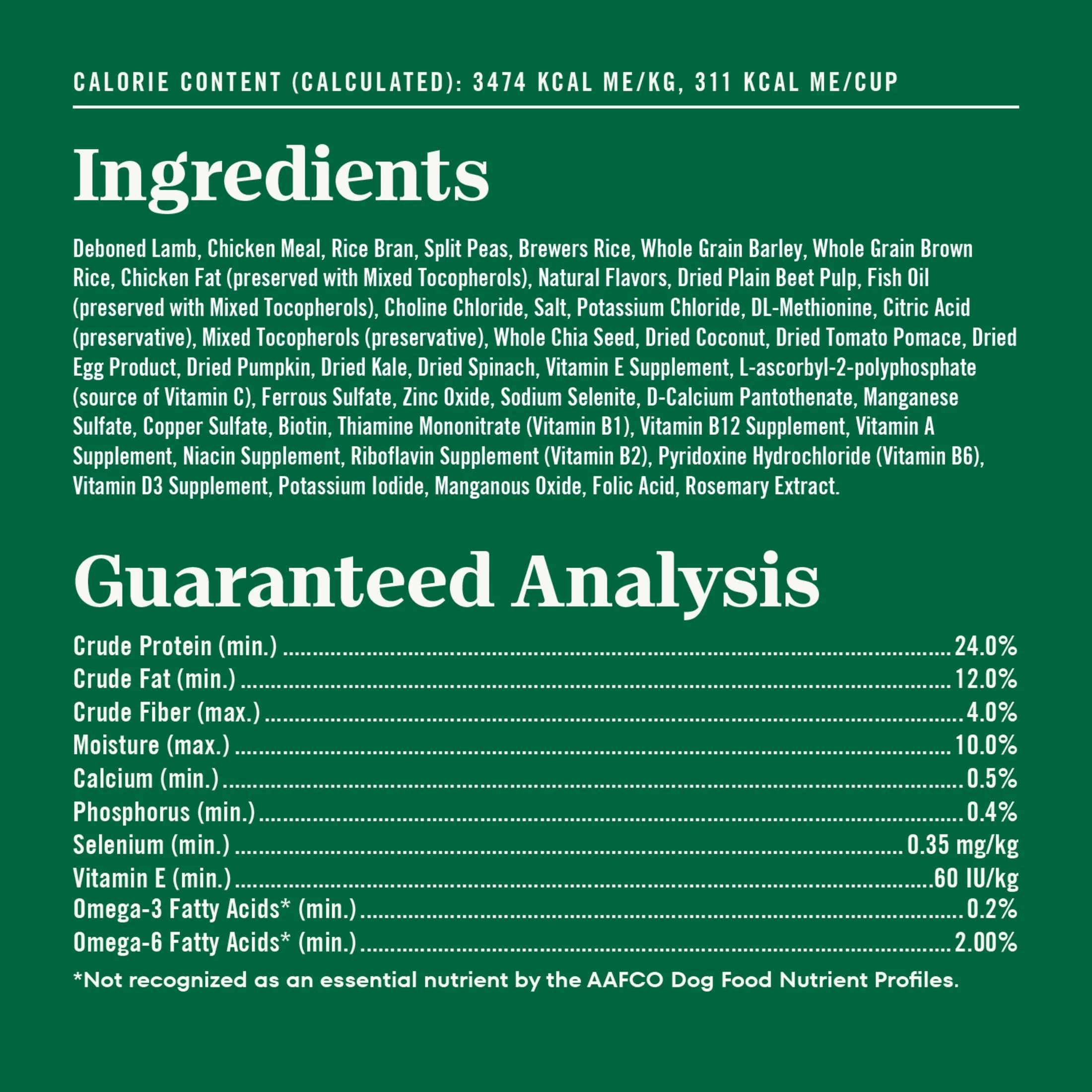 Made with real lamb as the #1 ingredient in this protein-rich recipe. Made with non-GMO ingredients; no chicken by-product meal, corn, wheat, or soy. Promotes healthy vitality by supporting strong bones, healthy digestion and immunity. Supports dental health, healthy energy and healthy skin and coat in senior dogs. Made with the finest ingredients from around the world.