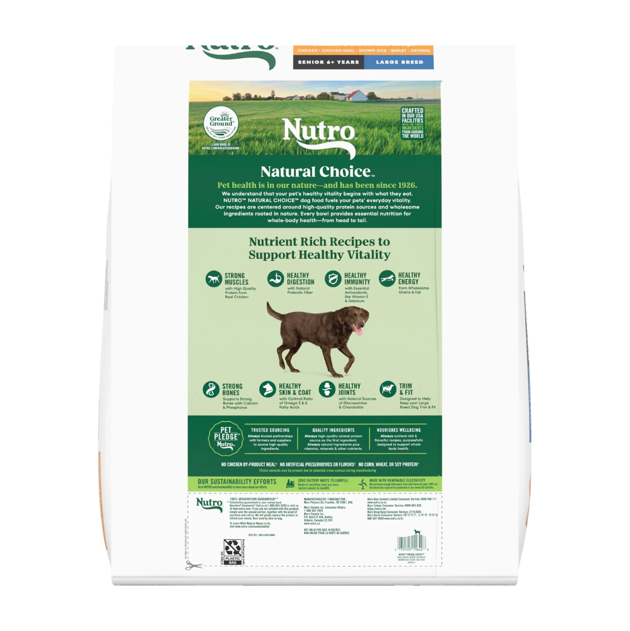 We understand that pet owners want the best for their dogs. That’s why Nutro has a partnership with trusted farmers and suppliers to source high-quality ingredients, giving your dog quality nutrition both you and your pet will appreciate. Made with chicken as the #1 ingredient, and crafted with vitamins, minerals, and other nutrients, Nutro Natural Choice Senior Large Breed Dry Dog Food, Chicken & Brown Rice Recipe brings real, recognizable ingredients to every mealtime. Crafted with natural sources of Glucosamine and Chondroitin, this dry dog food supports healthy joints in your senior dog. Plus, it’s made with non-GMO ingredients and has no chicken by-product meal, corn, wheat, or soy. With ingredients that promote healthy skin and coat, digestion, and immunity, this senior large breed dry dog food recipe also supports your senior dog’s vitality. Packed with delicious flavor, high quality ingredients, and supportive benefits, serve your furry loved one something they will love with Nutro Natural Choice Dry Dog Food Recipes.