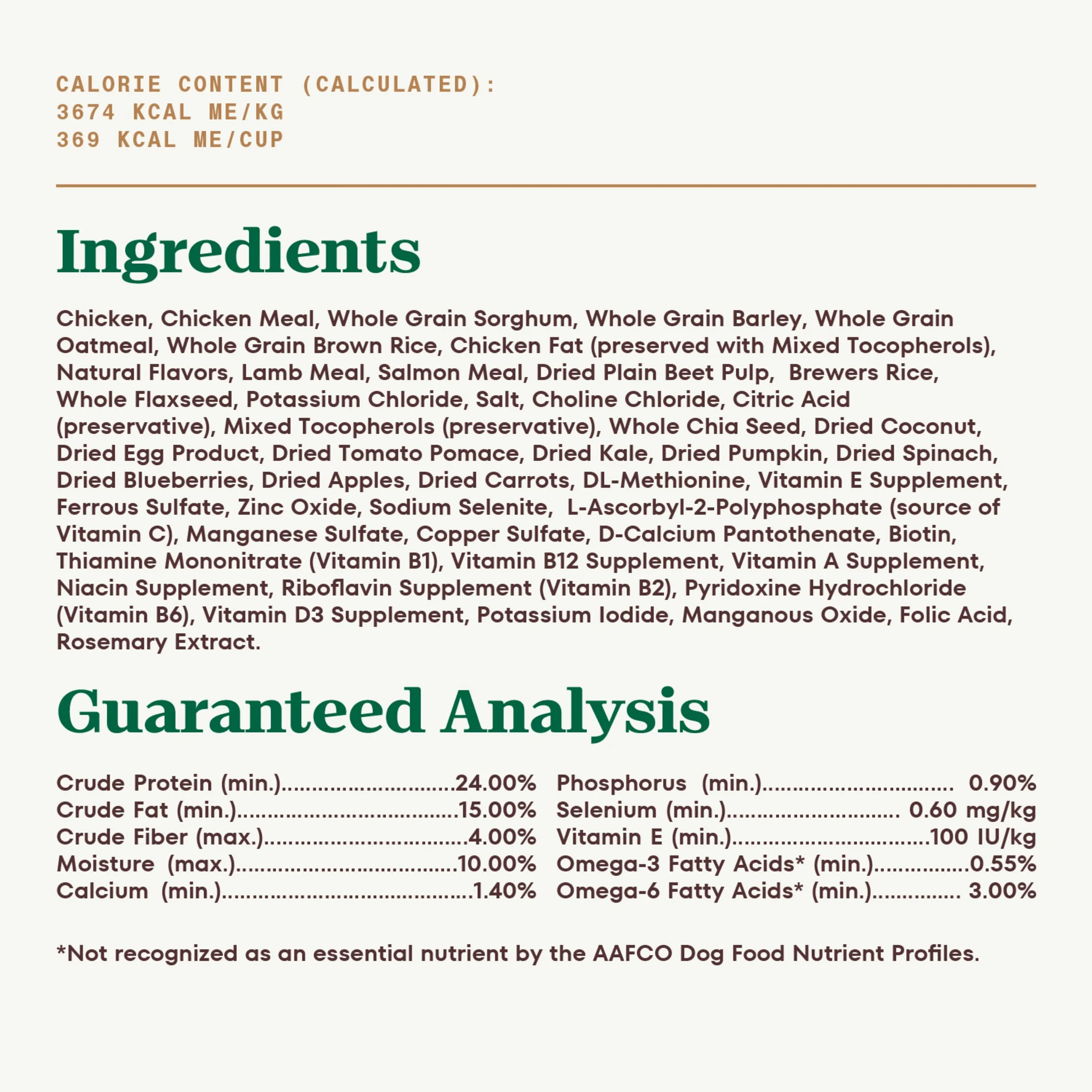 Made with high-quality ingredients and 14 superfoods to give abundant flavor and gourmet nutrition. Made with non-GMO ingredients; no chicken by-product meal, corn, wheat, or soy. Contains Omega 3 & 6 fatty acids for healthy skin and a radiant coat. Made with essential antioxidants to support healthy immunity. Crafted with natural fiber to help support a healthy digestive system.