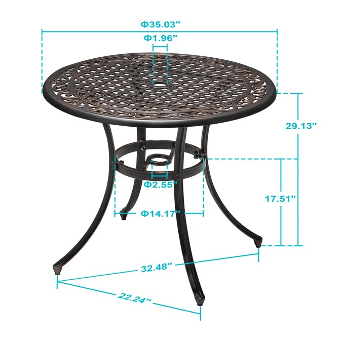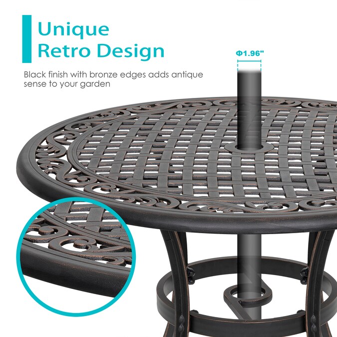 - Durable Cast Aluminum Material: Crafted from high-quality cast aluminum, our table is built to last, its robust and weather-resistant nature means it can withstand the elements and remain in excellent condition for years to come.