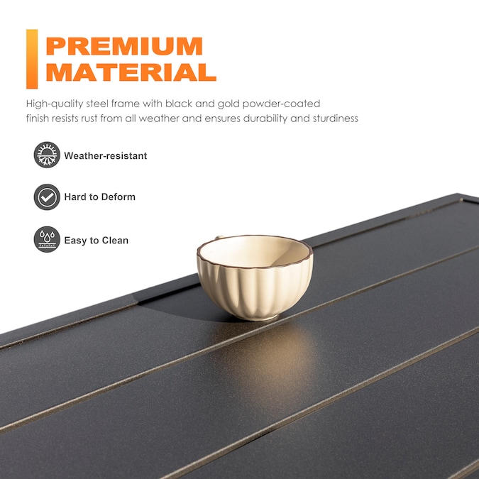 - Powder-coated Finish: Heavy-duty iron frame with high-quality black powder-coated finish and gold speckles protects from getting rust from all weather and ensures its durability and practicability for years to come.