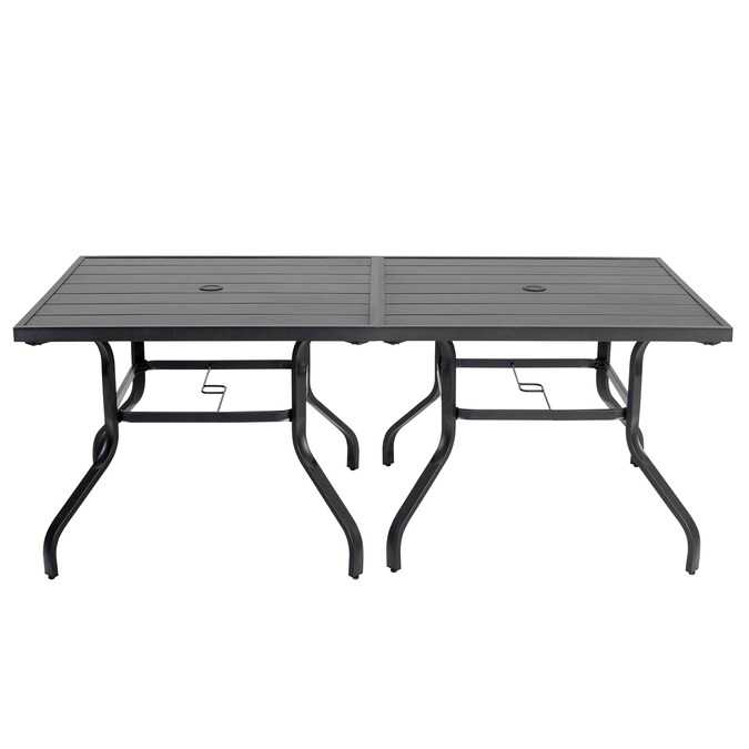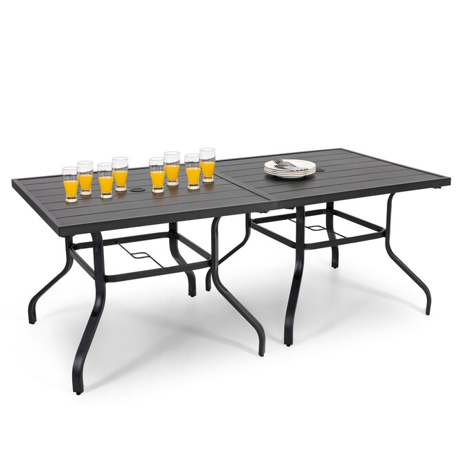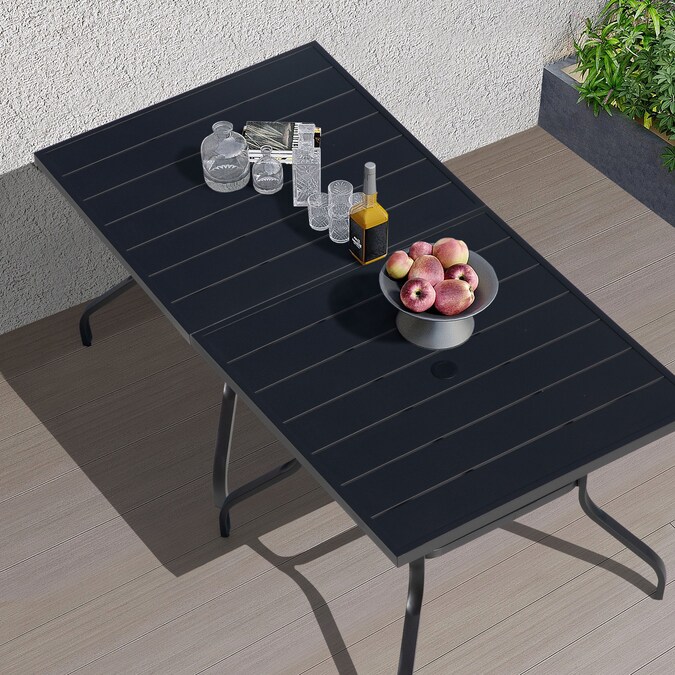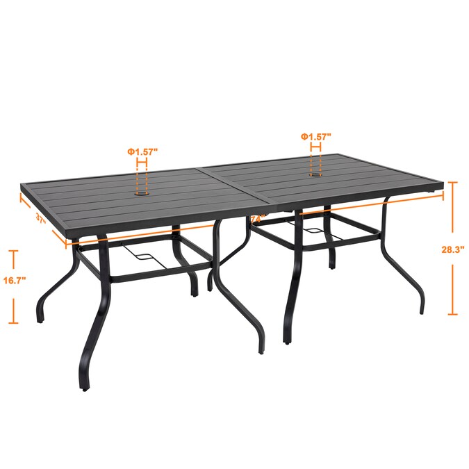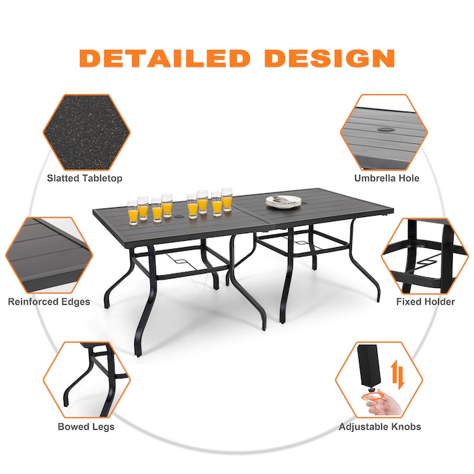 - Slatted Tabletop: Galvanized iron slatted tabletop with reinforced edges withstands the elements and facilitates quick draining while spacious enough to easily hold drinks, meals or decorations while dining outdoors.
