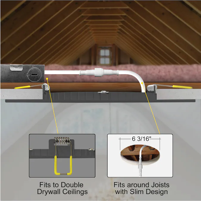 - EFFORTLESS CANLESS INSTALLATION: The innovative design of our NuWatt Square LED Lights allows for a hassle free canless installation process Our Flush Mount Recessed Light is specially crafted to fit round joists providing versatility and compatibility with various ceiling structures The square downlight can be used in new construction mounting plates and extends to double drywall ceilings ensuring seamless integration into your home