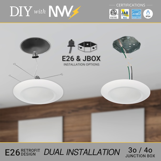 - INSTALL IN A SNAP Wire this slim LED disk to a 5 inch6 inch junction box without a can; Directly install it to the ceiling for instant bright light in your office kitchen bedroom bathroom and laundry room in any commercial and residential building