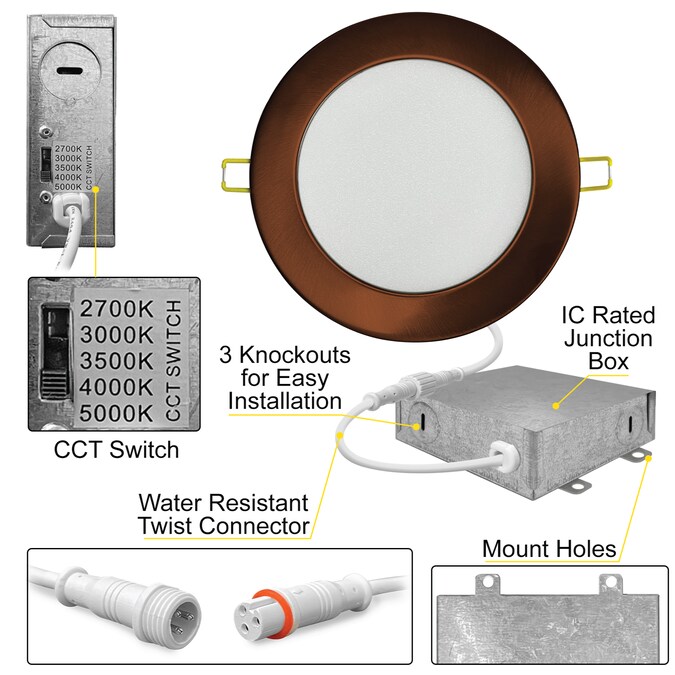 - Effortless Installation: Easily install the NuWatt Ultra Slim Recessed Certified Intertek LED Lighting without requiring a can Equipped with an integrated IC rated junction box mount holes Snap In clips 3 knockouts and water resistant twist connectors allowing for convenient installation; Designed to fit double drywall ceilings and WET Locations