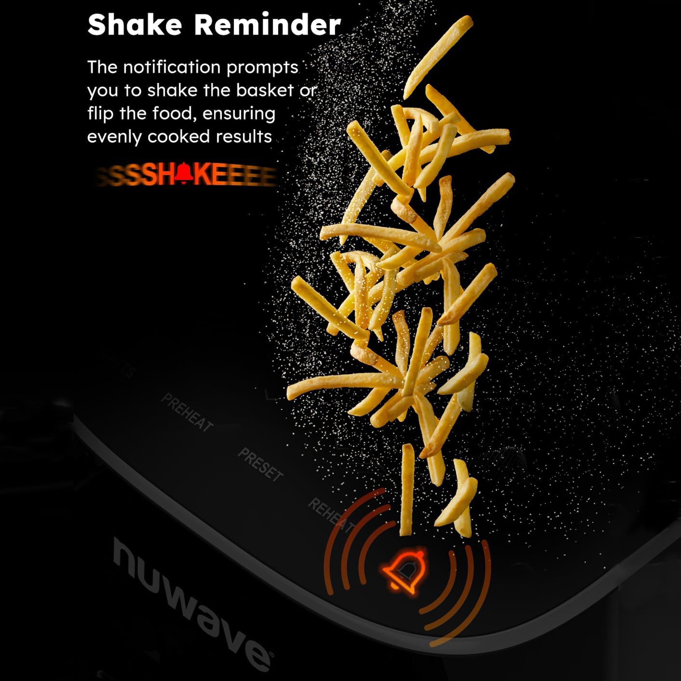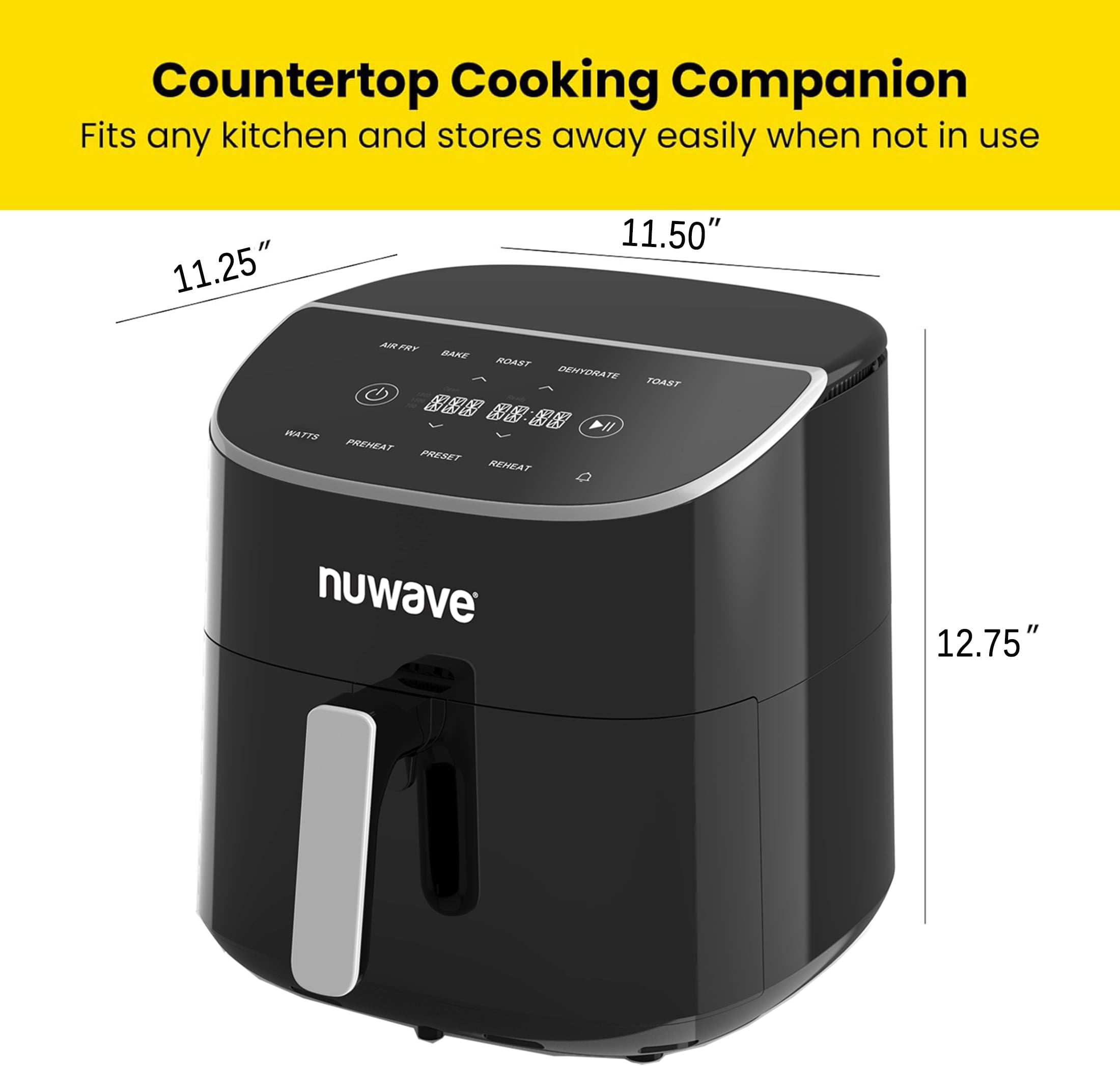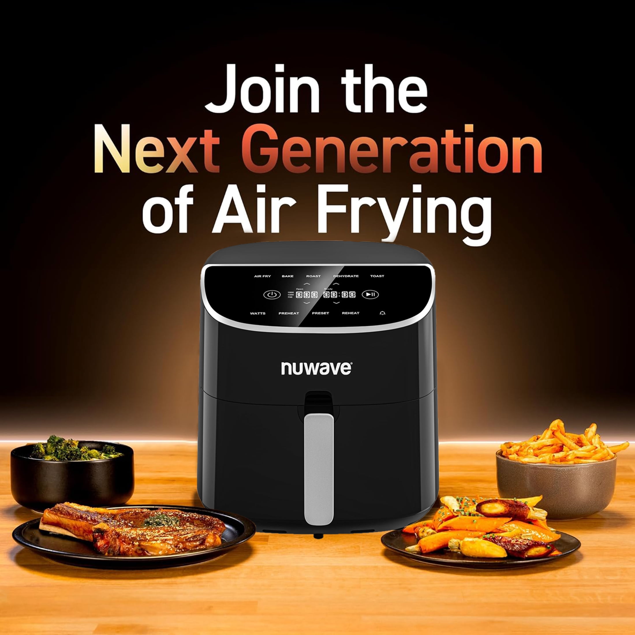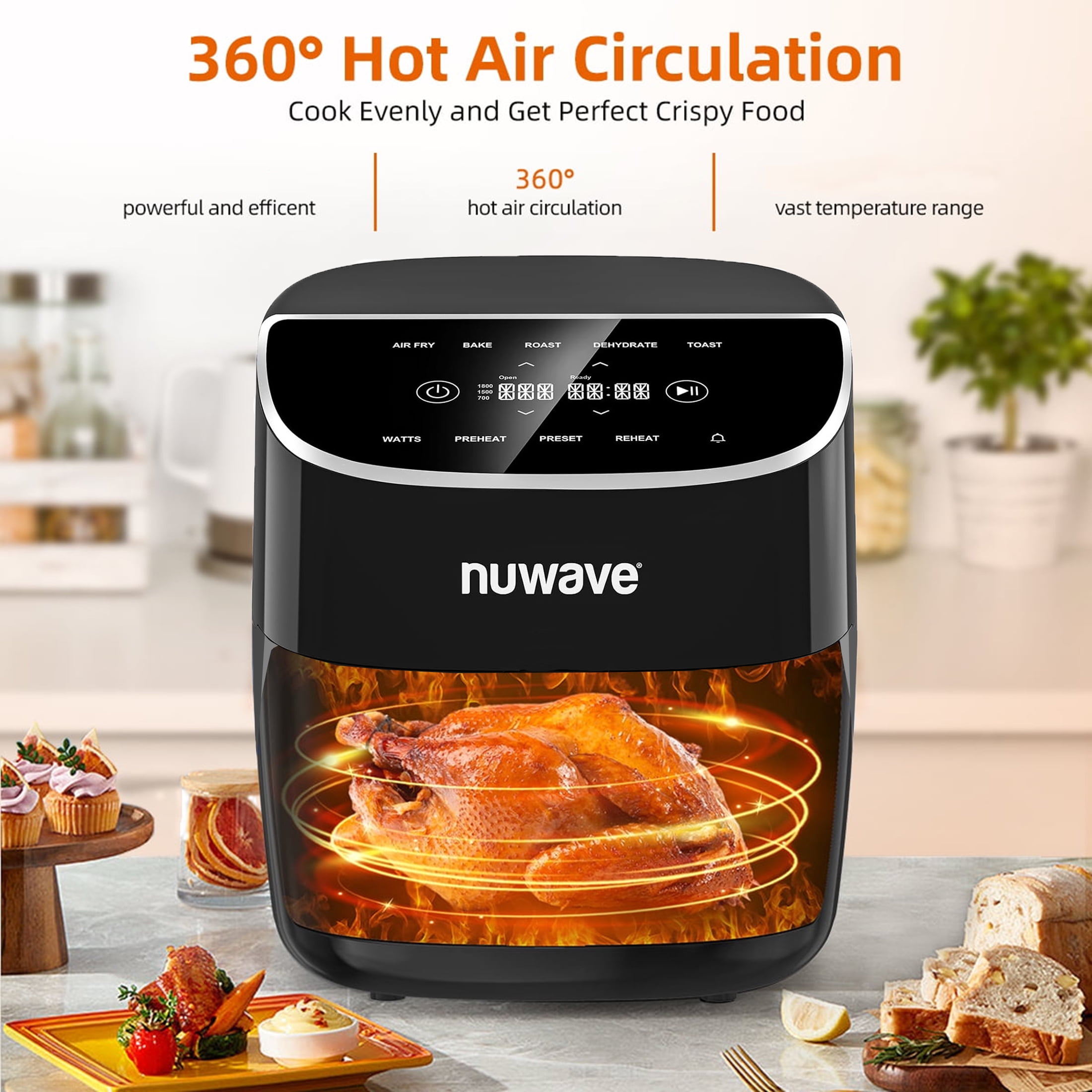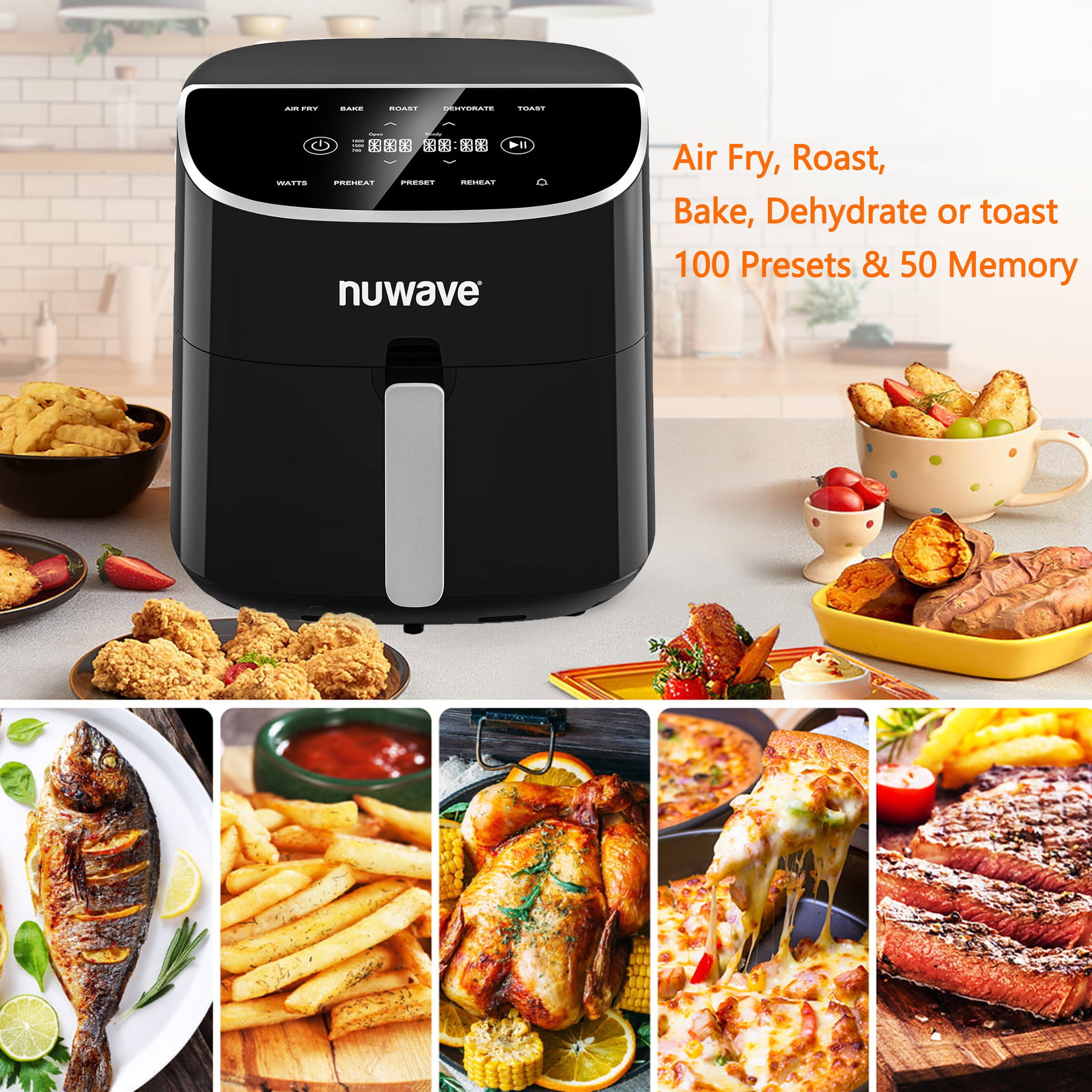 Nuwave 8QT Air Fryer Plus, Smart Digital Touchscreen and 50°F~400°F in Precise 5°, 5 Cook Functions, 100 Presets & 50 Memory, Brio Air Fryer Powerful 1800W for Quick and Easy Meals, Black