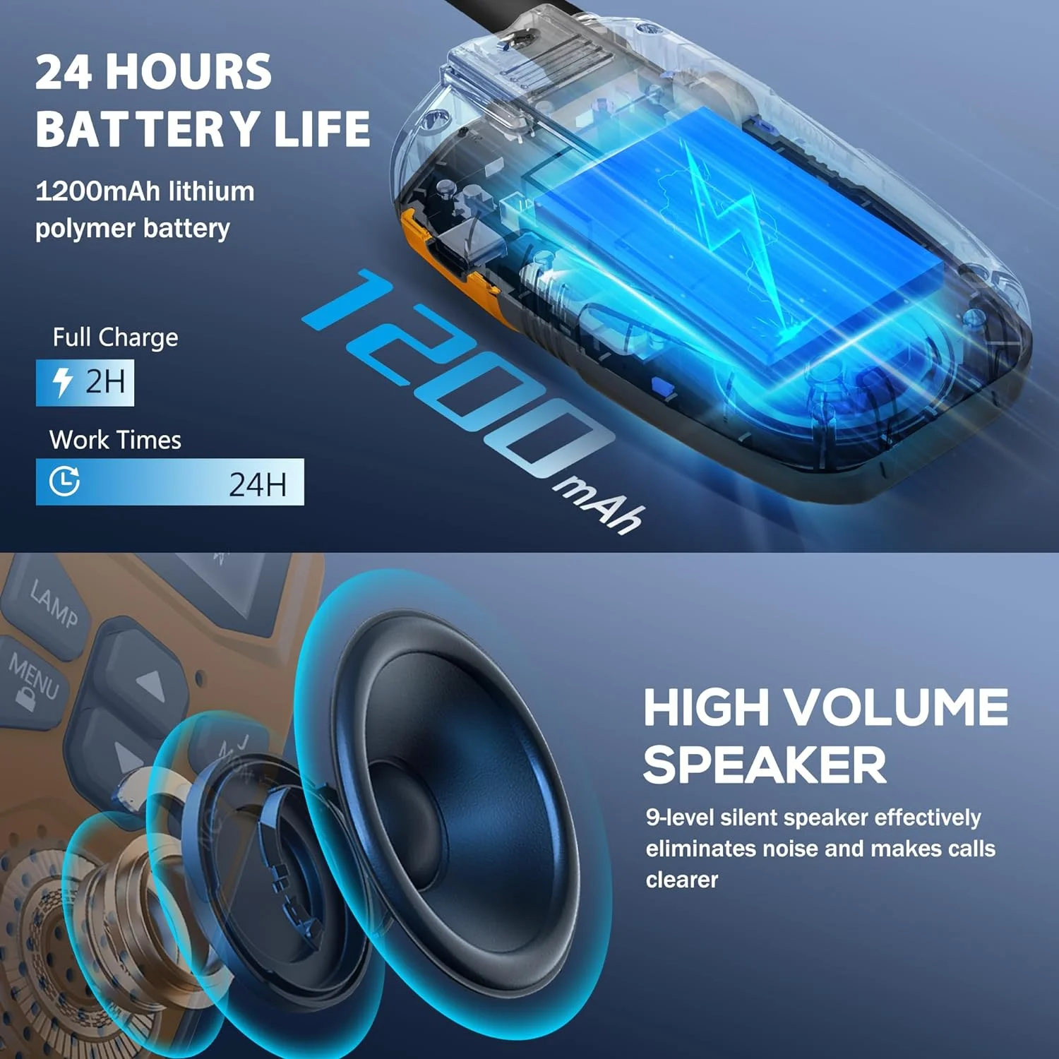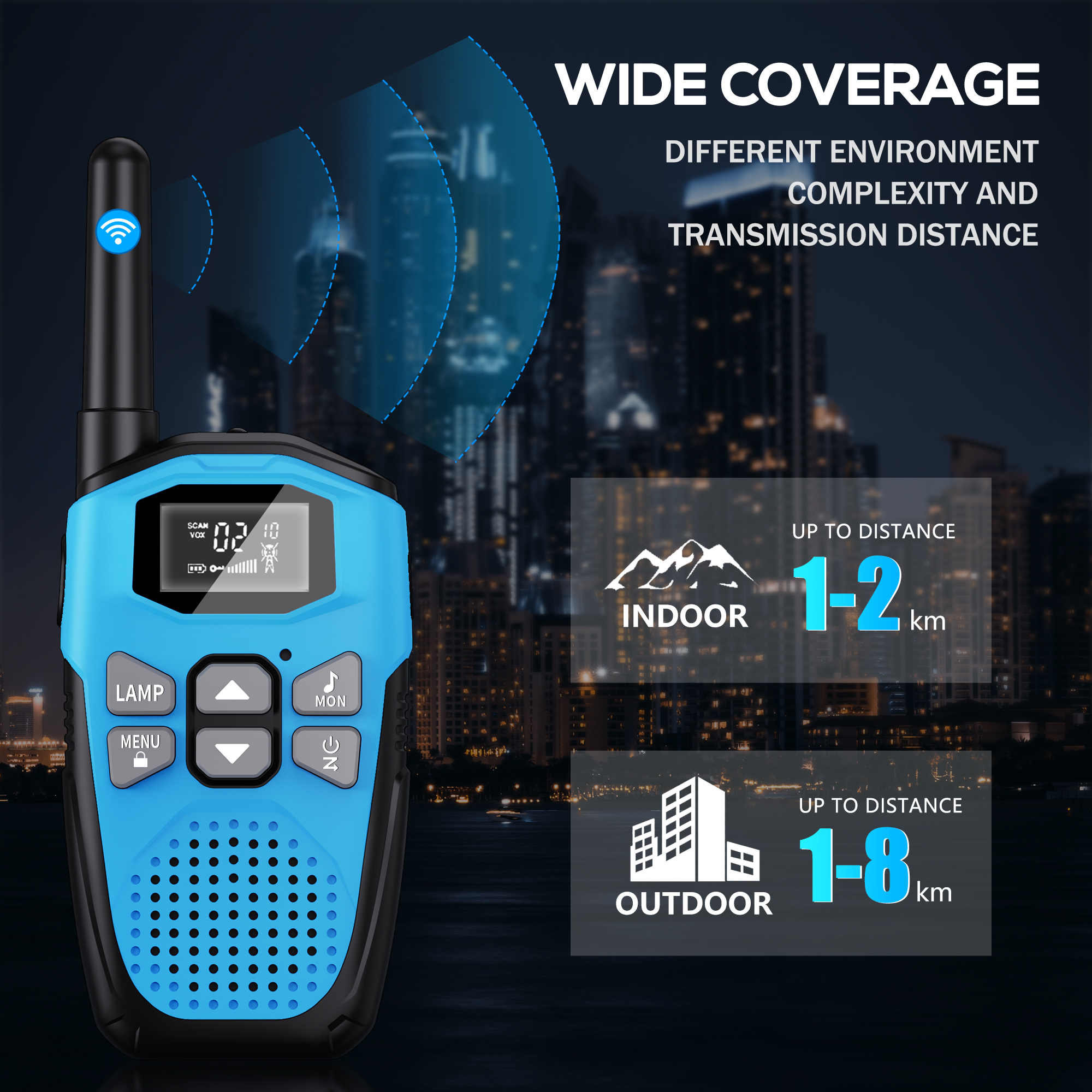 Equipped with 22 FRS Channels and 121 Privacy Codes to ensure clear communication without interference Features a built-in LED Flashlight for added convenience during outdoor activities Includes an LCD Screen with Backlight for easy visibility in low-light conditions Offers Volume Adjustment to customize the sound level to your preference Provides a Low Battery Alert to indicate when the rechargeable 1200mAh Li-ion battery needs to be charged Supports VOX-Hands-Free operation for convenient, hands-free communication Includes a Keypad Lock (Channel-lock) feature to prevent accidental changes to the settings Designed to be Easy to Use for both Kids and Adults Equipped with Auto Squelch, Auto Memory, Auto Scan, and Auto Power Saving features for efficient operation Allows communication with all FRS radios on the same channel, making it compatible with a wide range of devices Offers a Long Range of up to 3 Miles in open field conditions, subject to terrain and environmental factors Complies with FCC standards (FCC ID: 2AYV7YG-813) Available in a variety of color options: Orange, Yellow, and Blue