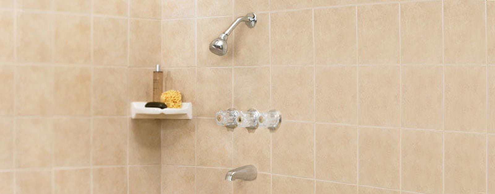 Three handle design for easy control of water flow and temperature Single-function showerhead Zinc Spout Valve included 3 Acrylic Handles Washerless cartridge helps prevent leaks Limited Lifetime Warranty