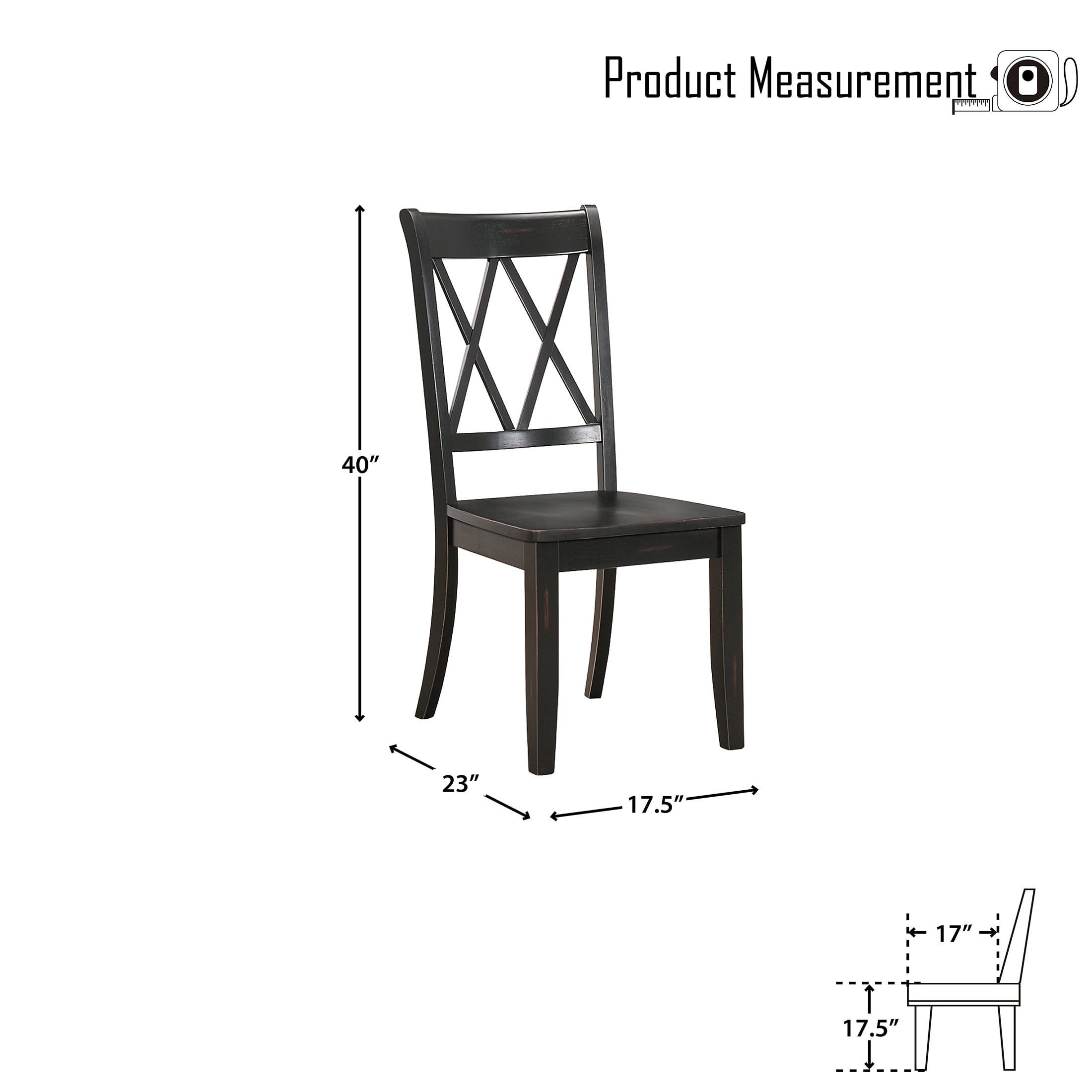 Dining Chairs / Side Chairs Solid-hue finished wood frame Chair back with double-X design Product Dimension Overall Size: 17.5 x 23 x 40H inch Seat Length: 18.5 inch Seat Depth: 17 inch Seat Height: 17.5 inch Other Specification Weight Capacity: 250lbs Assembly Required: Yes Shipping Information Piece(s) per Box: 2 pieces Box(es) per Shipment: 1 box Doorway Width: 11 inch Hollman Collection Dining Side Chair Disclaimer Please allow 0.5-1 inch difference due to manual measurement Product color may slightly vary due to photographic lighting sources or your monitor setting Documentation Installation Manual