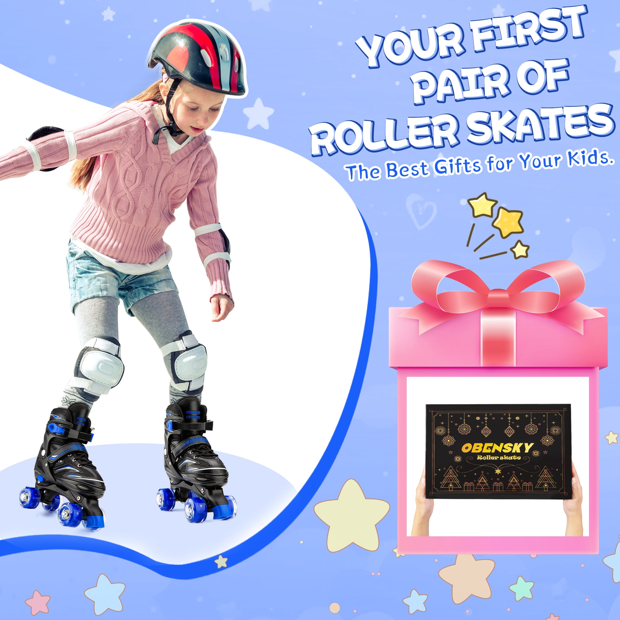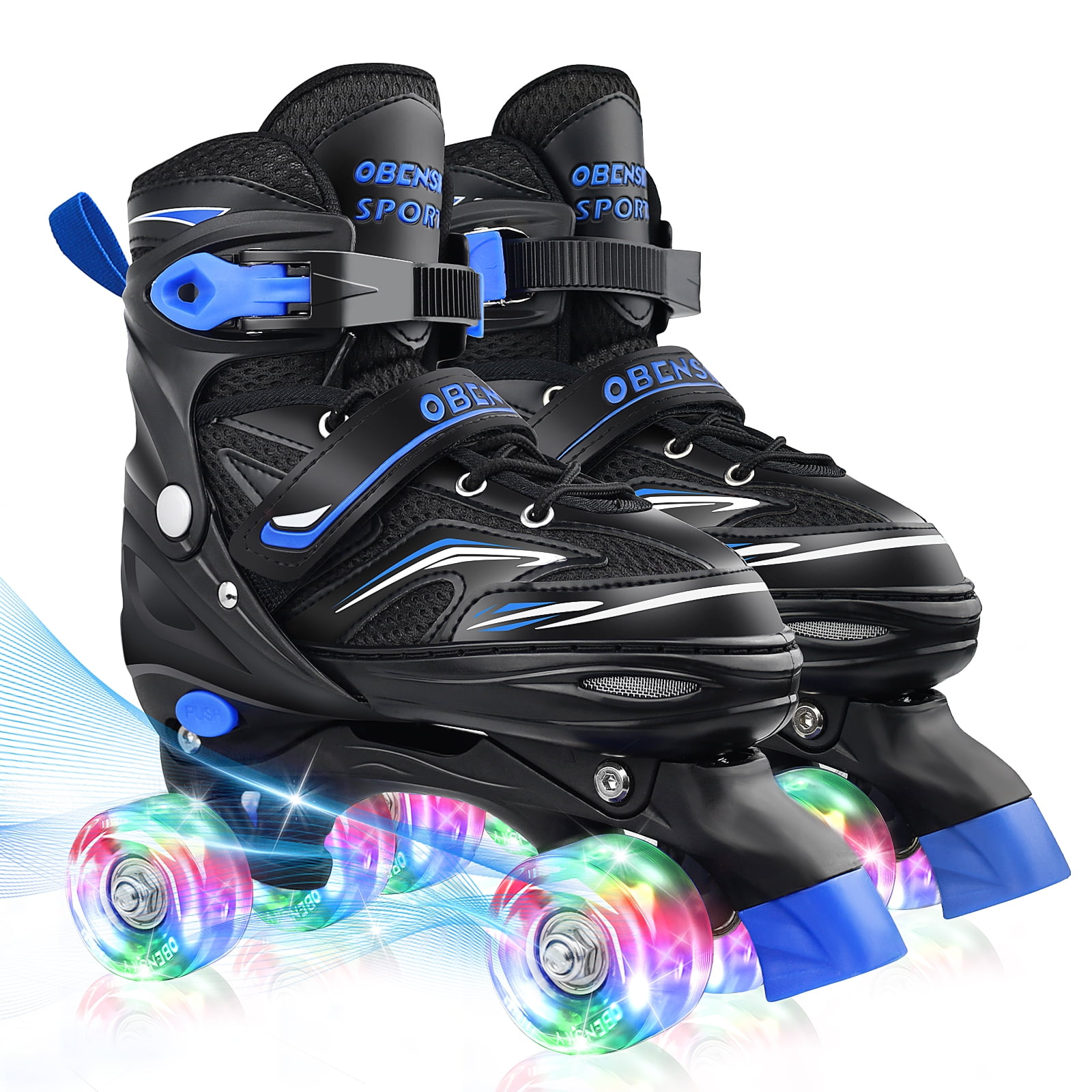 OBENSKY Roller Skates, 4 Size Adjustable for Girls & Boys w/ Light up Wheels-Blue/Pink