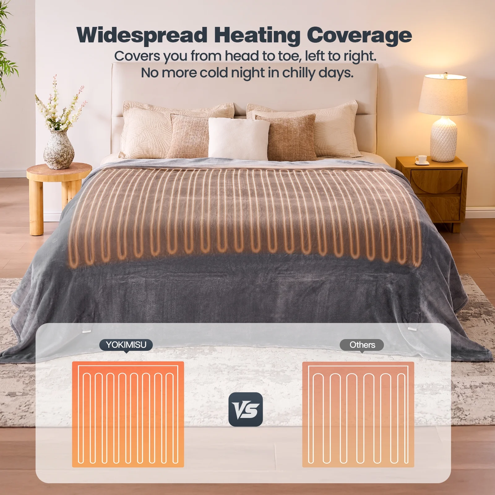 Ocuuziisu Electric Blanket 90″ x 100″ King Size Heated Blanket, Flannel and Sherpa, 10 Hour Auto-off, 9 Heat Settings, Fast Heating, Machine Washable, Gray