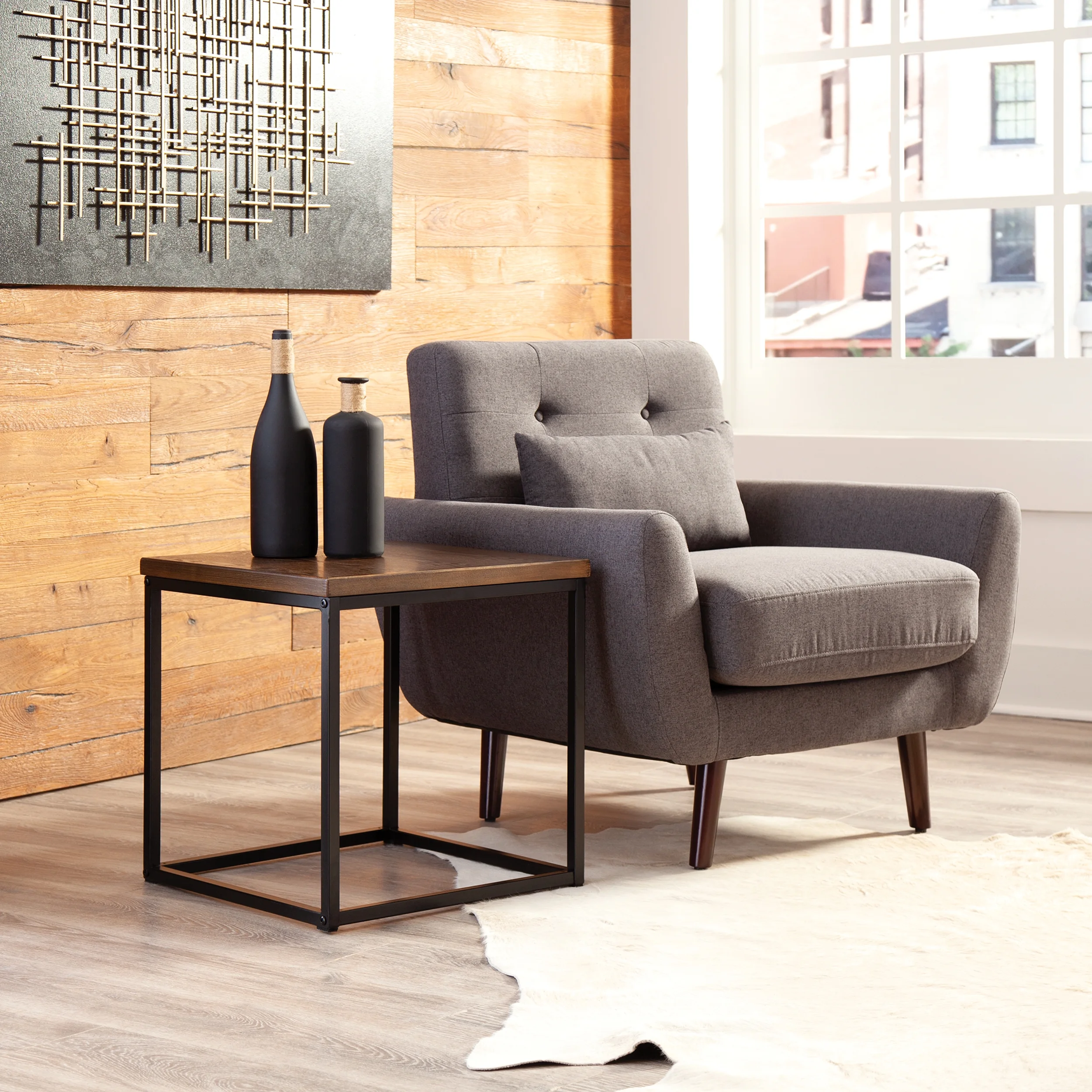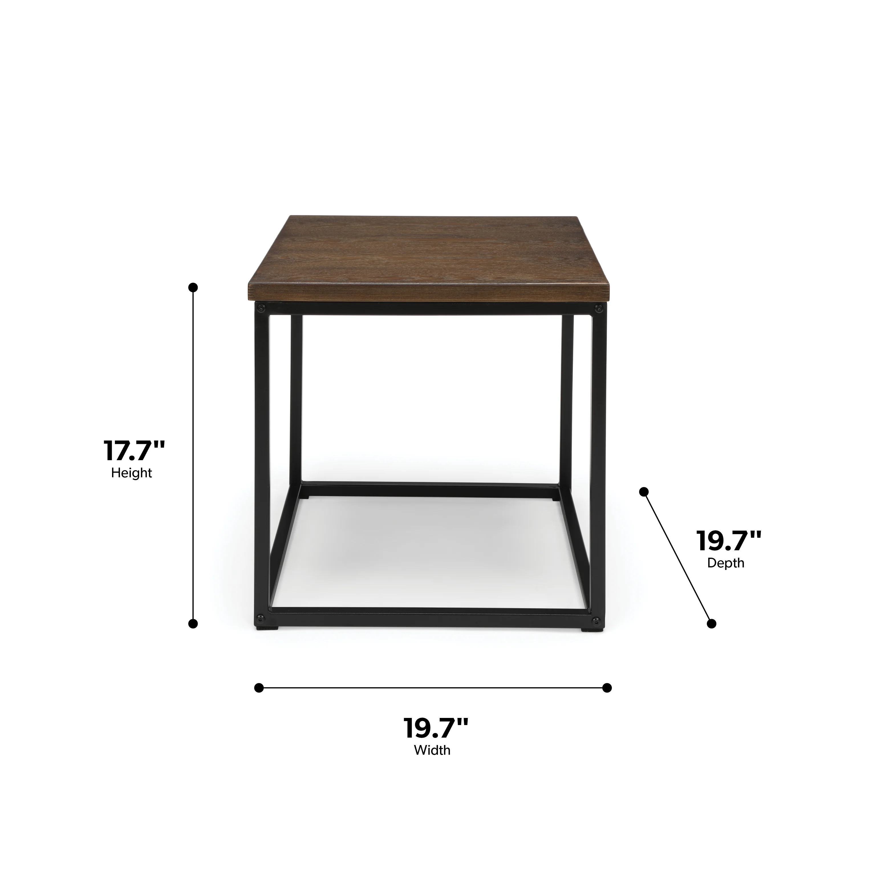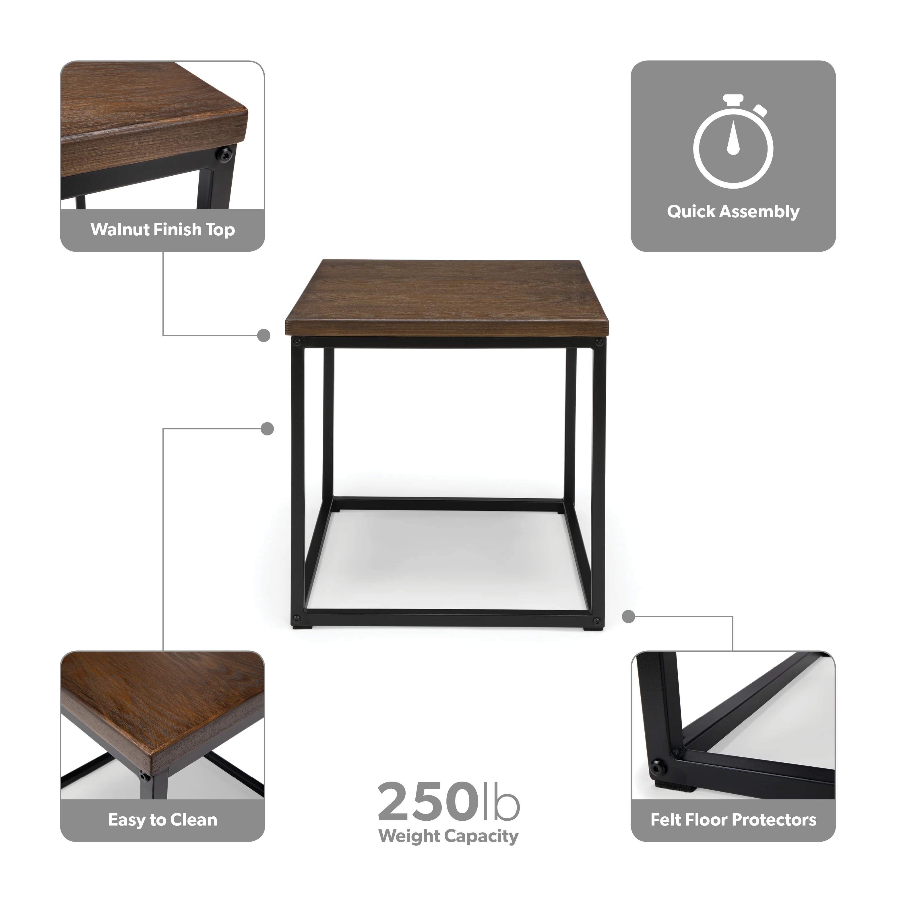 Industrial modern end table blends seamlessly in living rooms, recreational spaces, lobbies, and reception areas The richness of the Walnut tabletop finish pairs with the strong matte Black metal frame for an industrial touch The side table assembles easily and quickly The use of metal and wood mean the table is easy to clean with a damp cloth The non-marring felt floor protectors help prevent scratches to the floor from movement The accent table measures 19.7″ D x 19.7″ W x 17.7″ H and holds up to 200 lb of weight A full BIFMA rating means that you are investing in a product that meets strict standards for performance The table is backed by our 5 Year Limited Warranty