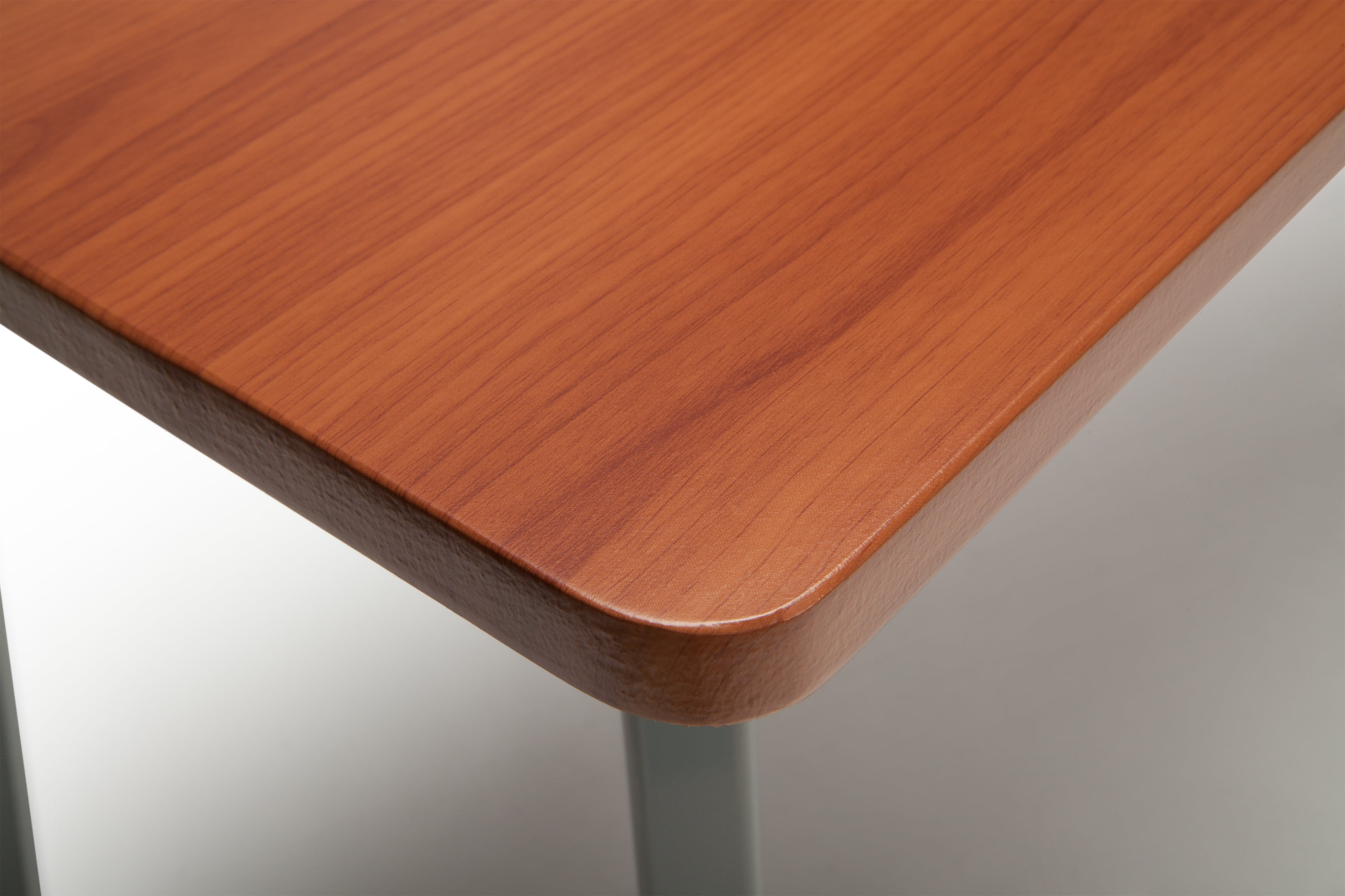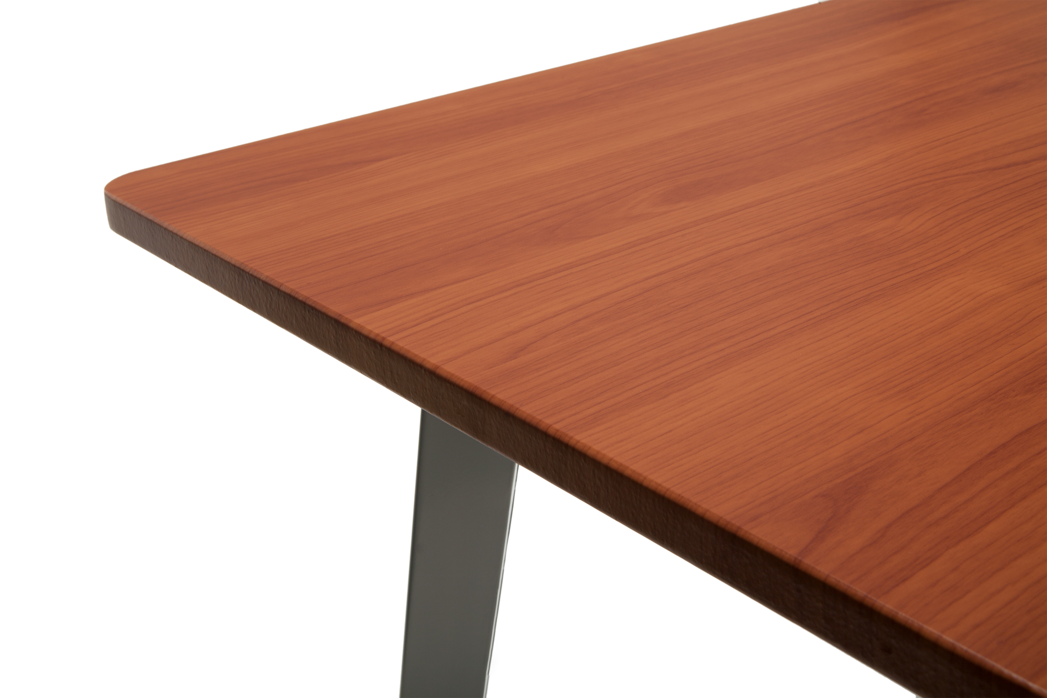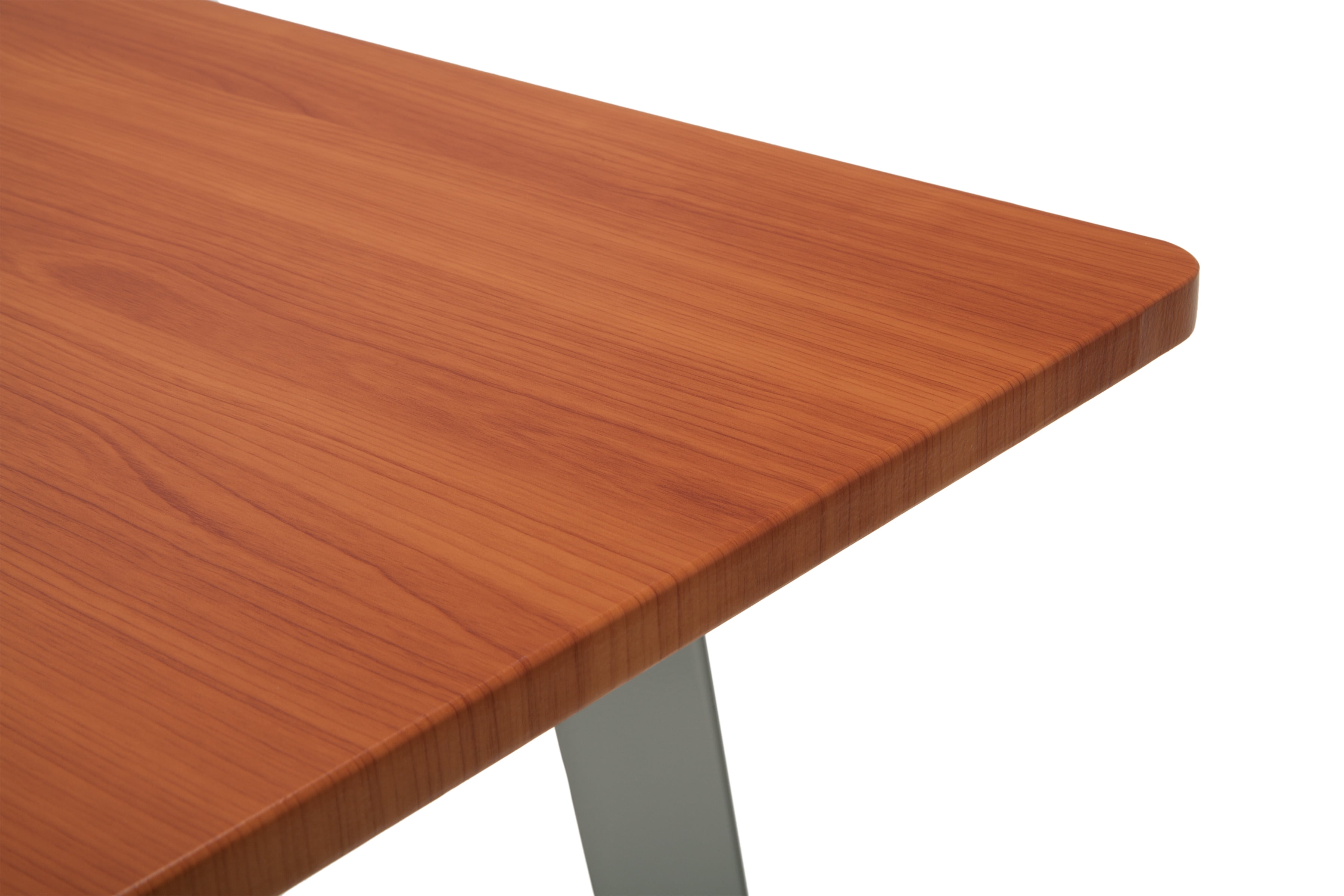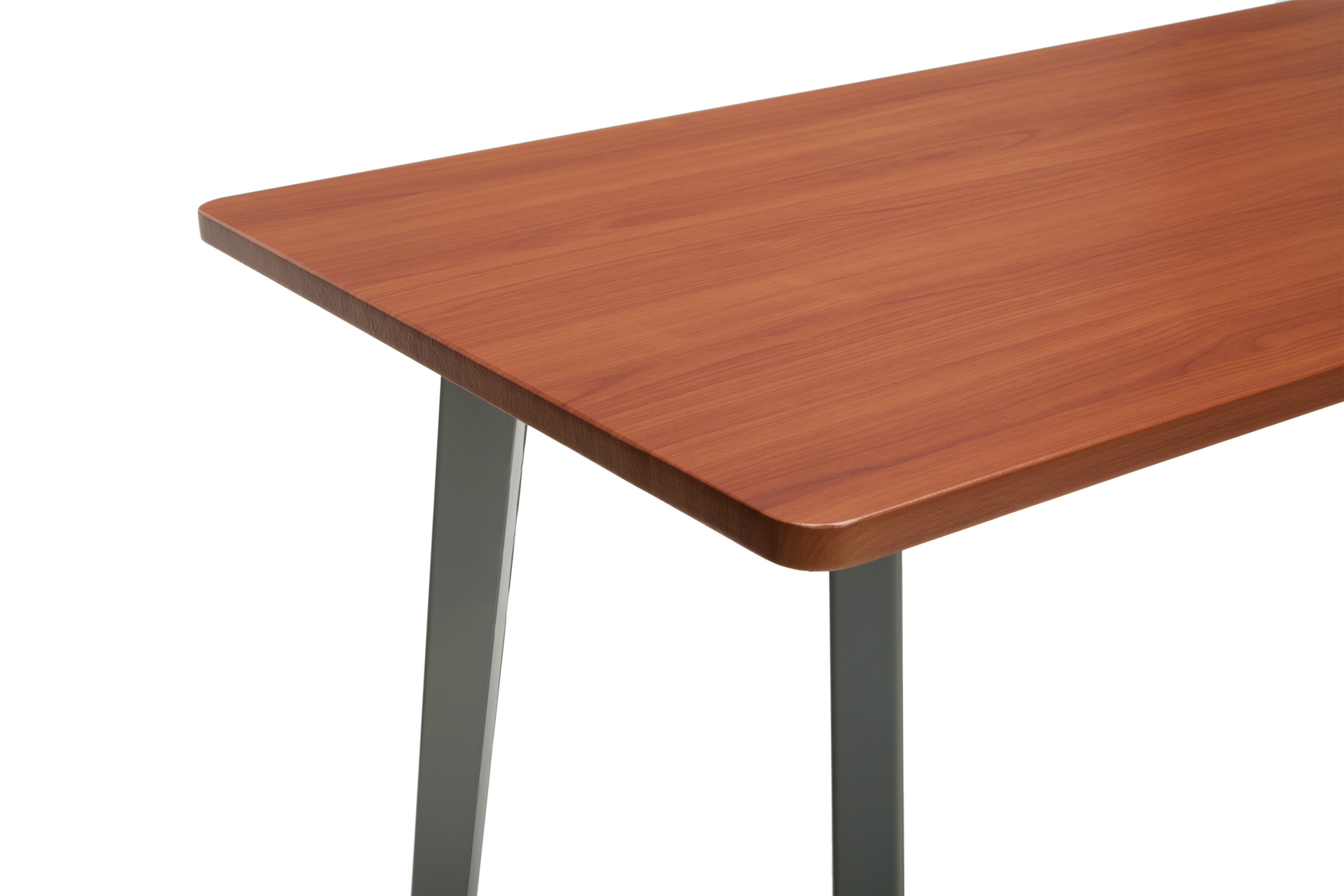 The industrial modern computer desk has simple,sleek silver angled legs that easily fit a home or office setting The durable MDF desktop core is wrapped in PVC for a stylish and long lasting Cherry tabletop finish Rounded table edges, 3/4″ thick surface, and strong angled legs mixes up delicate with industrial for an edgy look Weighing less than 40 lb, it might seem like a lightweight desk, but it holds a hefty 200 lb of weight This desk features simple and sleek lines and that also means it’s easy and quick to assemble Adjustable leg glides allow incremental height to be added to any of the legs to account for an unlevel floor surface With overall dimensions of 47.24″ L x 23.62″ D x 29.02″ H, the use options for this contemporary office desk are nearly endless This stunning wooden desk is backed by the OFM 10-Year Limited Warranty