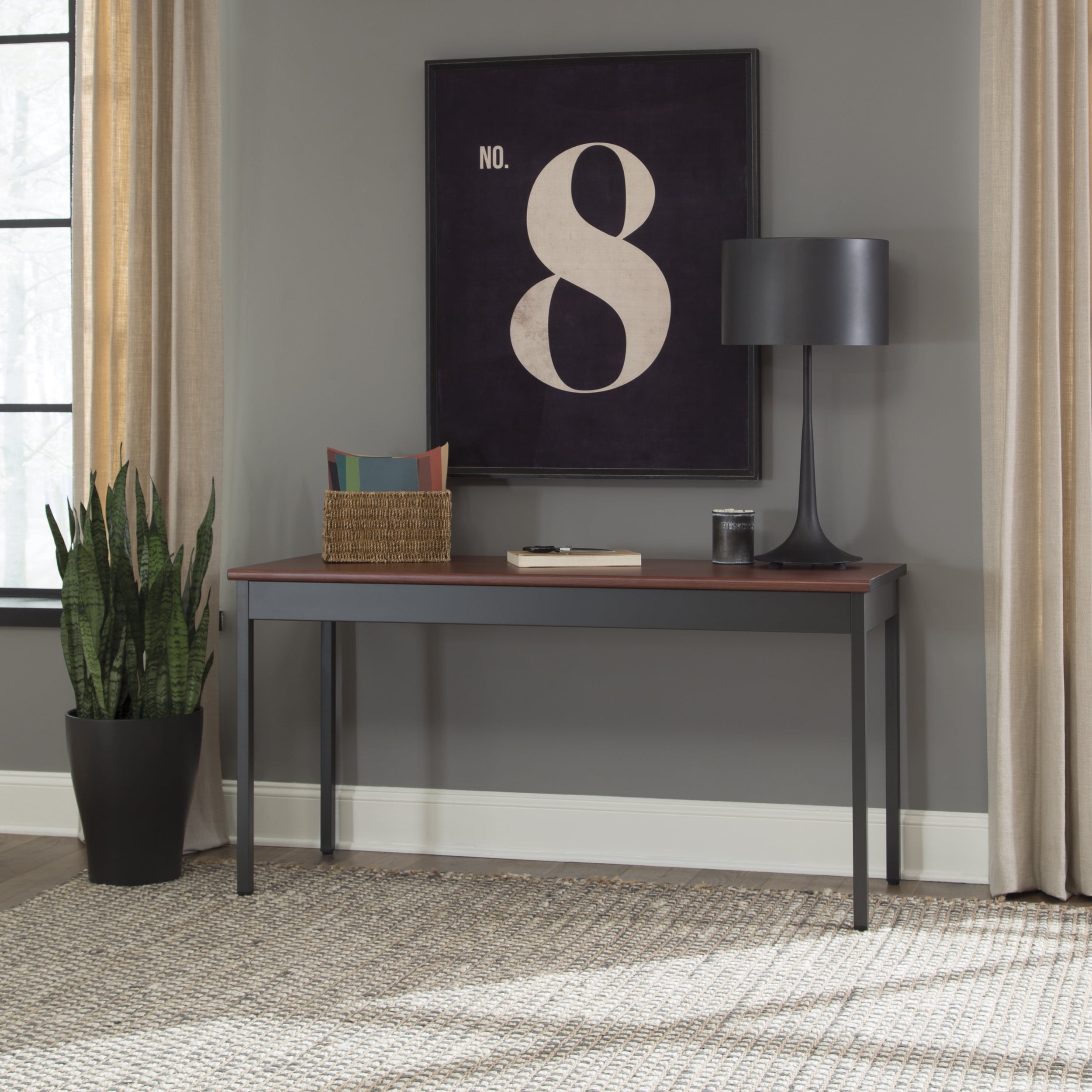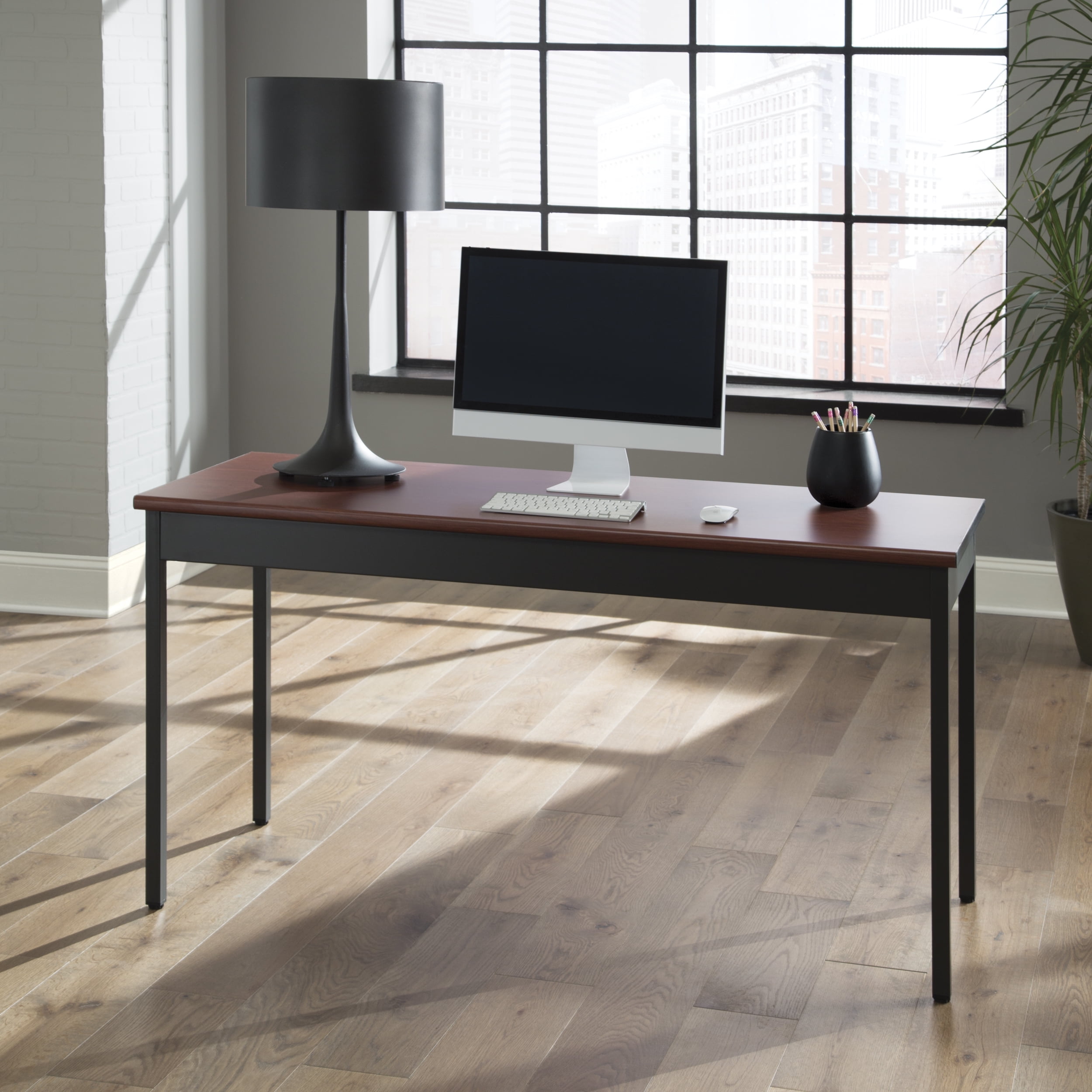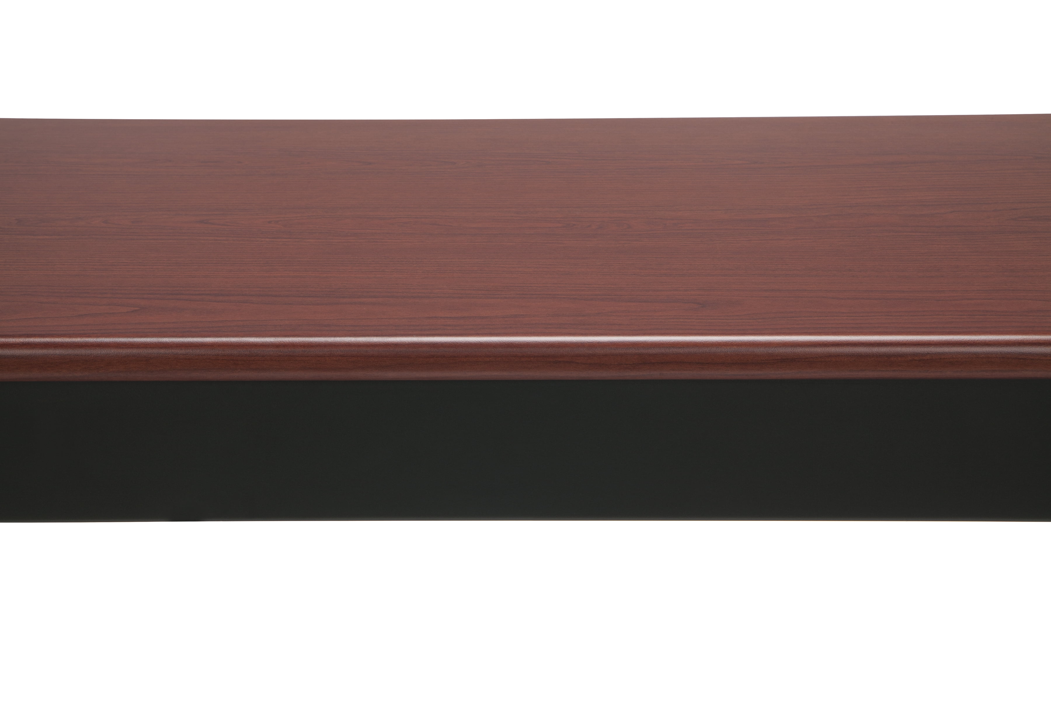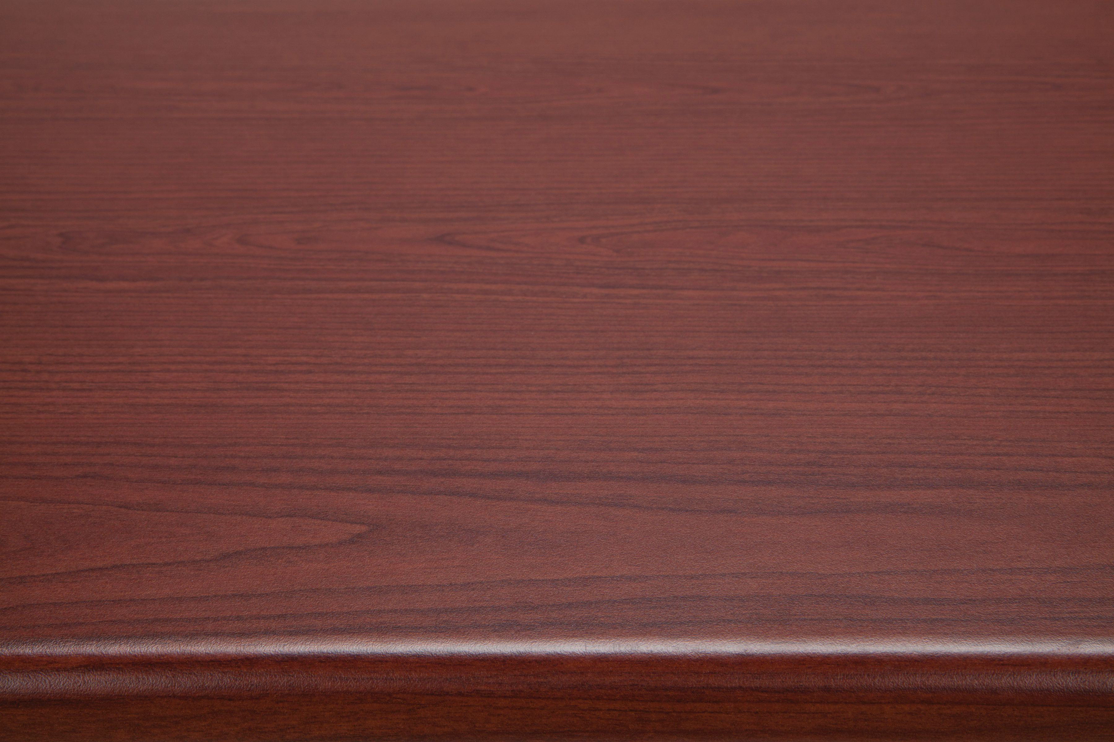 Color: Cherry Mar-proof high pressure laminate surface Built-in floor glides Designed and built for commercial use Pictured in Cherry Overall: 60 in. L x 24 in. D x 30 in. H This attractive and functional 24 in. x 60 in. utility table is perfect for any library, school, office, or other work environment. The contemporary design with bull nose edges and hi-pressure laminate tabletop will complement any decor. It is both strong and sturdy, with 14 gauge steel and built-in adjustable leg glides. Easy assembly.
