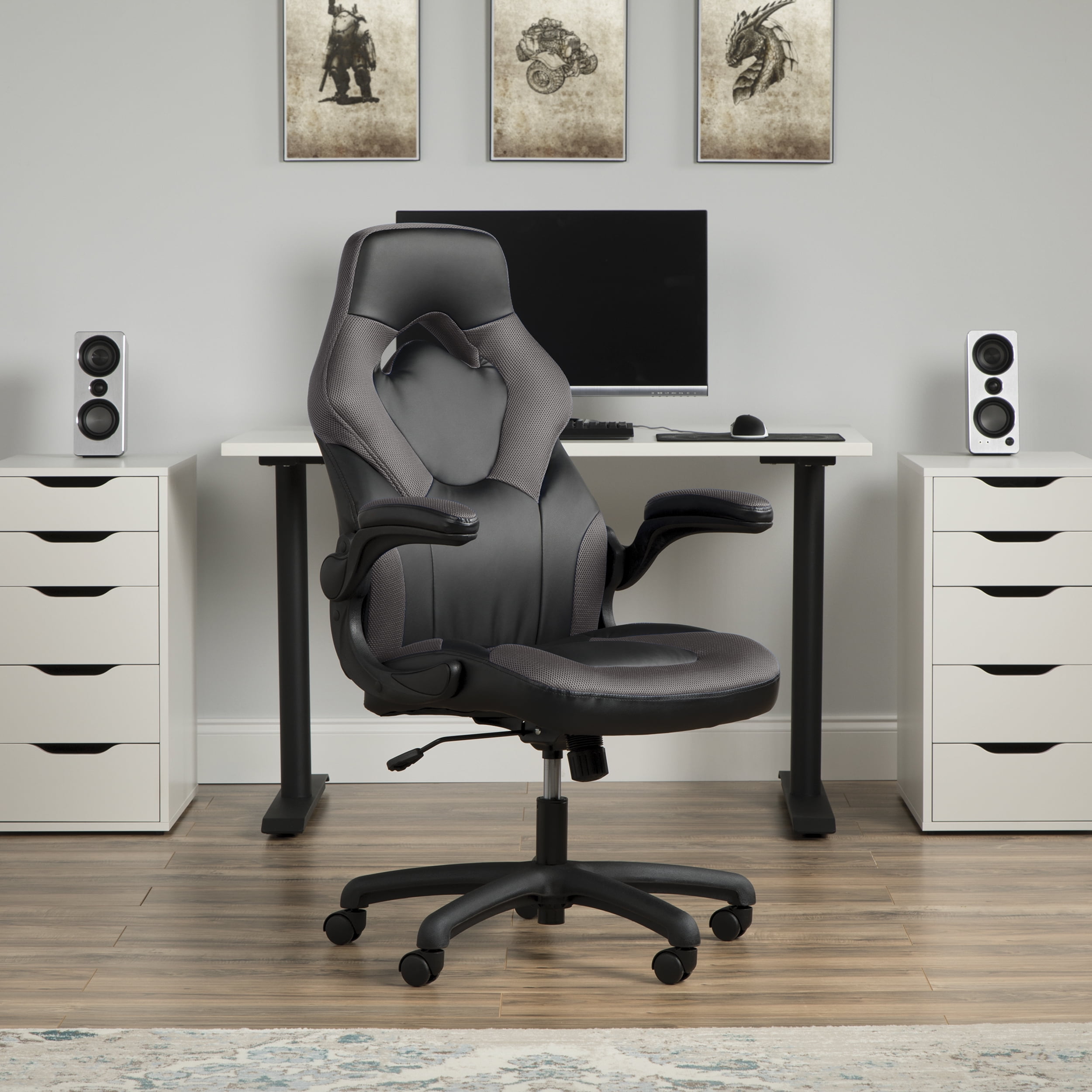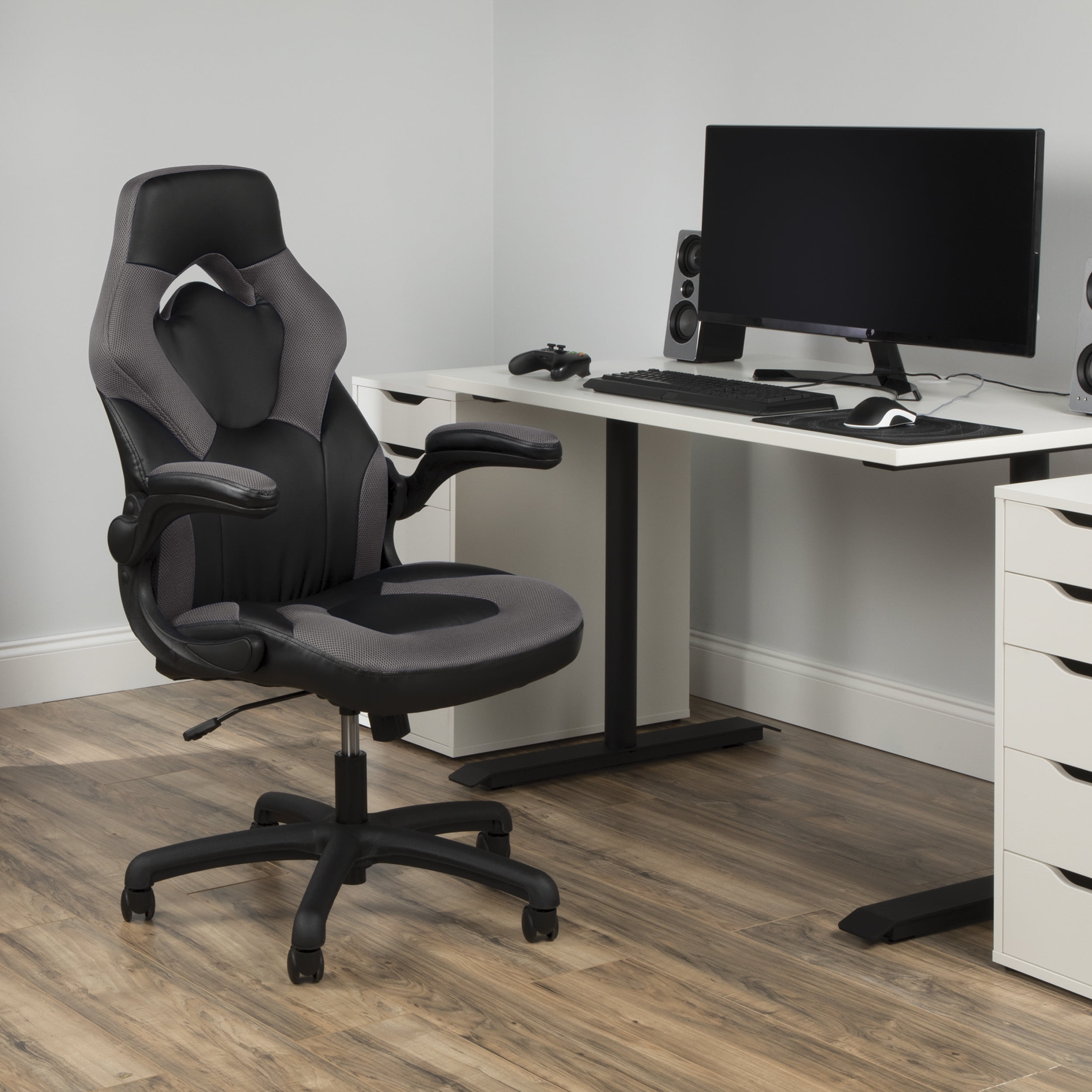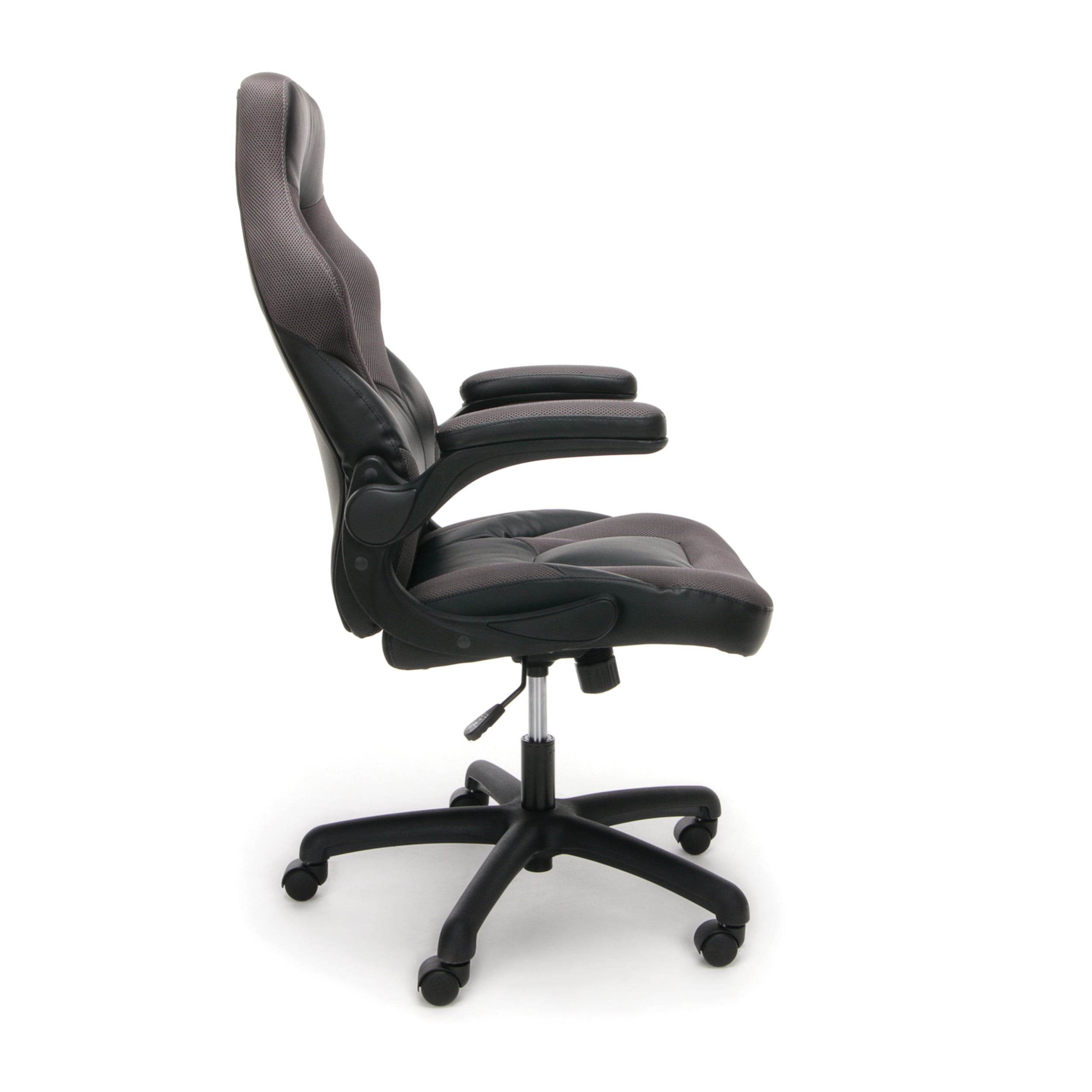 The Essentials by OFM seating collection is where quality meets value – and now it’s taking the desk chair to a whole new level with the ESS-3085 series. Designed in an ergonomic race car style with contoured segmented padding, a high back, and integrated headrest and lumbar support, this chair provides high-performance comfort whether used during intense gaming sessions or long work days. The thickly padded armrests can be left down for upper body support or flipped up to allow for uninhibited movement whenever you need it. Additional features include seat height adjustment, tilt-lock/tilt-tension control and 360-degree swivel. SofThread Leather and contrasting color mesh upholstery complete the modern, high-quality look and feel of the ESS-3085. The comfort, style, and competitive price of this chair make it a perfect addition to your home or office. This chair meets or exceeds industry standards for safety and durability, and is backed by our Essentials by OFM 3 year limited warranty. The ESS-3085 has a 250 pound weight capacity.