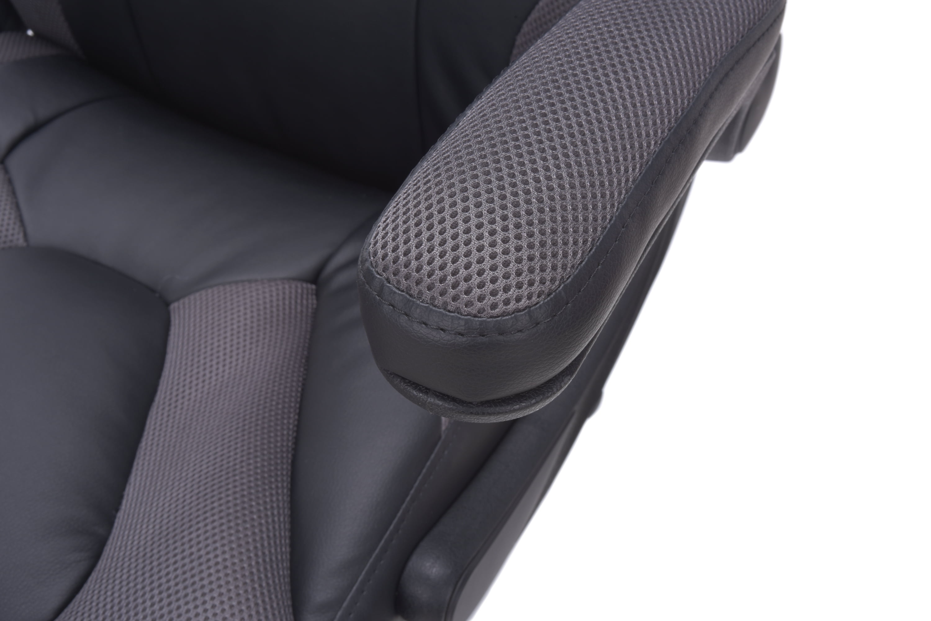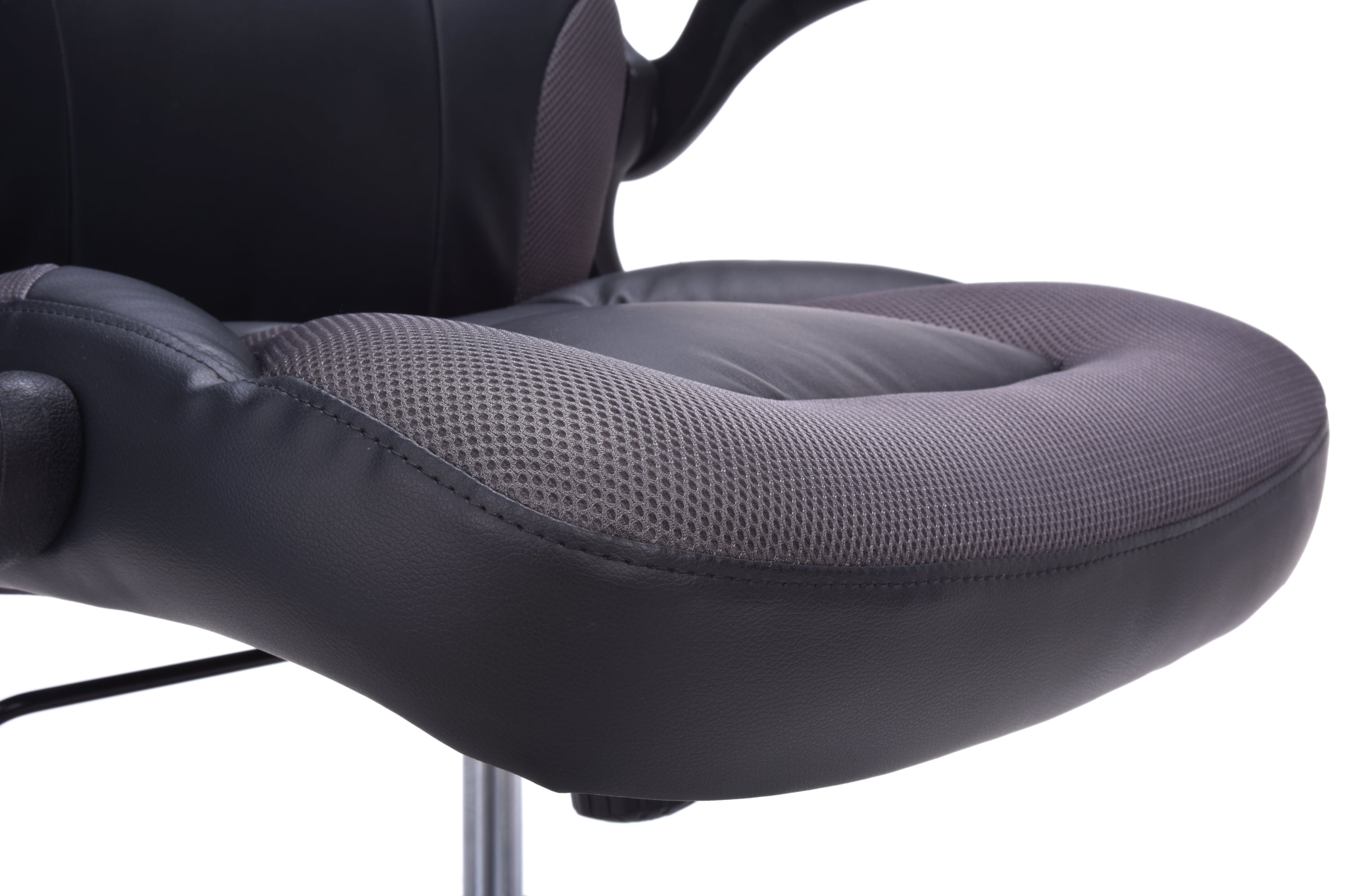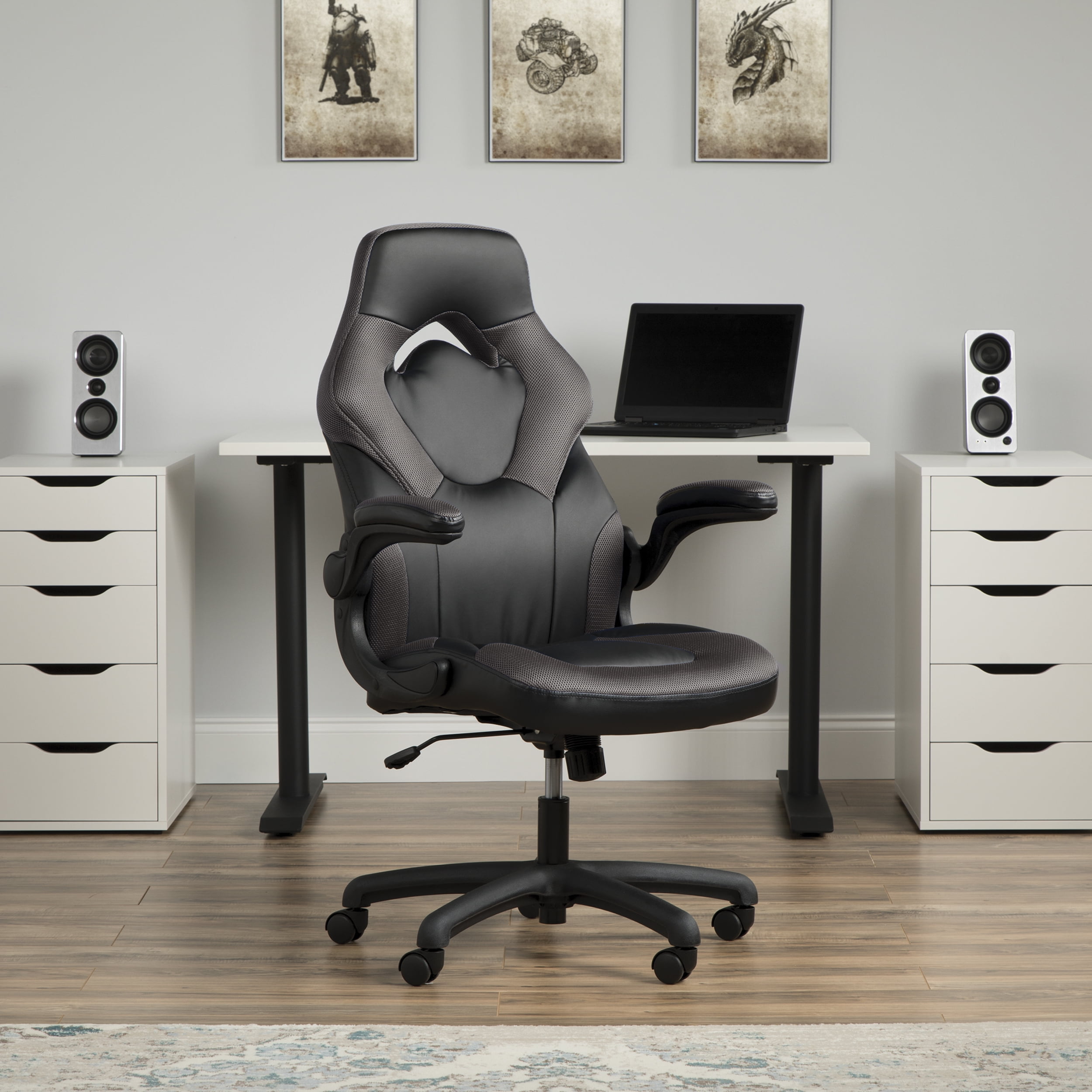 The Essentials by OFM seating collection is where quality meets value – and now it’s taking the desk chair to a whole new level with the ESS-3085 series. Designed in an ergonomic race car style with contoured segmented padding, a high back, and integrated headrest and lumbar support, this chair provides high-performance comfort whether used during intense gaming sessions or long work days. The thickly padded armrests can be left down for upper body support or flipped up to allow for uninhibited movement whenever you need it. Additional features include seat height adjustment, tilt-lock/tilt-tension control and 360-degree swivel. SofThread Leather and contrasting color mesh upholstery complete the modern, high-quality look and feel of the ESS-3085. The comfort, style, and competitive price of this chair make it a perfect addition to your home or office. This chair meets or exceeds industry standards for safety and durability, and is backed by our Essentials by OFM 3 year limited warranty. The ESS-3085 has a 250 pound weight capacity.