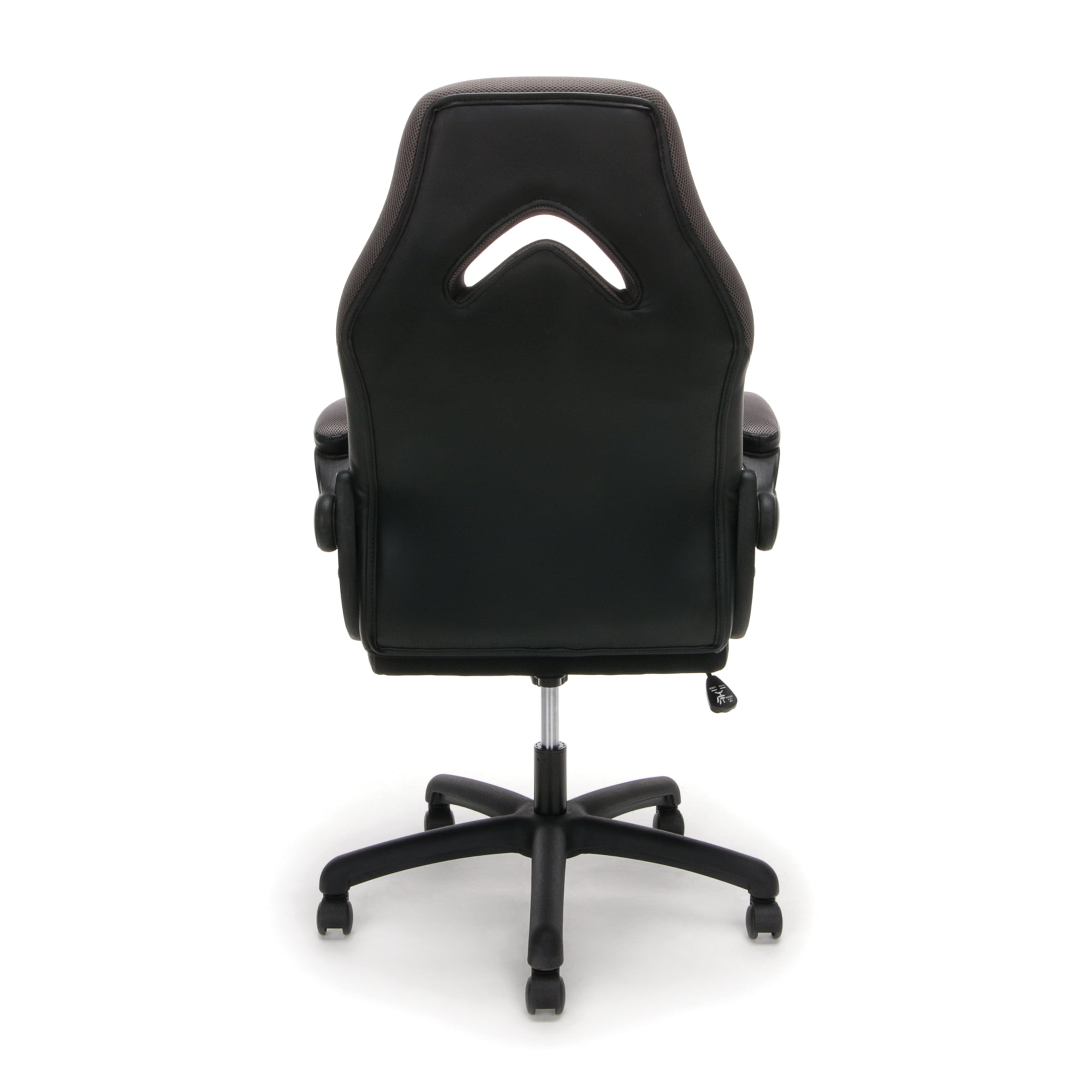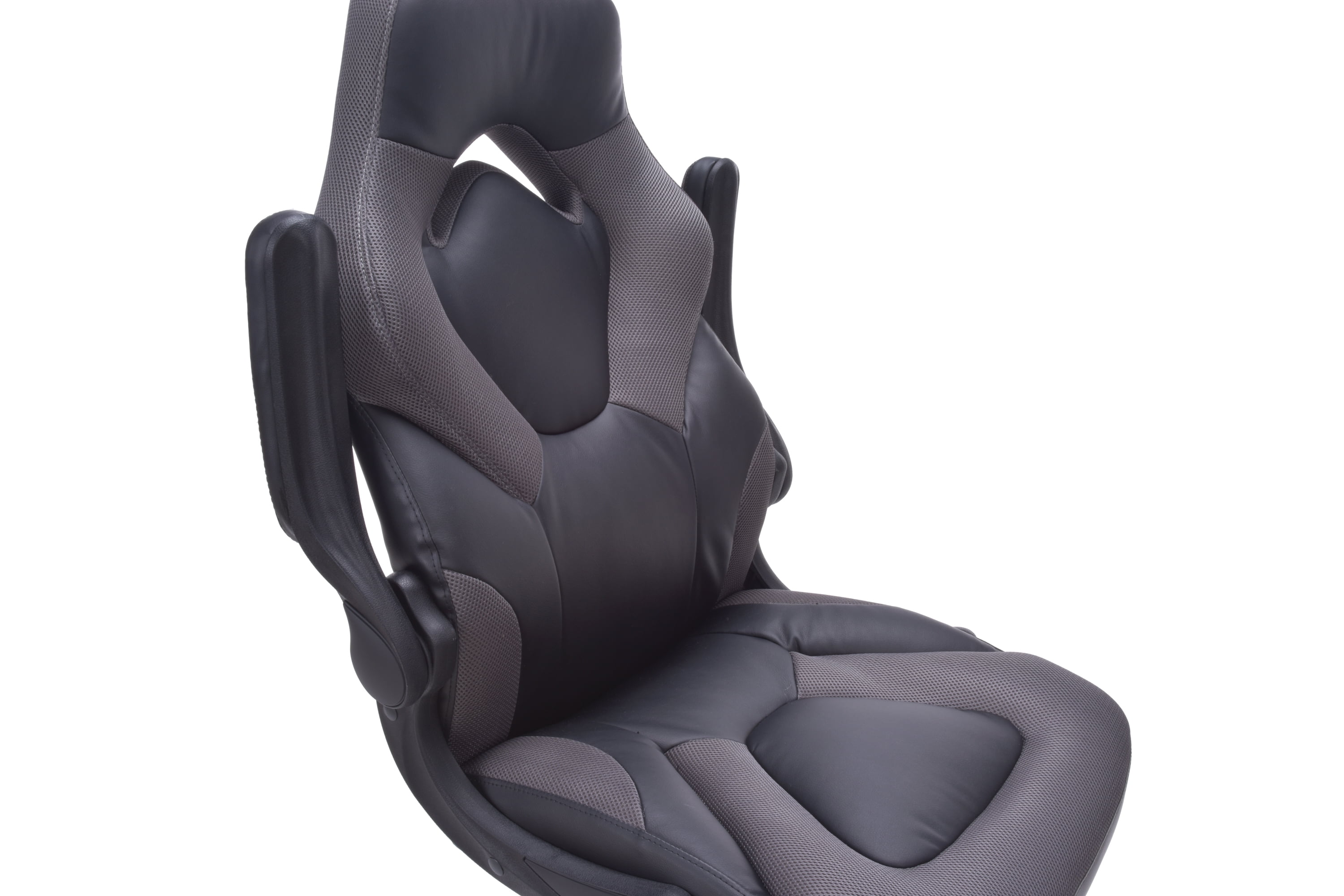 COMPUTER GAMING CHAIR: A race car style chair that provides luxury and comfort whether used during intense gaming sessions or long workdays ERGONOMIC SWIVEL CHAIR: With contoured segmented padding, integrated padded headrest, and padded arms, this video game chair provides quality support and comfort for hours of play ADJUSTABLE RACING CHAIR: Features height adjustment, center-tilt control, flip-up arms and 360 degrees of swivel PREMIUM LEATHER CHAIR: Upholstered in SofThread Leather and contrasting colored upholstery for an aggressive style and cool feel DURABLE OFFICE FURNITURE: This heavy duty chair has a 275 lb weight capacity for long-lasting use WARRANTY & SUPPORT: Relax knowing this racing desk chair is backed by the OFM Essentials 5-Year Limited Warranty