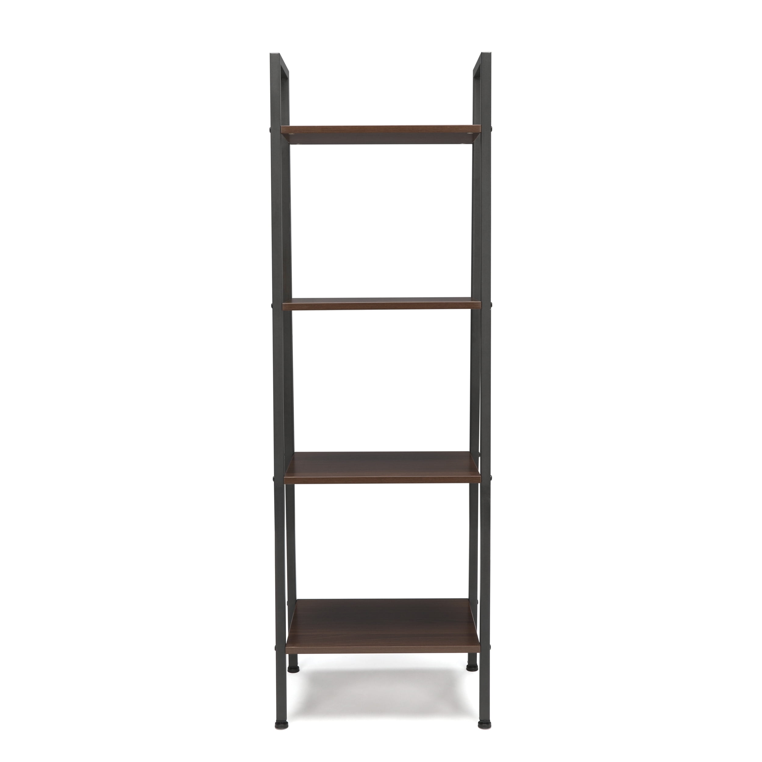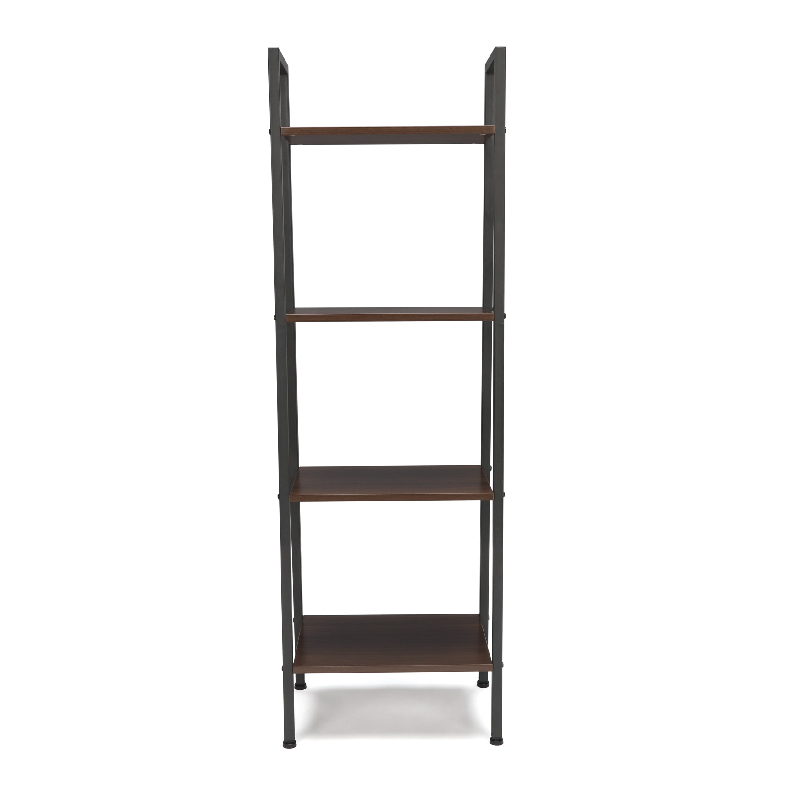 Dimensions: 17.50W x 11.75D x 54H in. Engineered wood, metal, and steel construction Choose from available finishes 4 fixed shelves Assembly required