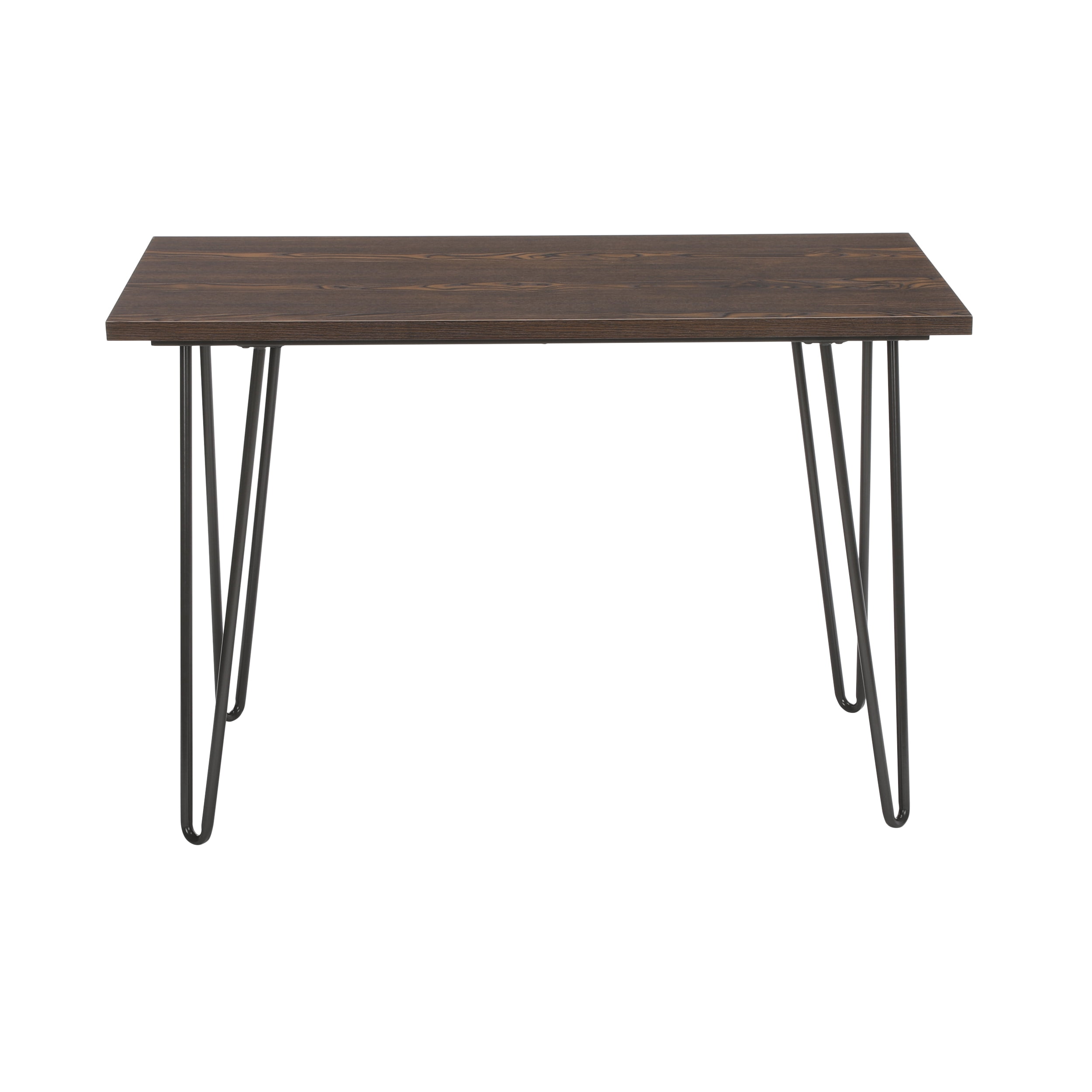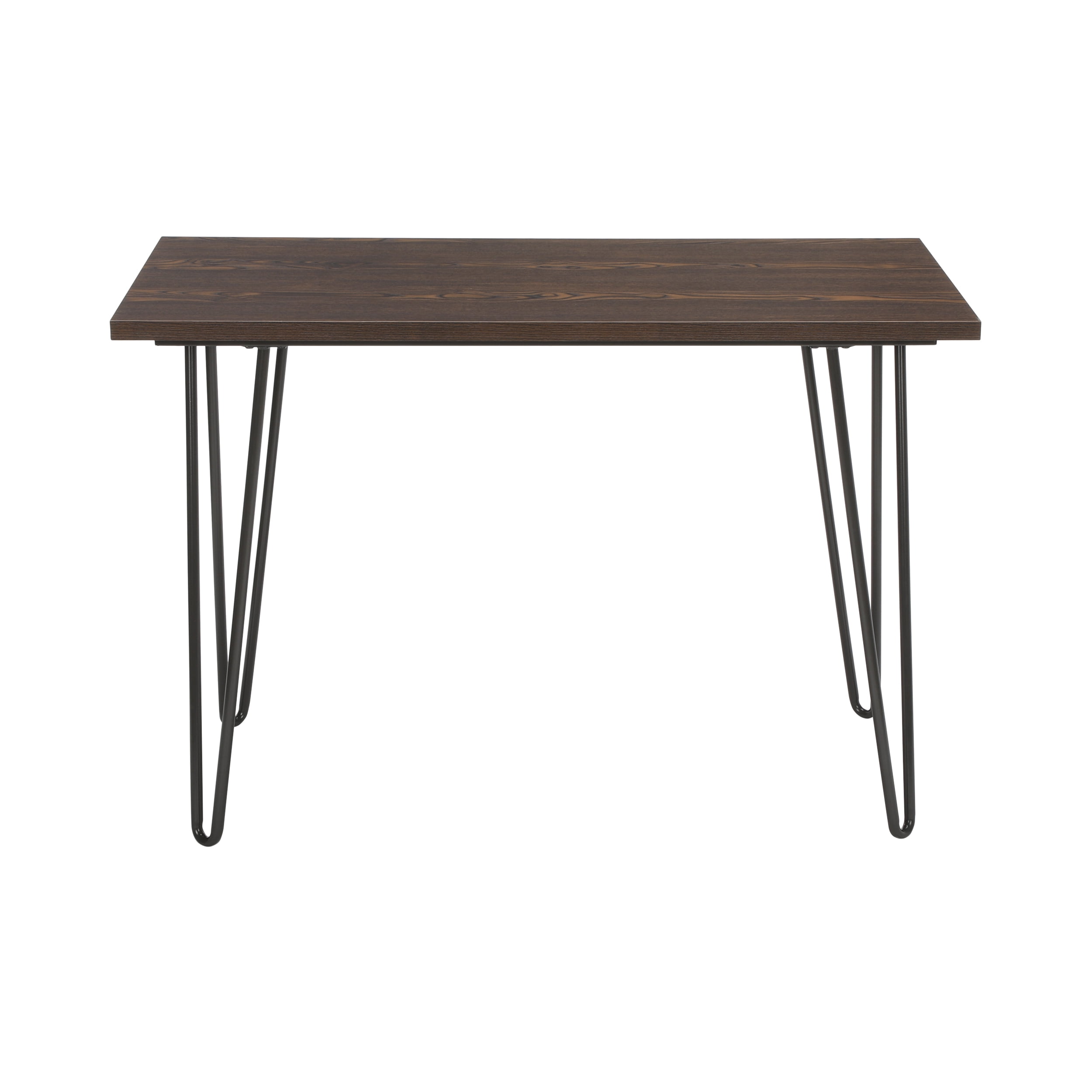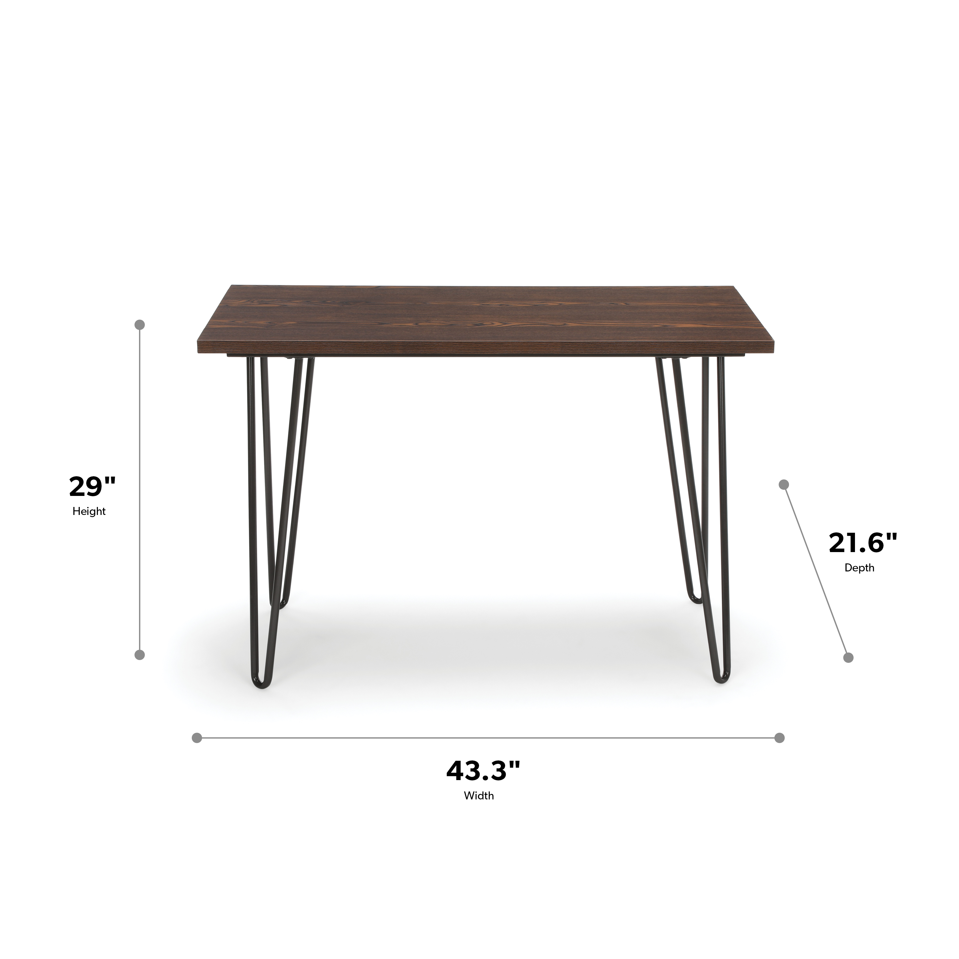 Clean lines and a simplistic design make this writing desk the perfect accent for home or the office The 1″ thick desktop provides a sturdy space for a variety of tasks The industrial style hairpin legs add a retro feel to any space The writing desk dimensions are 43.31″ L x 21.65″ W x 29″ H The retro desk will hold up to 150 lb of weight
