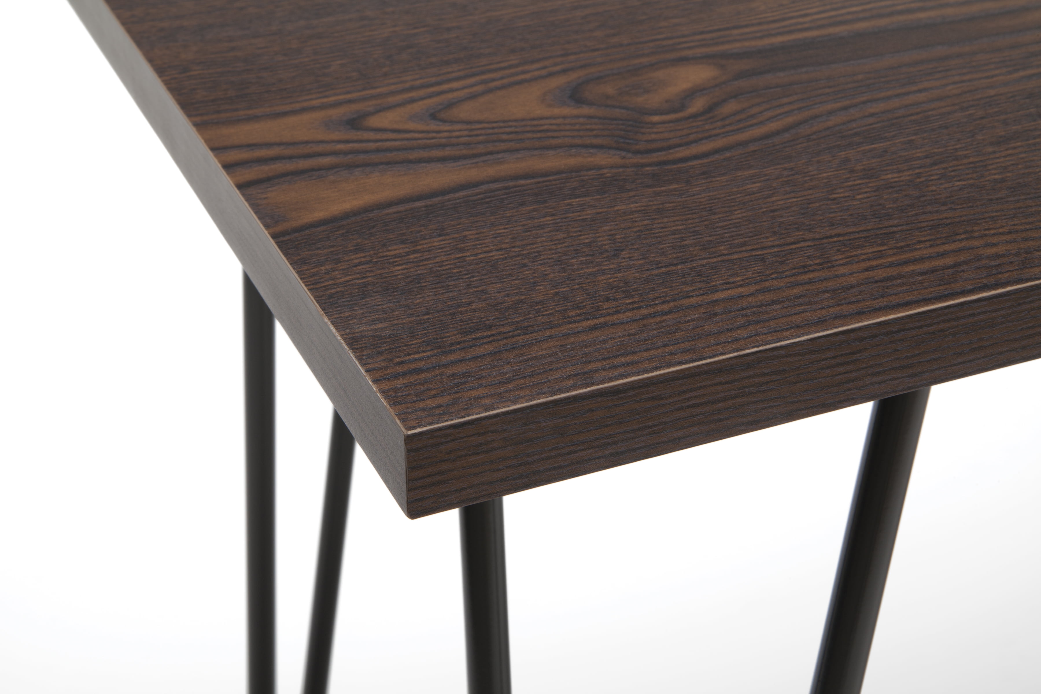 Clean lines and simplistic design are at the core of the Essentials Collection 44″ Home Retro Desk, Writing Desk with Hairpin Legs, in Black/Wenge. The modern minimalistic design makes this desk the perfect accent piece for home or the office. Featuring a 1″ thick, sturdy desktop, the 43.31″ long by 21.65″ deep desktop provides ample workspace whether writing letters or working on your laptop. The computer desk is beautifully supported by industrial-style hairpin legs which add a retro feel. The Home Retro desk will hold up to 150 lb of weight and is backed by the OFM.