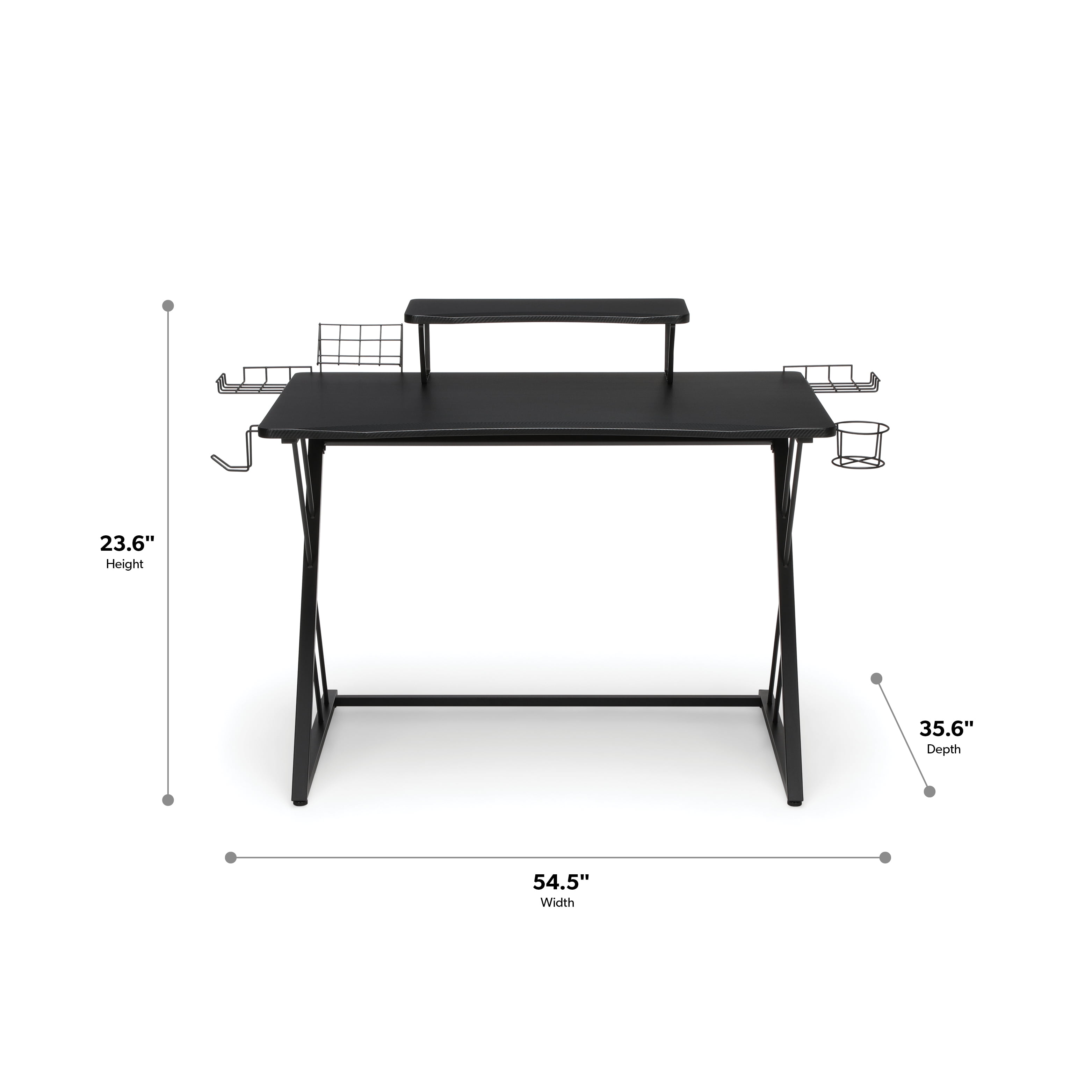 OFM Essentials Collection 55″ Gaming Computer Desk, 35″ Monitor Shelf, Z-Base, in Black/Black (ESS-1101-BLK-BLK)