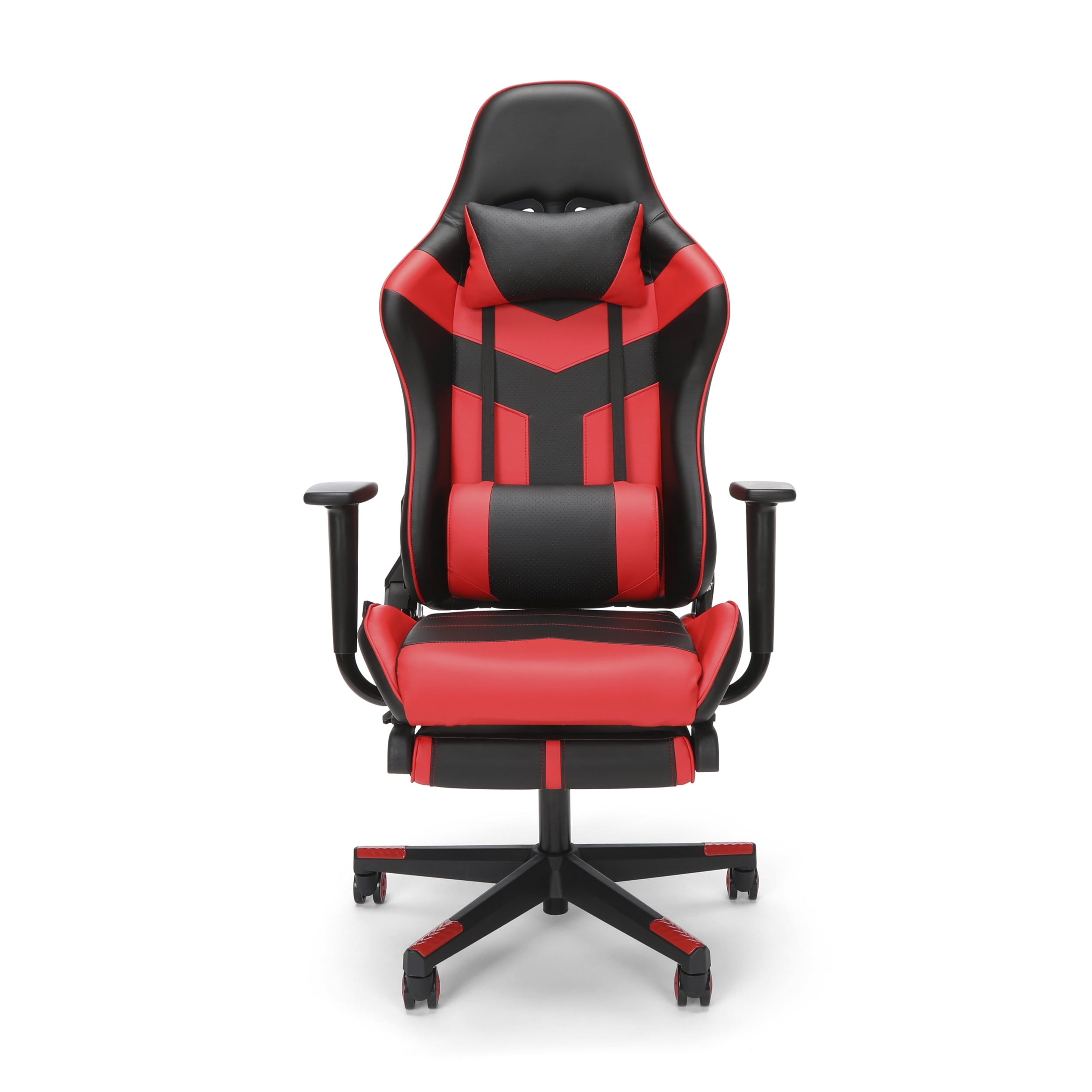 Race car style high back video game chair puts you in control Extendable footrest lets you kick back and relax while crushing your opponent Reclining an impressive 160-degrees, this video game chair features infinite angle lock so you can recline at any point from 90 to 160 You have total control of your comfort with the adjustable lumbar and headrest support pillows This gaming chair features padded, fixed arms that give you ergonomic support so you can game longer Gaming chair features 15-degree rocking controlled by a paddle beneath the chair The adjustable tilt tension allows you to control the rate of recline, so you don’t go from 90 to 160 too fast Ergonomically shaped steel tube framing holds you in position for quality support and comfort for long gaming hours The chair features a 360-degree swivel base and pneumatic height adjustment This office chair is 29.9″ D x 27.6″ W x 49.2″ – 52.4″ H and has a 275 lb weight capacity Kick back and relax, this gaming chair is covered by the OFM Essentials 5-Year Limited Warranty
