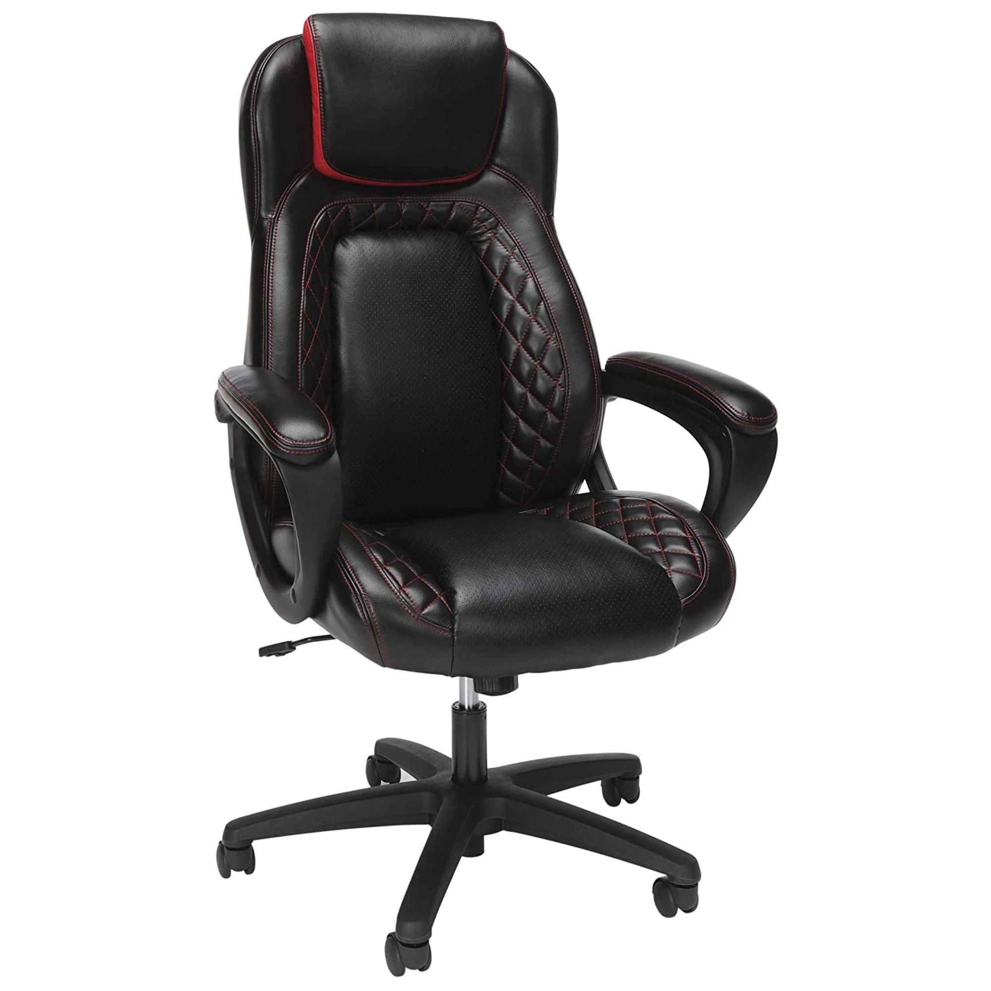 Whether you’re leading a team at work or gaming at home, you will feel like a boss in this gamer chair. The Essentials Collection High Back PU Leather Gaming Chair with Extendable Footrest features an impressive 160-degree back tilt, making it easy for you to find your comfort zone anywhere from 90 to 160-degrees with infinite angle lock. The extendable footrest lets you kick back and relax for a unique seating experience. You’ve never been this comfortable while playing online games, the chair includes adjustable lumbar and headrest support pillows that give you total freedom to place where they work best for you and is covered in PU leather. This video game chair features padded, fixed arms for ergonomic upper body support during long hours of gameplay. The chair also rocks 15-degree. Ergonomics are at the core of this gaming chair’s design with a steel tube construction that provides core support, adjustable tilt tension to control recline rate, and a 360-degree swivel base with height adjustment. The office chair is 29.9″ D x 27.6″ W x 49.2″ – 52.4″ H and has a 275 lb weight capacity. Win the day with this gaming chair that is covered by the OFM Essentials 5-Year Limited Warranty.