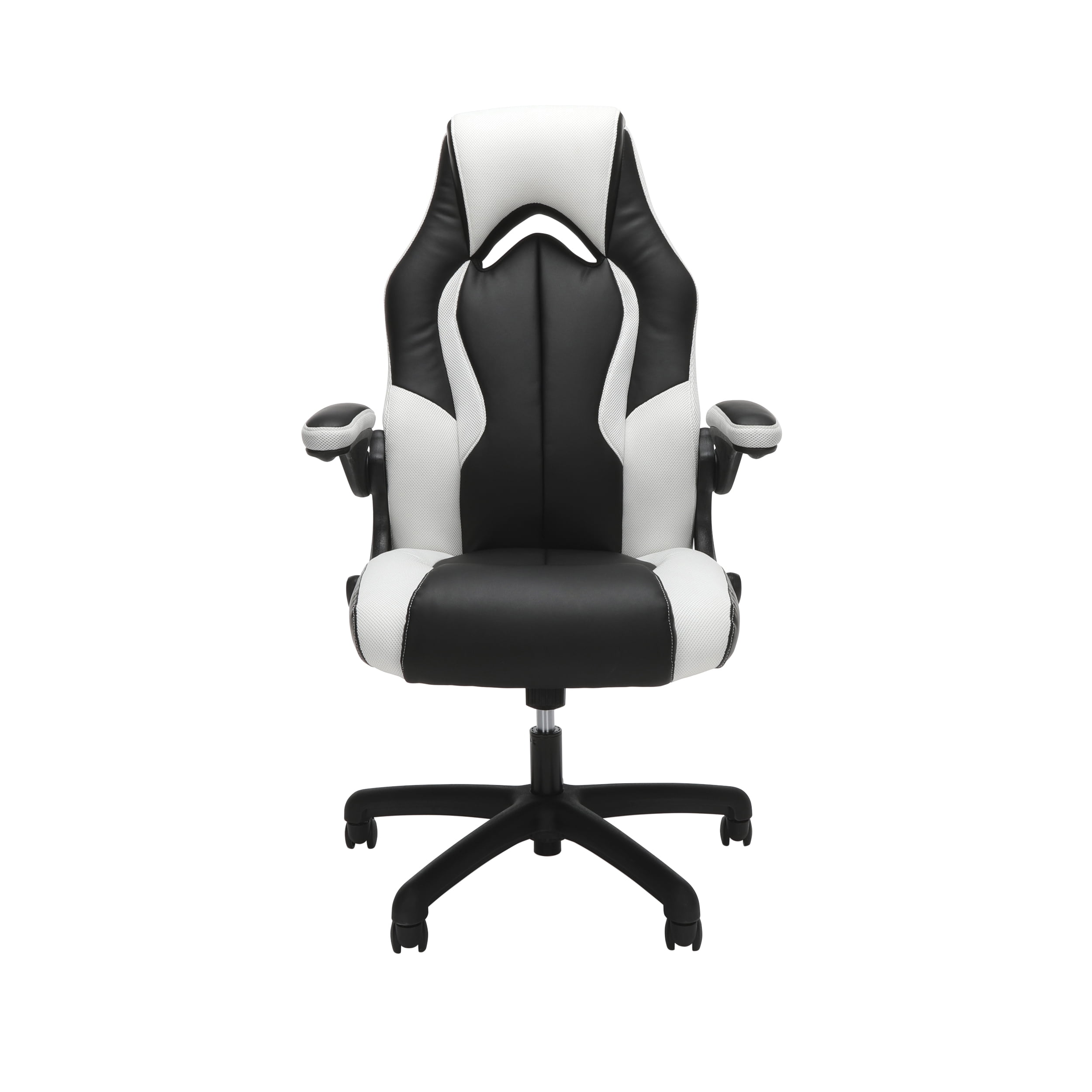 OFM Essentials Collection High-Back Racing Style Bonded Leather Gaming Chair, in White (ESS-3086-WHT)
