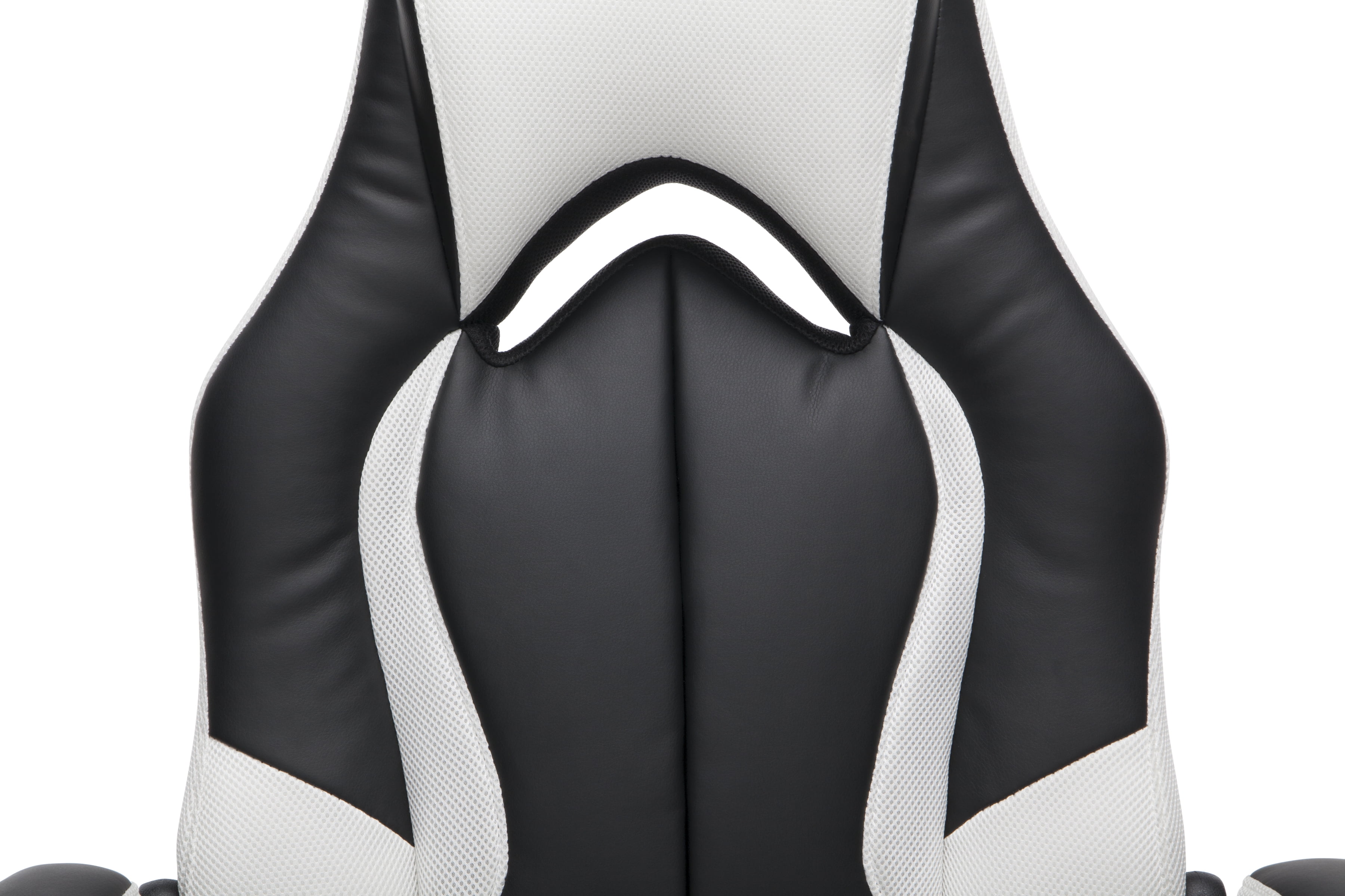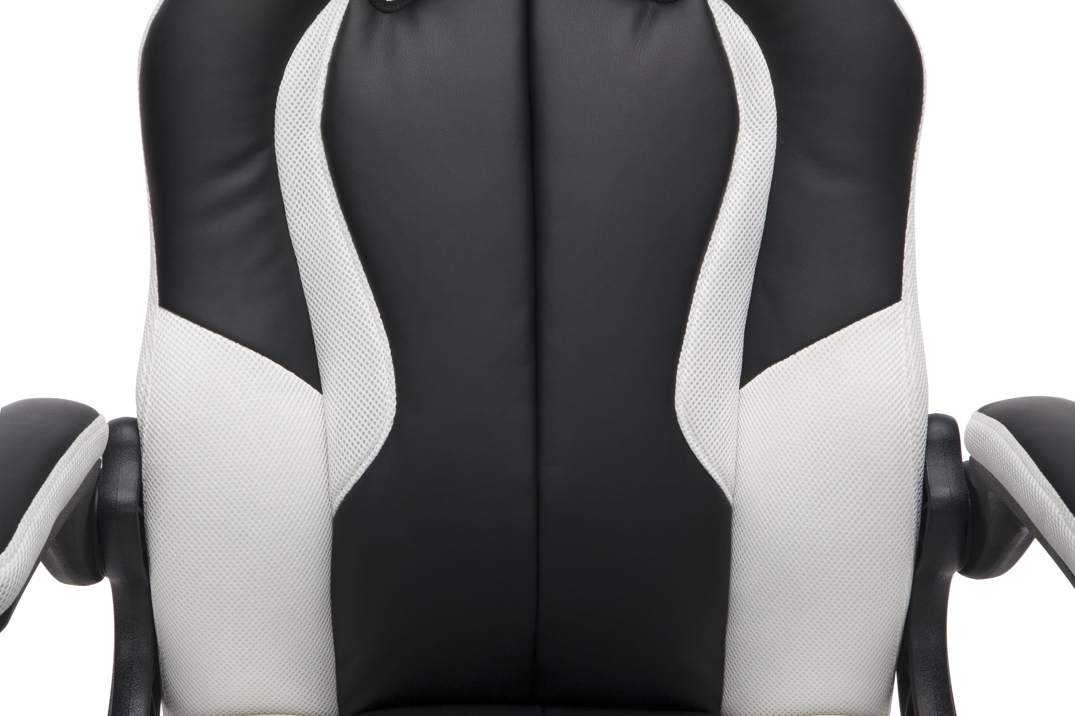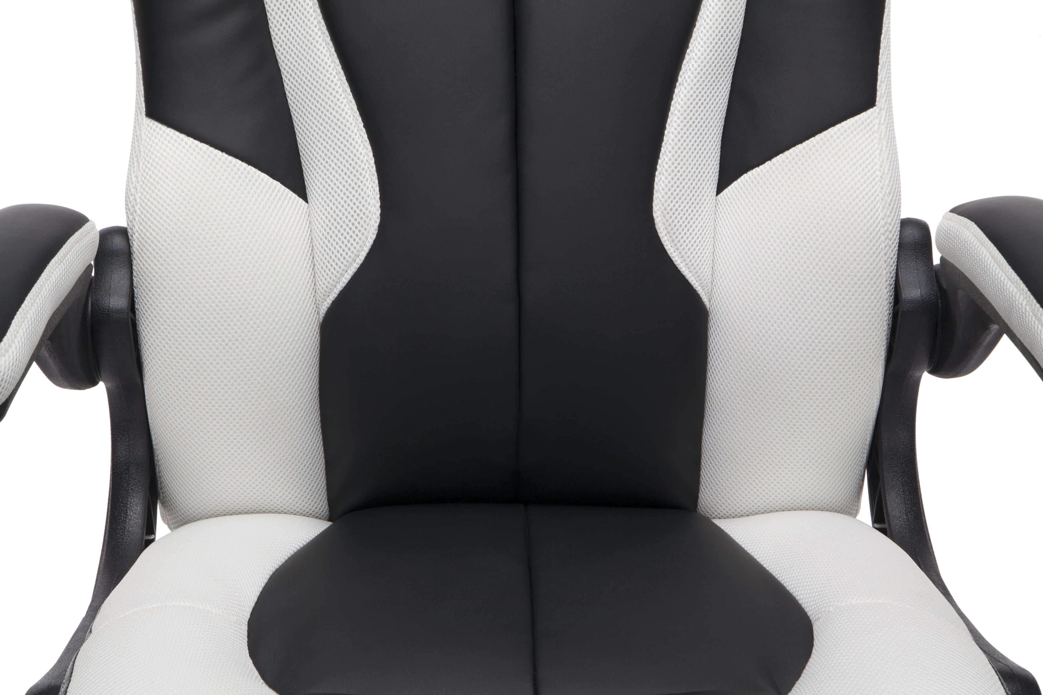 COMPUTER GAMING CHAIR: A race car style chair that provides luxury and comfort whether used during intense gaming sessions or long workdays ERGONOMIC SWIVEL CHAIR: With contoured segmented padding, integrated padded headrest, and padded arms, this video game chair provides quality support and comfort for hours of play ADJUSTABLE RACING CHAIR: Features height adjustment, center-tilt control, flip-up arms and 360 degrees of swivel PREMIUM LEATHER CHAIR: Upholstered in SofThread Leather and contrasting colored mesh for an aggressive style and cool feel DURABLE OFFICE FURNITURE: This heavy duty chair has a 275 lb weight capacity for long-lasting use WARRANTY & SUPPORT: Relax knowing this racing desk chair is backed by the OFM Essentials 5-Year Limited Warranty