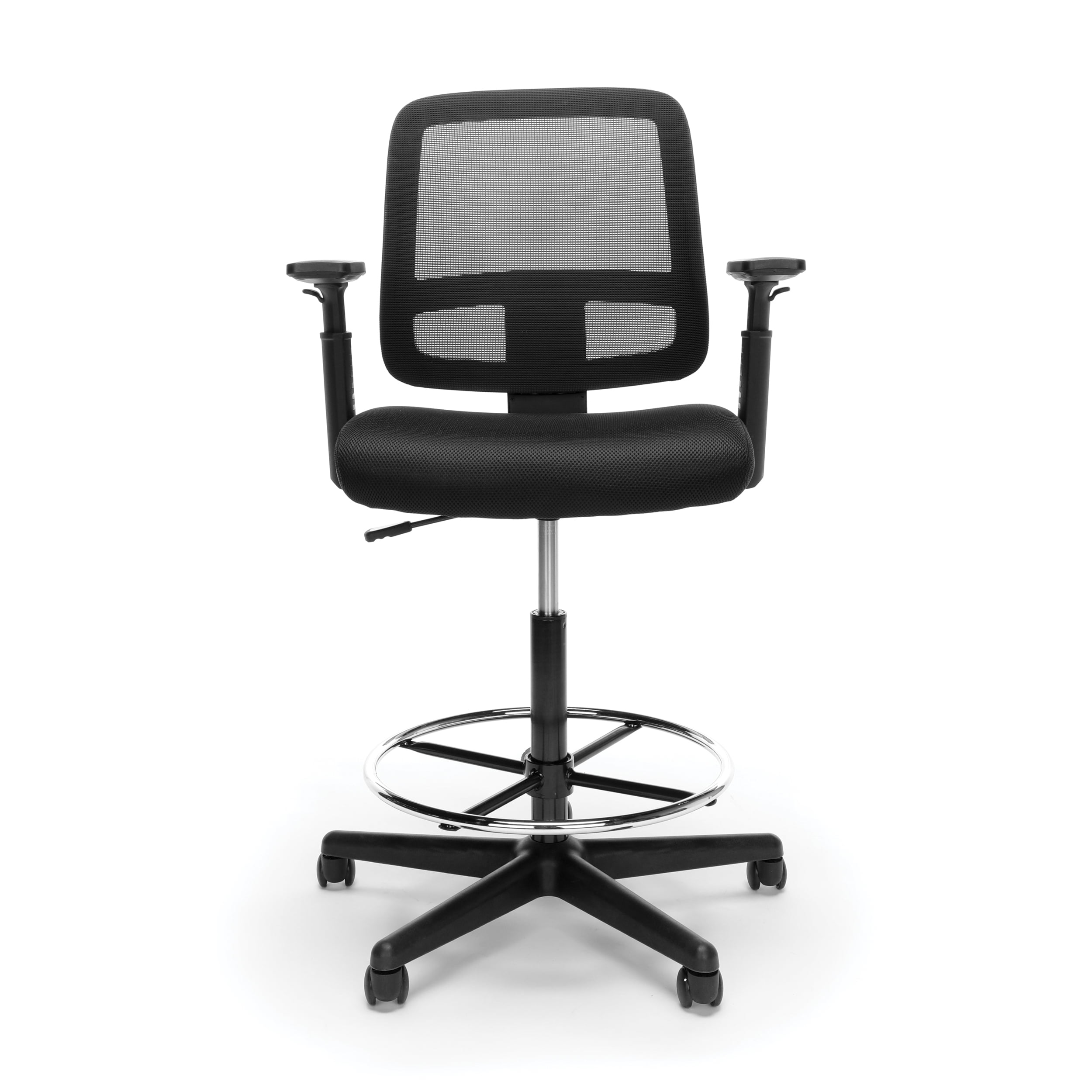 OFM Essentials Collection Mesh Back Stool with Adjustable Arms, in Black (E3036-BLK)