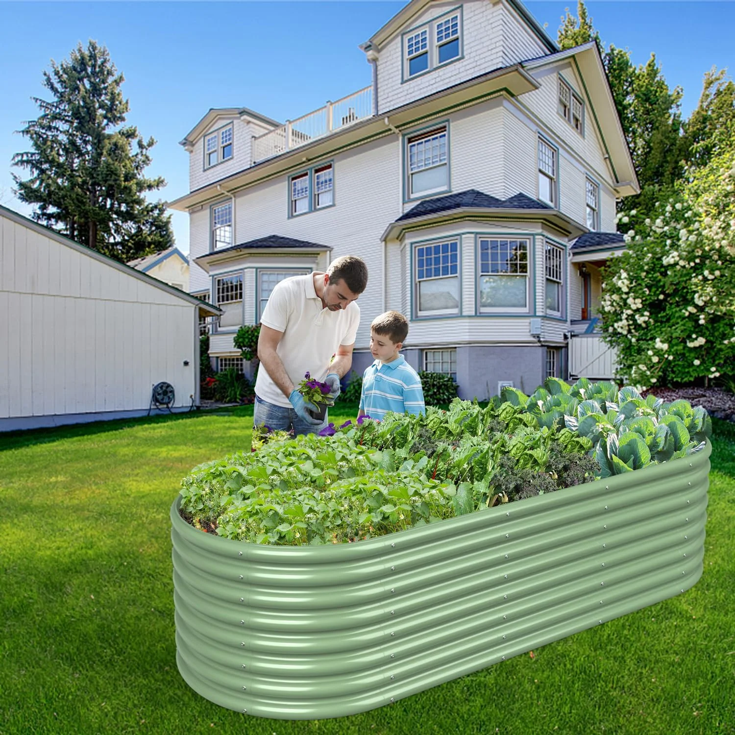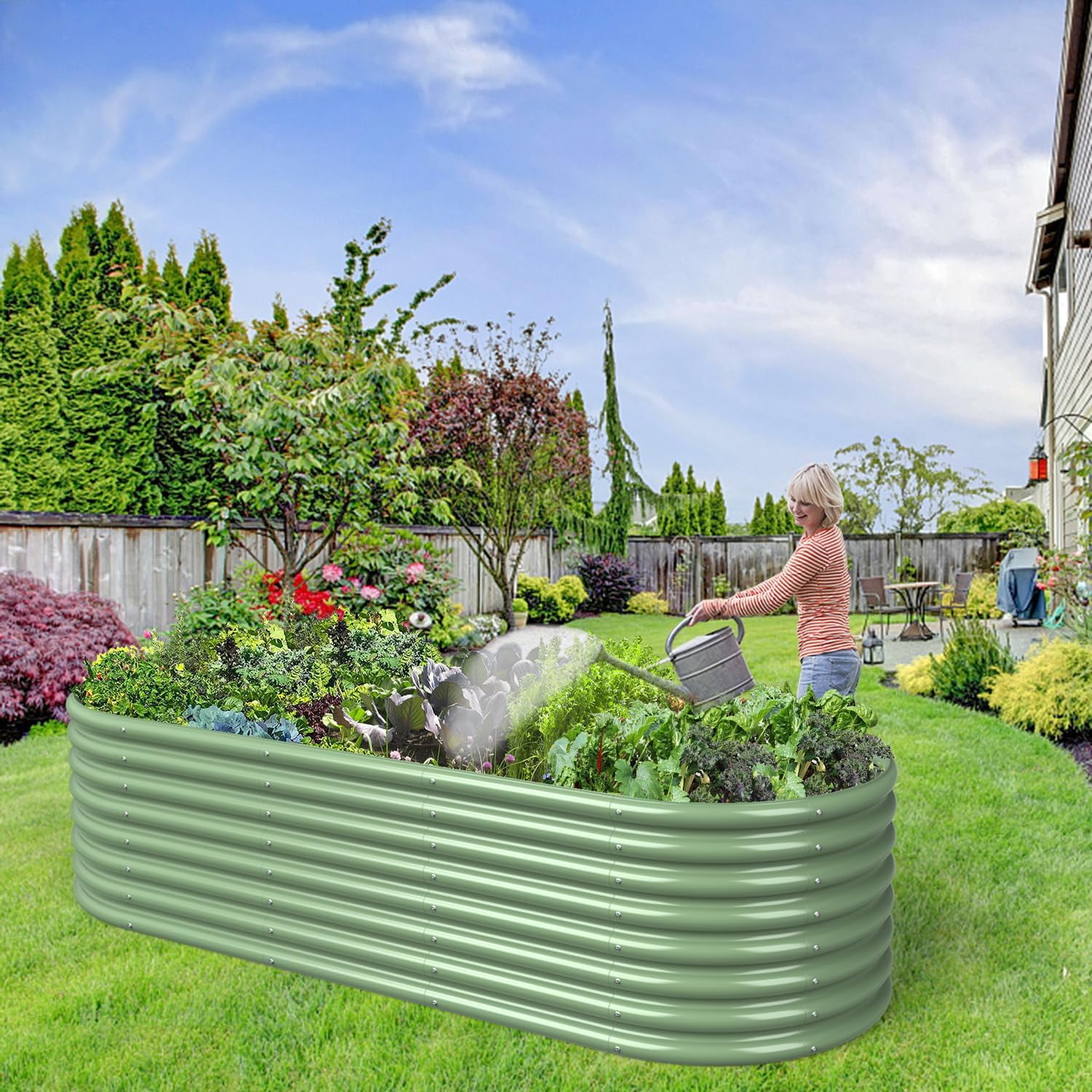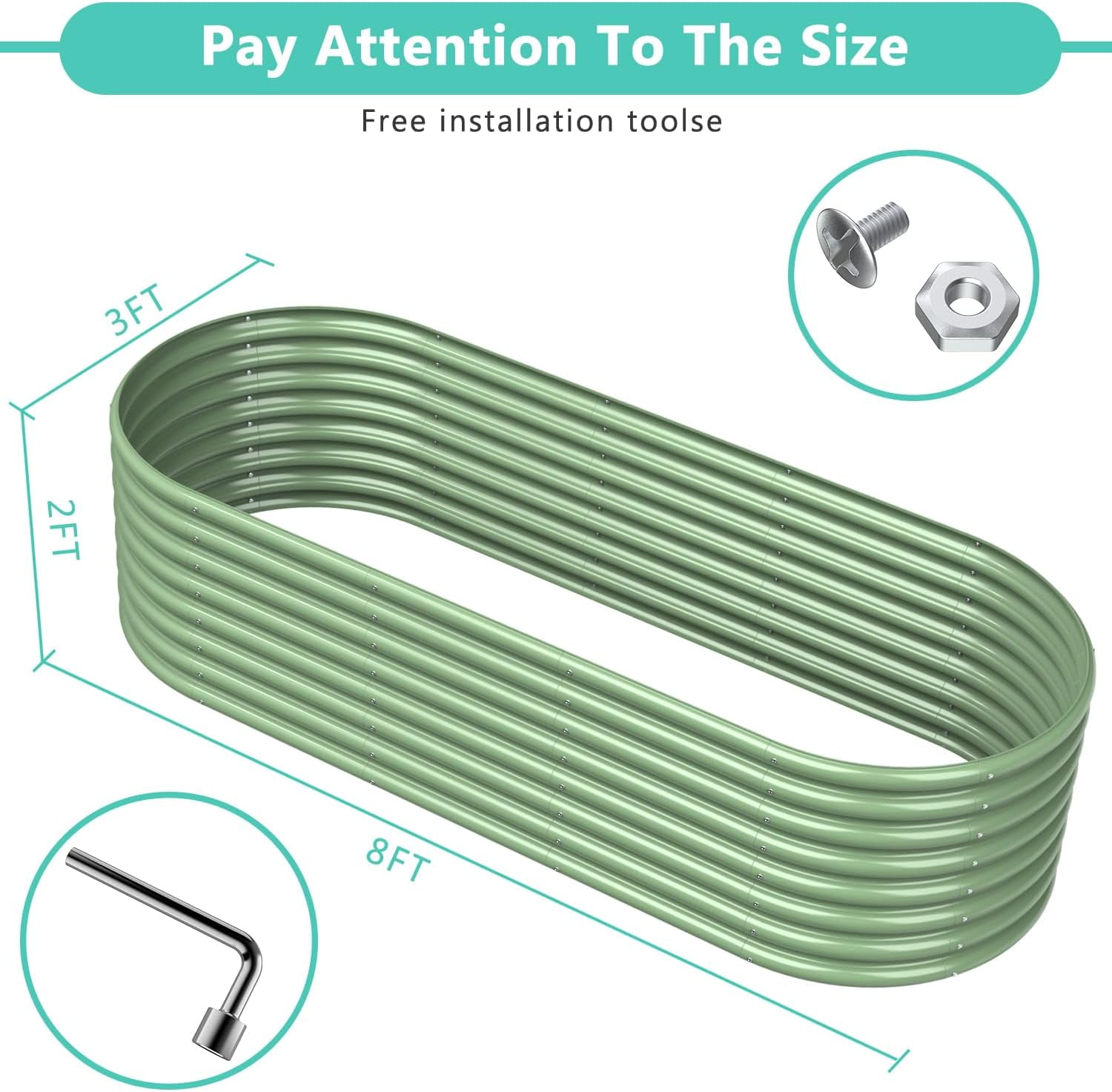 More spacious planting space: the oval raised garden bed measure is 8FT(L)×3FT(W)×2FT(H) and provide ample space. Durable planter box: the garden bed allow to expose to sun, rain, snow and so on for a long time. Perfect planting choice: the garden box is bottomless designed, making the plants can extend freely. Ideal choice for garden: 2ft high raised garden beds make you not need to bend and give you a comfortable gardening. Easy to assemble: the raised bed has simple structure, we will provide clear instructions to shorten your assembly time.