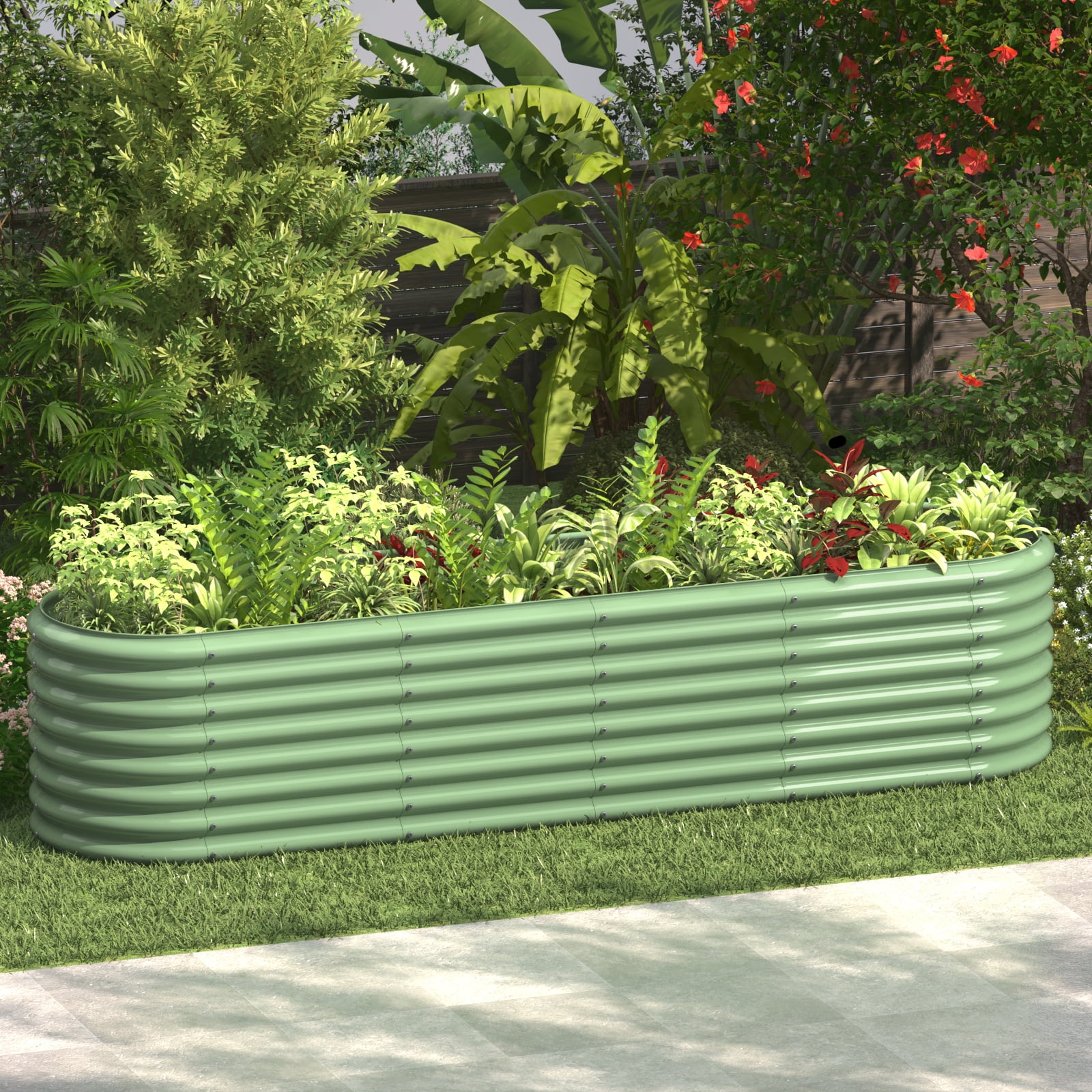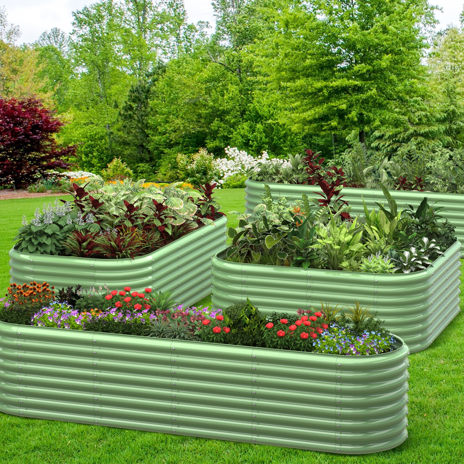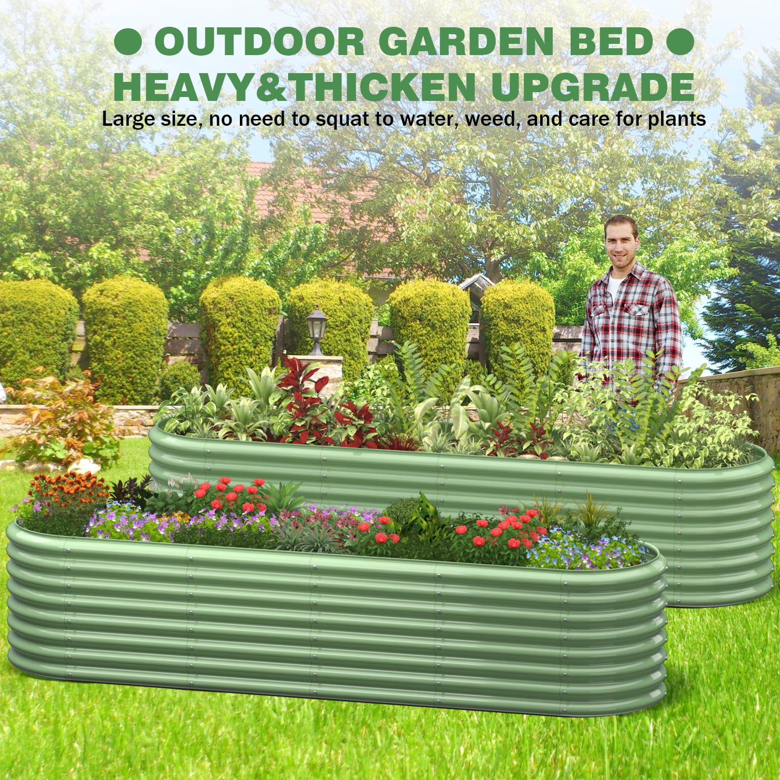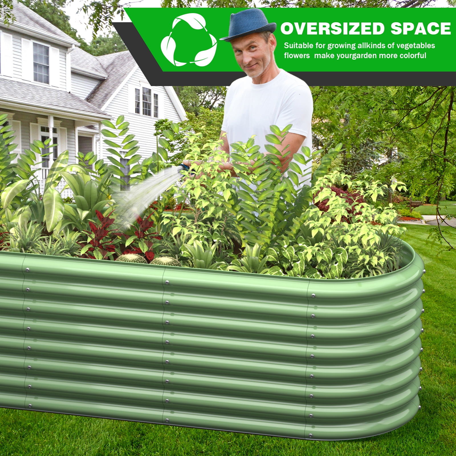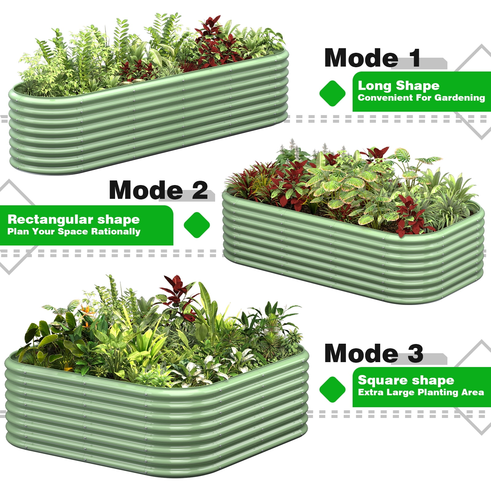 OGKBIR 9x2x2FT Outdoor Galvanized Metal Raised Garden Bed for Vegetables, 9 in 1 Adjustable Garden Raised Planter Box, Backyard Patio Planter Raised Beds for Flowers, Herbs, Fruits-Light Green