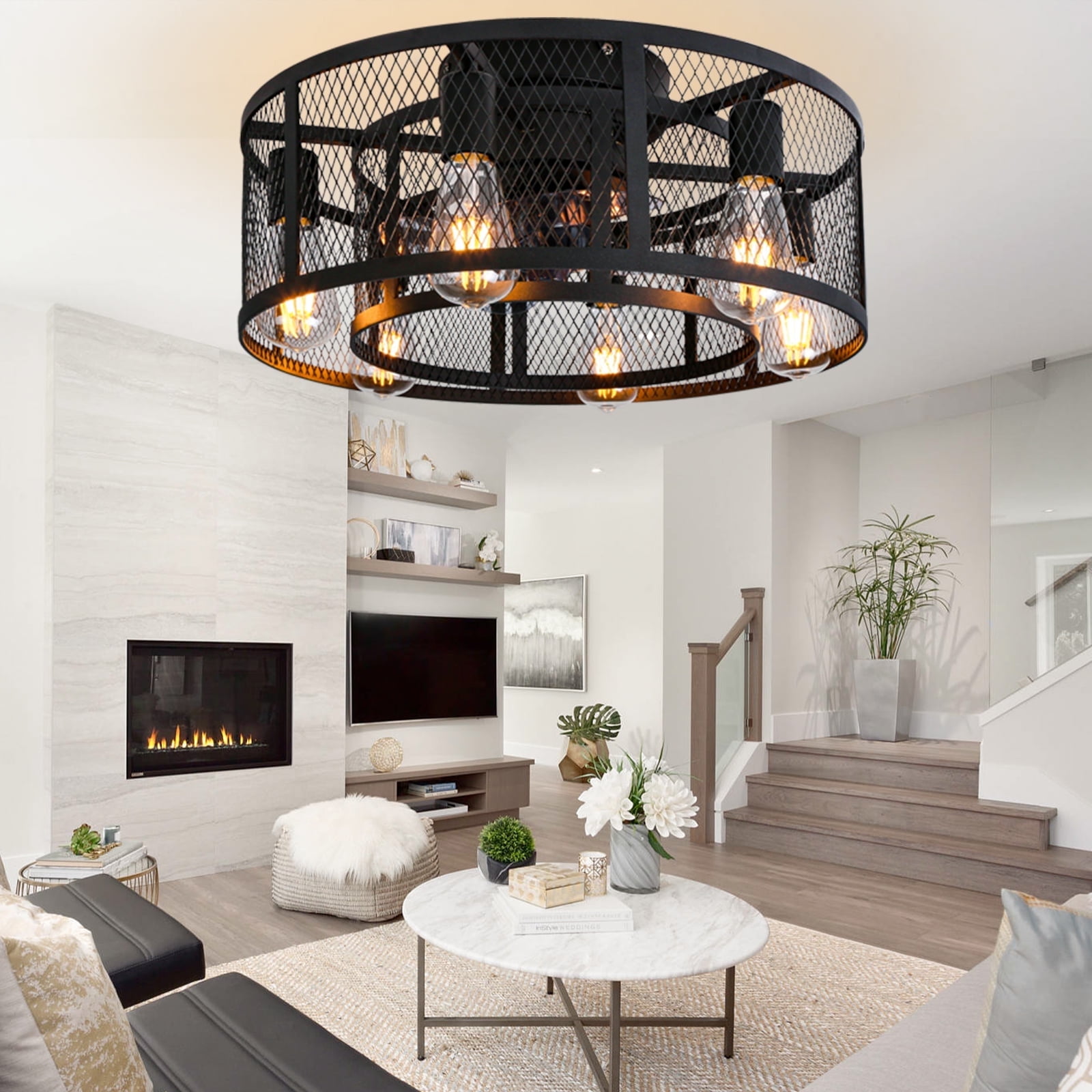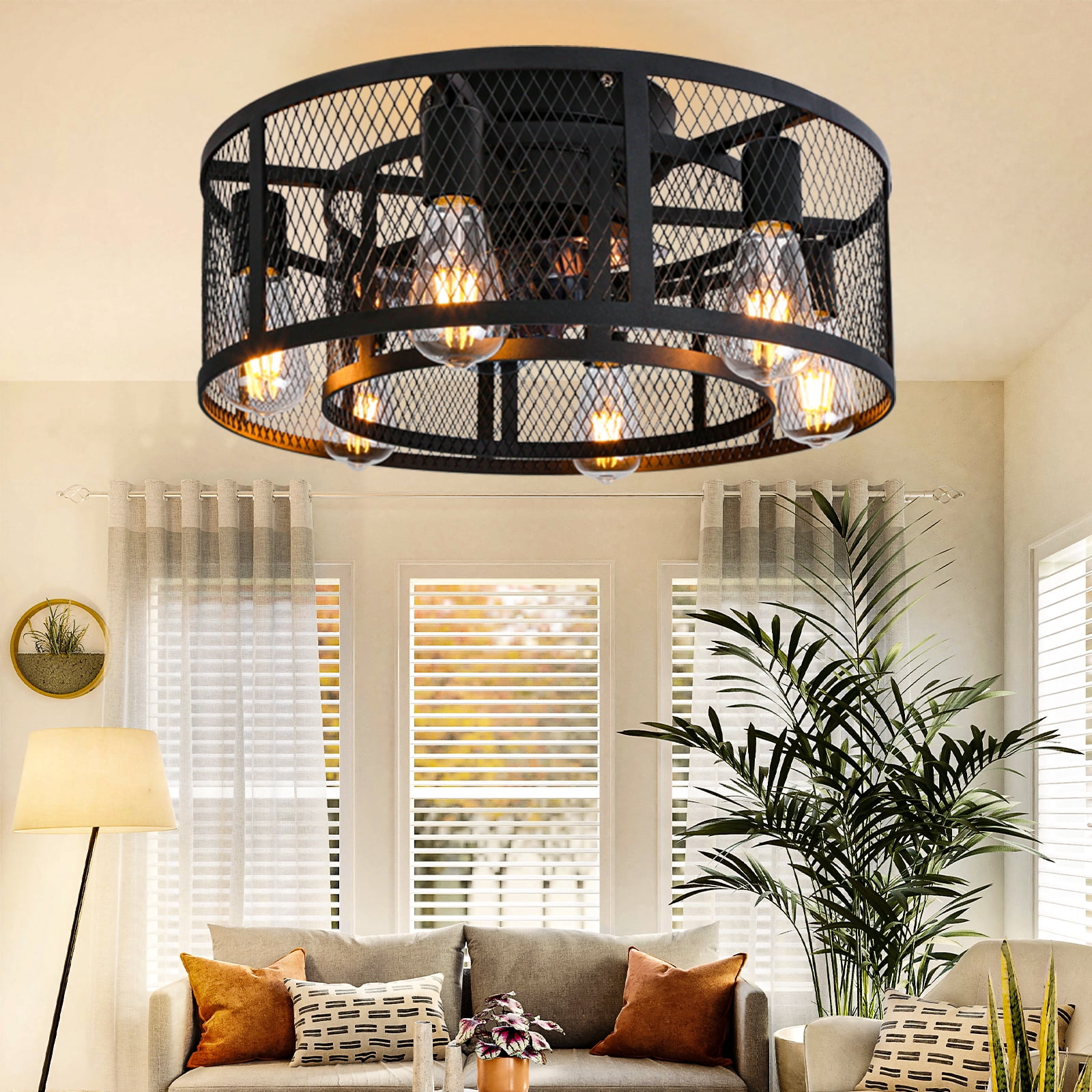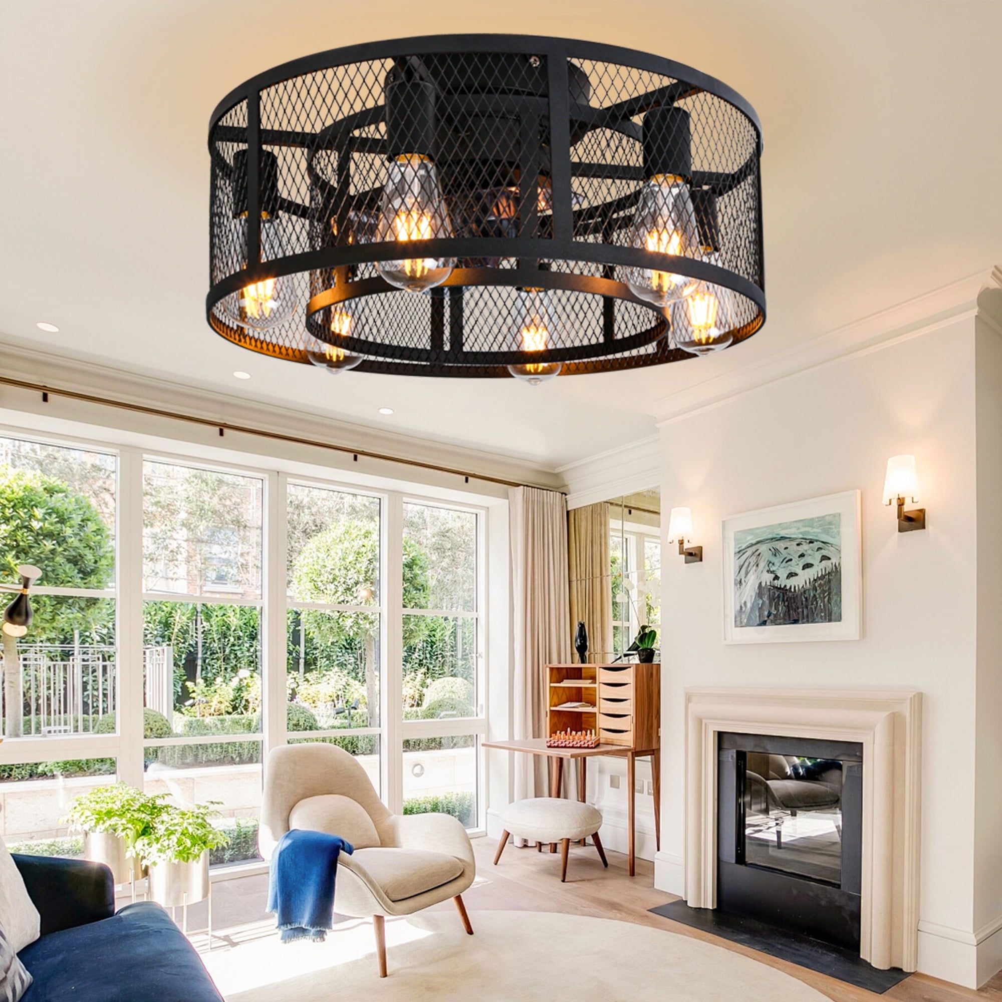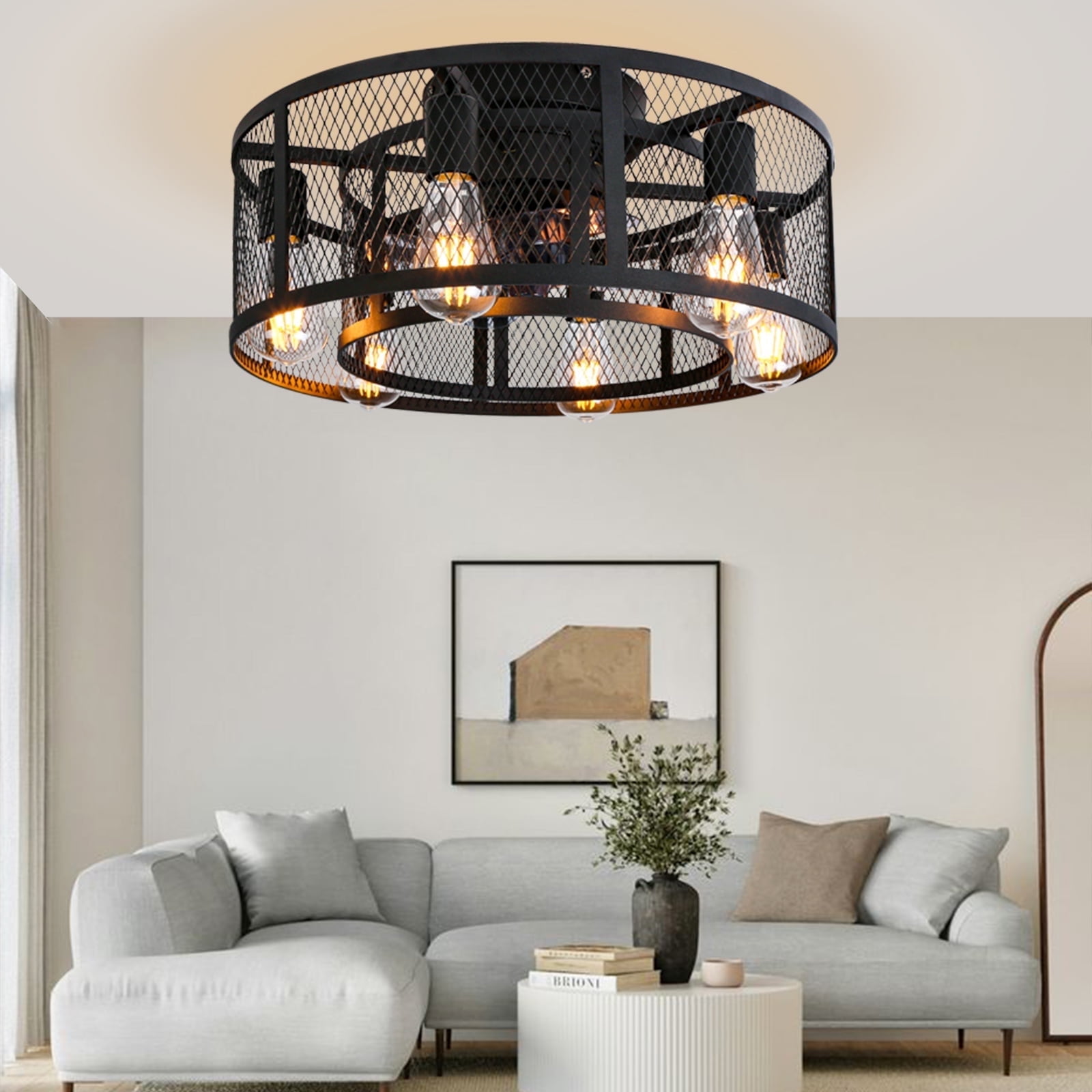 – 21inch industrial small double cage ceiling fan with remote and 8 Semi-enclosed black blades, 6 E26 light sockets compatible with any E26 Edison bulb(bulbs not included), choose warm or cool light bulbs as your need. With a Max load of 60 watts, a 10w LED light bulb is recommended. – Ohniyou Flush mount bladeless caged ceiling fan comes with a remote. You can easily operate the fan speed, turn on/off the light, set 1/2/4 hours timing, and reverse the wind direction by using the remote. Create an excellent life and sleep environment to accompany you in all seasons. – The farmhouse black flush mount DC ceiling fan with light offers a 6-speed setting and is quiet when running, noise ≦ 40dB (ideal sleeping environment). Semi-open design, easy to replace the light bulb and clean the fan blade, helps the motor to dissipate heat quickly, making the fandelier safer and longer lasting, and easy to install. – This Ohniyou 21 inch small low profile caged ceiling fan with lighting fixture is good for small or medium-sized rooms (15-30㎡), such as a kitchen, bedroom, home office, dining room, living room, or any small room. You can choose where it is installed according to your actual needs. – Semi-enclosed farmhouse caged ceiling fans come with manual, remote control, and installation instructions. Flush mount enclosed ceiling fan with light fixtures is safer and saves your space suitable for low ceilings, and small to medium size room.