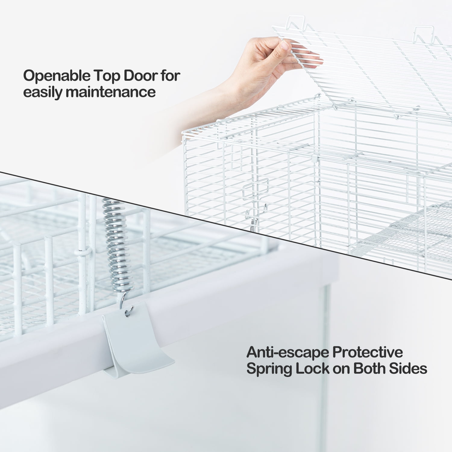The overall dimensions are 20″L x 12″W x 20″H, with a 10 in deep glass base, which allows the animal to dig and prevents the escape of litter. The cage comes with quality accessories including two platforms, two ramps ladders, two sturdy fastening clips and a waterproof PVC tray. Unlike wooden and acrylic, glass hamster cage is no chew issues and is waterproof, making you enjoy more fun raising pets. If you have chewing issues, or worry Acrylic Hamster Cage will fade and age or are afraid that your hamster will chew through their plastic or Wooden Hamster Cage and escape, the OIIBO glass hamster cage is the safest option. OIIBO Glass Hamster Cage has a nice appearance, is completely transparent looking, and makes you can enjoy a 360-degree full clear view to observe the activity of your pet. The heightened wire topper, allows the fresh air to access and enough air circulation. (Tight 0.4-inch wire spacing of topper cage, no risk of even young hamsters escaping.) Comes with a transparent waterproof PVC tray at the bottom is convenient to take out for easy cleaning. Cage is water washable, all soiled you can wipe it down with water won’t leave any funky smell, offers a healthy living environment for your pet. Easy to assemble in several minutes by the steps in the instructions/videos supplied, and also can be easily disassembled for move.