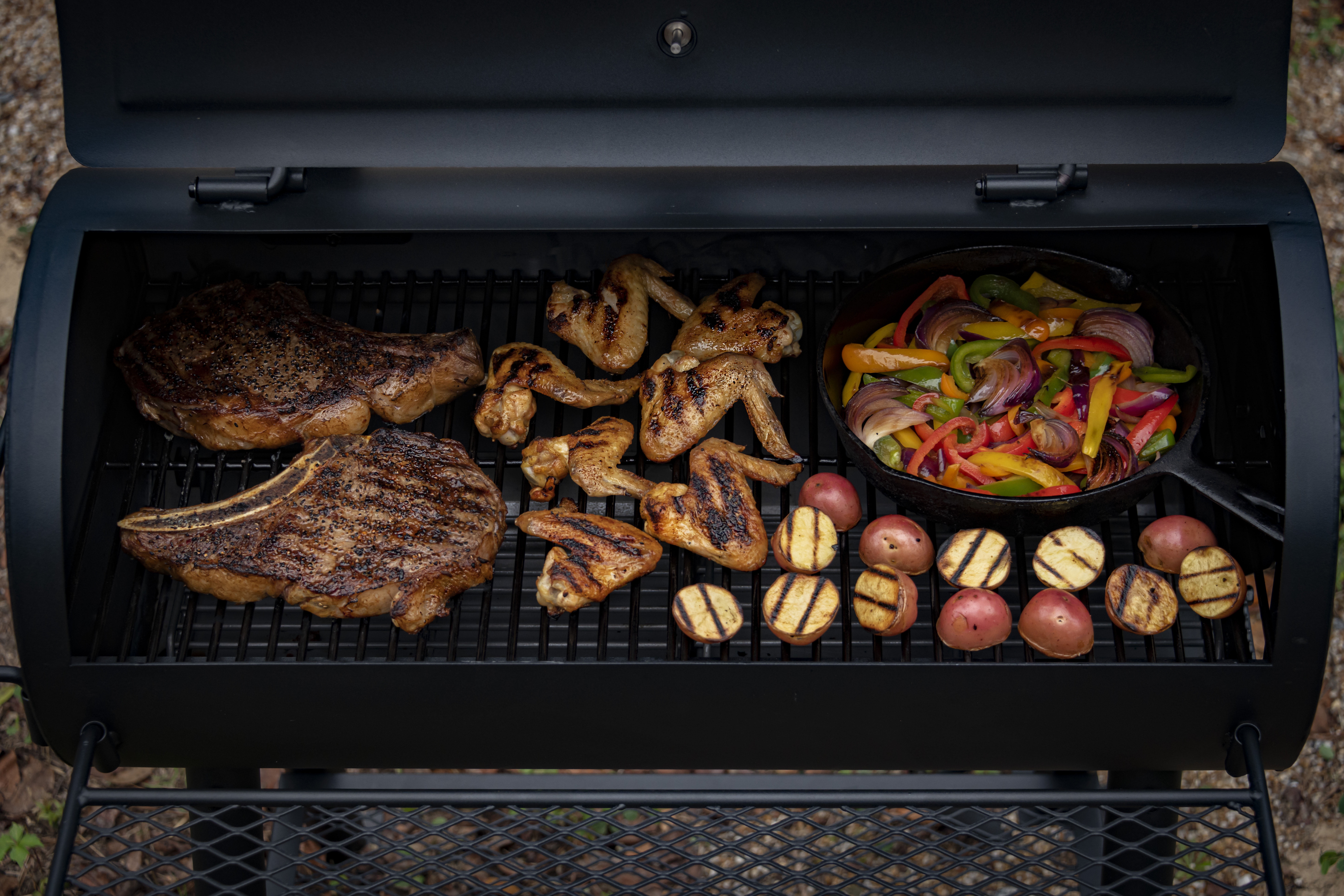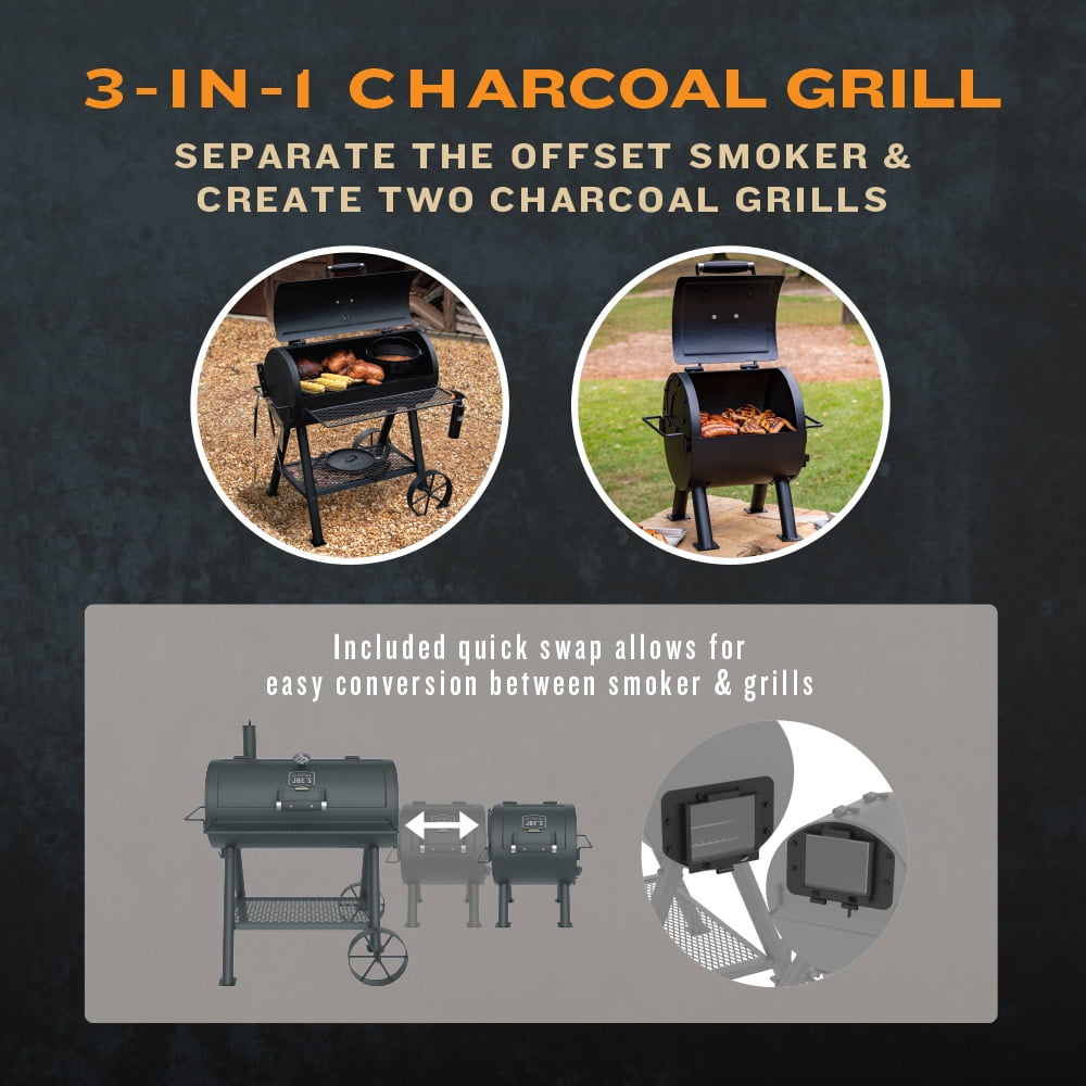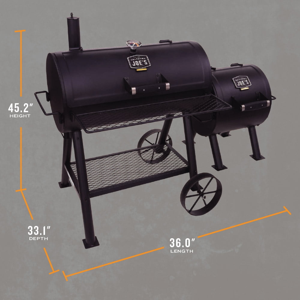 Oklahoma Joe’s Charcoal Combo Grill and Smoker, 3-in-1 Versatile Design 3-in-1 Design: Grilling, smoking, and roasting capabilities Infrared Grill Grate: 180 sq in for flare-up-free grilling Cooking Basket: Fits up to 21 lb turkey for smoking and roasting TRU-Infrared™ Technology: Even cooking with no flare-ups Rotary Ignition: Quick and easy lighting
