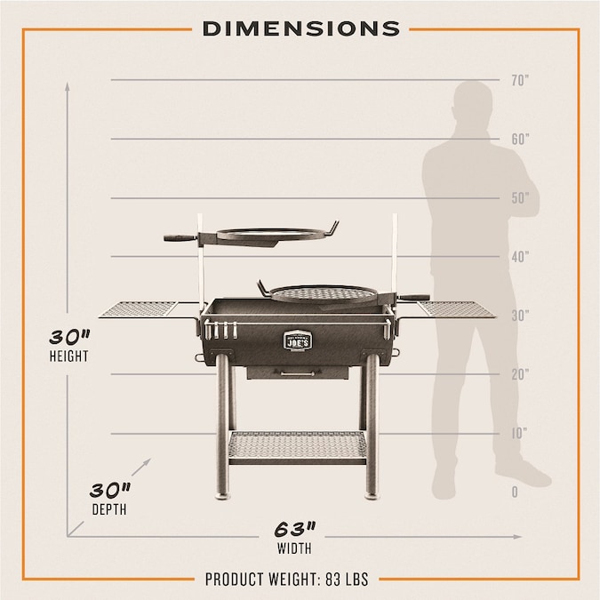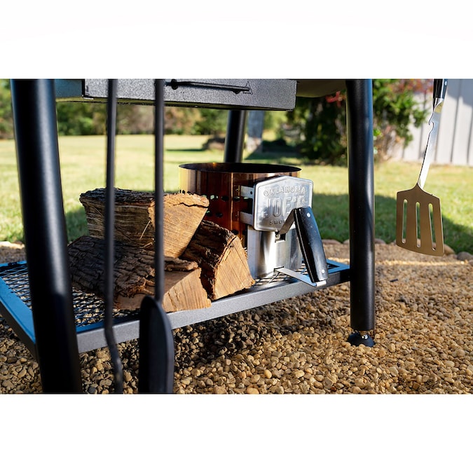 - Bottom shelf to keep extra wood or cooking utensils close-at-hand